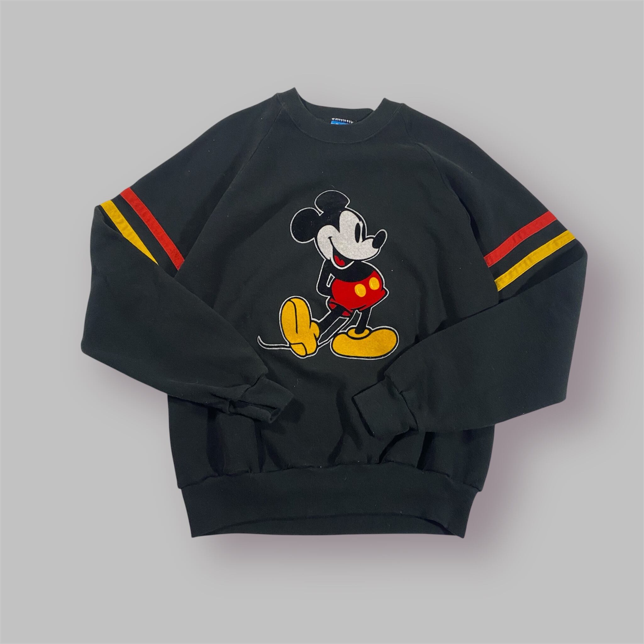 フロントにクラシックなミッキーマウスの刺繍が施されたヴィンテージスウェット。両袖にはレトロな配色のストライプがデザインされており、存在感抜群の一枚です。80年代のディズニーキャラクターファッションタグ付き、MADE IN USAの希少なアイテム。カジュアルにもストリートにもマッチするデザインです。