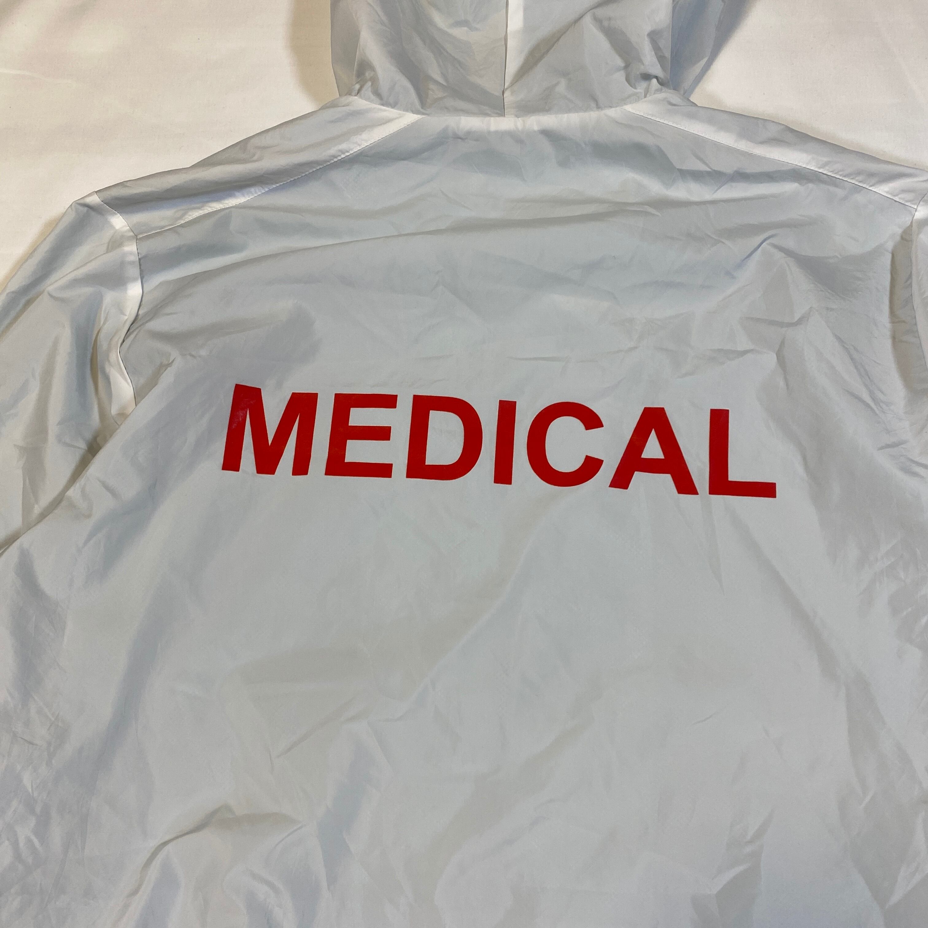 2016年のロンドンマラソンで使用されたメディカルスタッフ専用の公式ジャケット。Adidas ClimaProof素材を採用し、軽量で防風・防水性能を備えています。フロントには「MEDICAL LONDON MARATHON 2016」の刺繍が施され、バックには大きな「MEDICAL」の文字がプリントされています。希少なスタッフ限定アイテムで、イベントならではの特別な一着。
