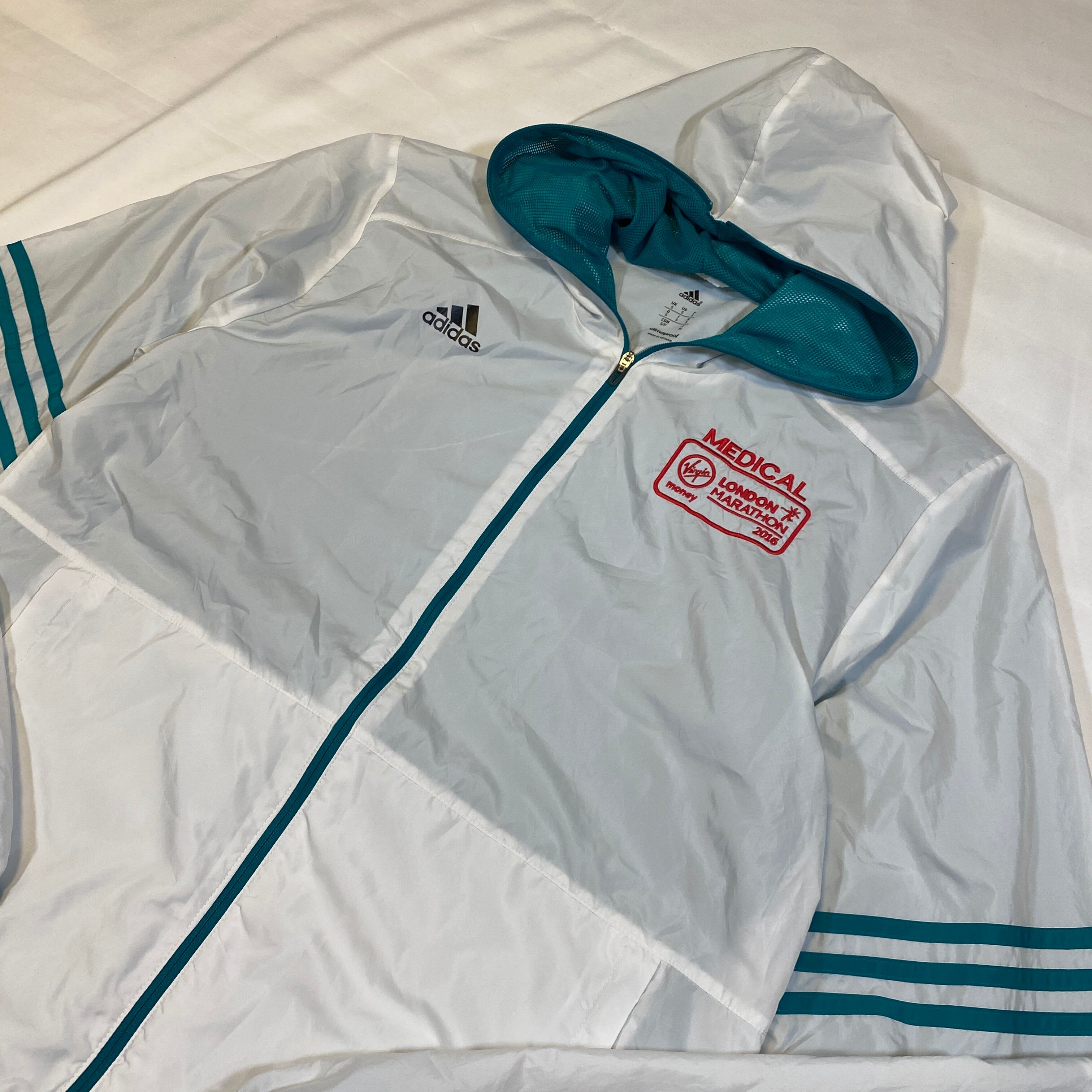 #LondonMarathon #Adidas #ClimaProof #2016Marathon #MedicalStaff #ExclusiveItem #MarathonCollectible #AthleticApparel #RunningGear #Windbreaker #LightweightJacket #EventWear #OutdoorApparel #WhiteAndGreen #AdidasOriginals #LimitedEdition #RetroSportswear #RareFind #CollectorsItem