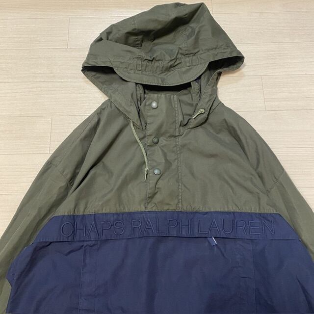 ラルフローレンのセカンドラインのChapsのアノラック。マットな光沢のナイロンに同系色でエンブロイダリーされたブランドネーム、2トーンのカラーリングが特徴。