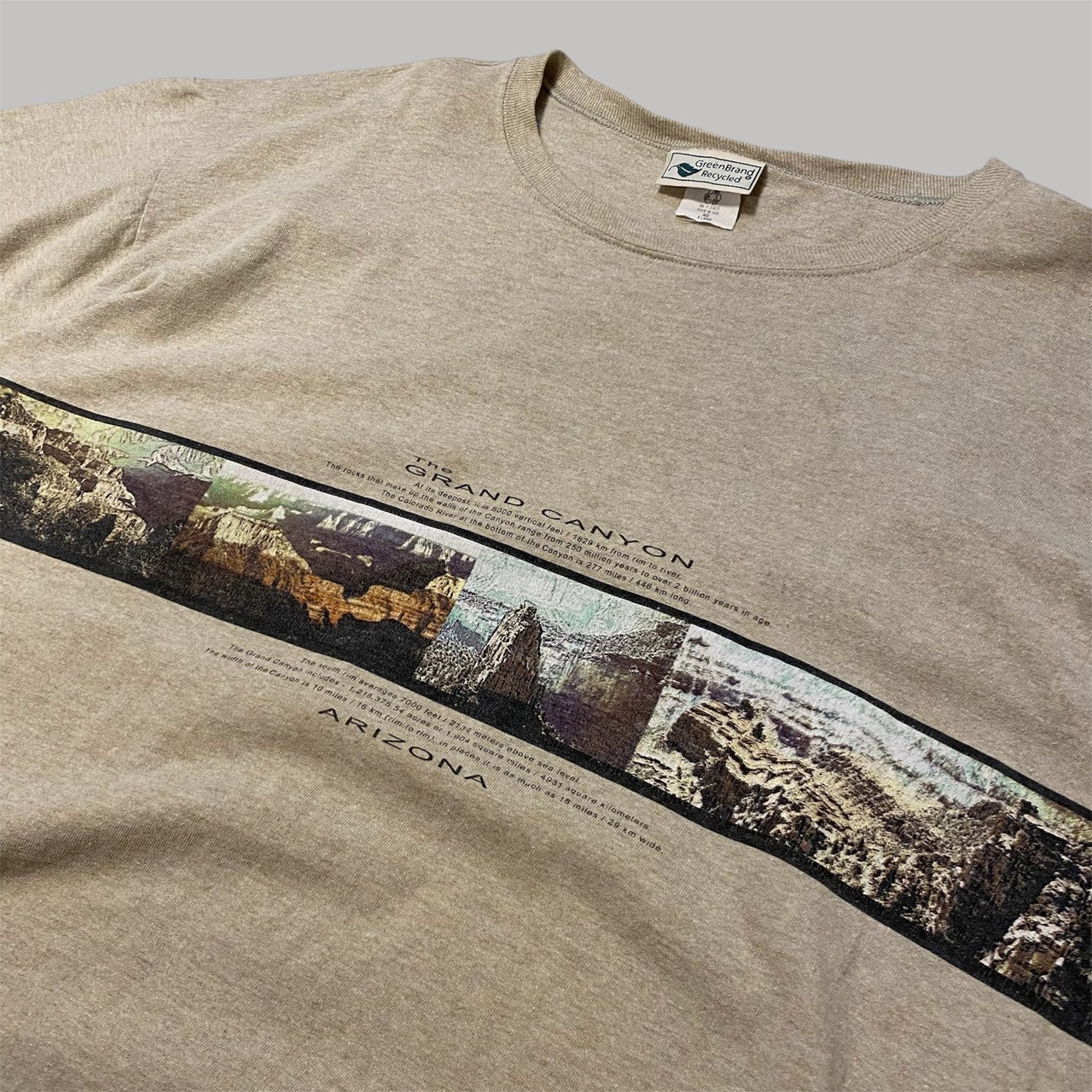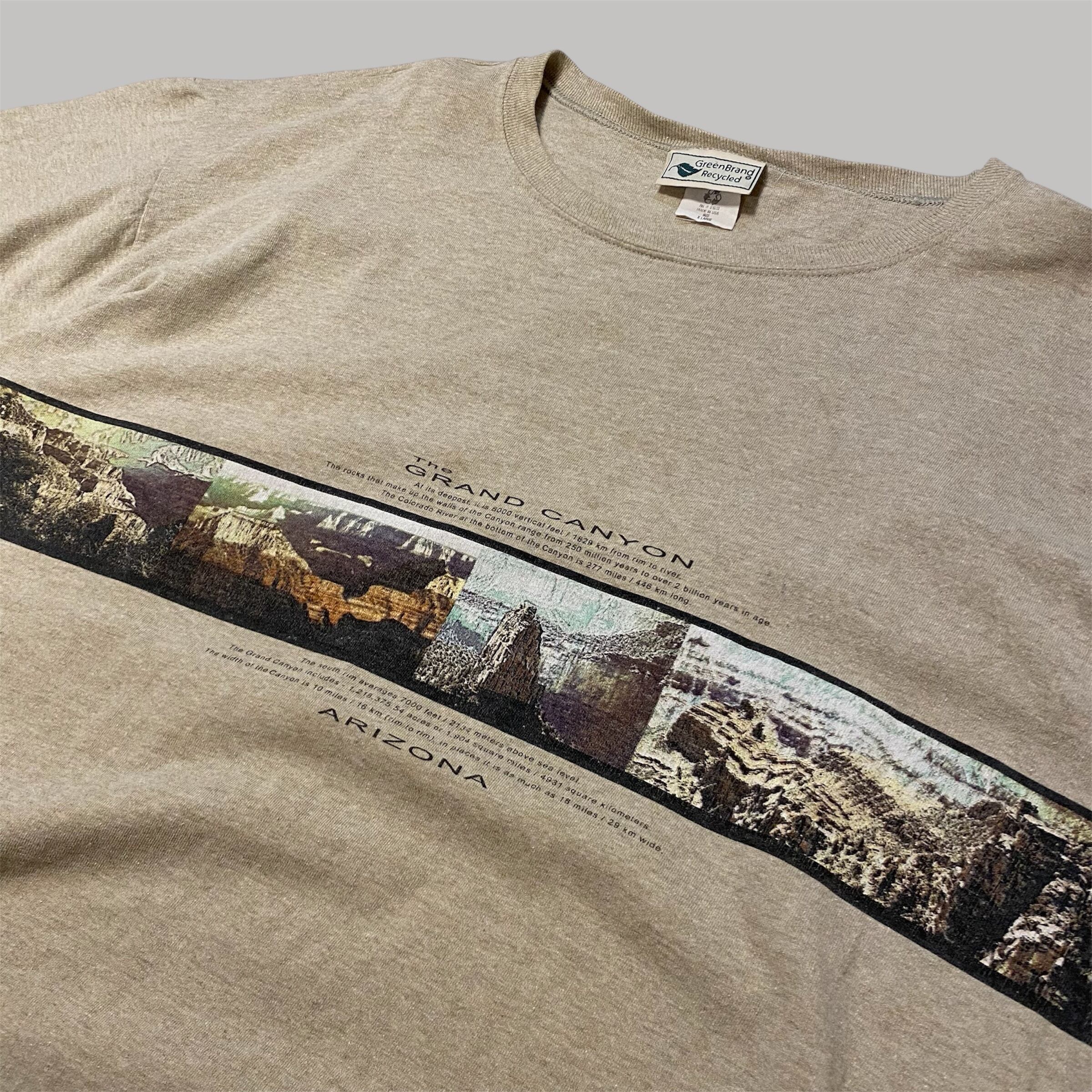 グランド・キャニオンはアメリカ・アリゾナ州にある巨大な渓谷がプリントされたTシャツ。コロラド川によって数百万年かけて形成された壮大な地層と景観を前後にプリントされたデザインです。