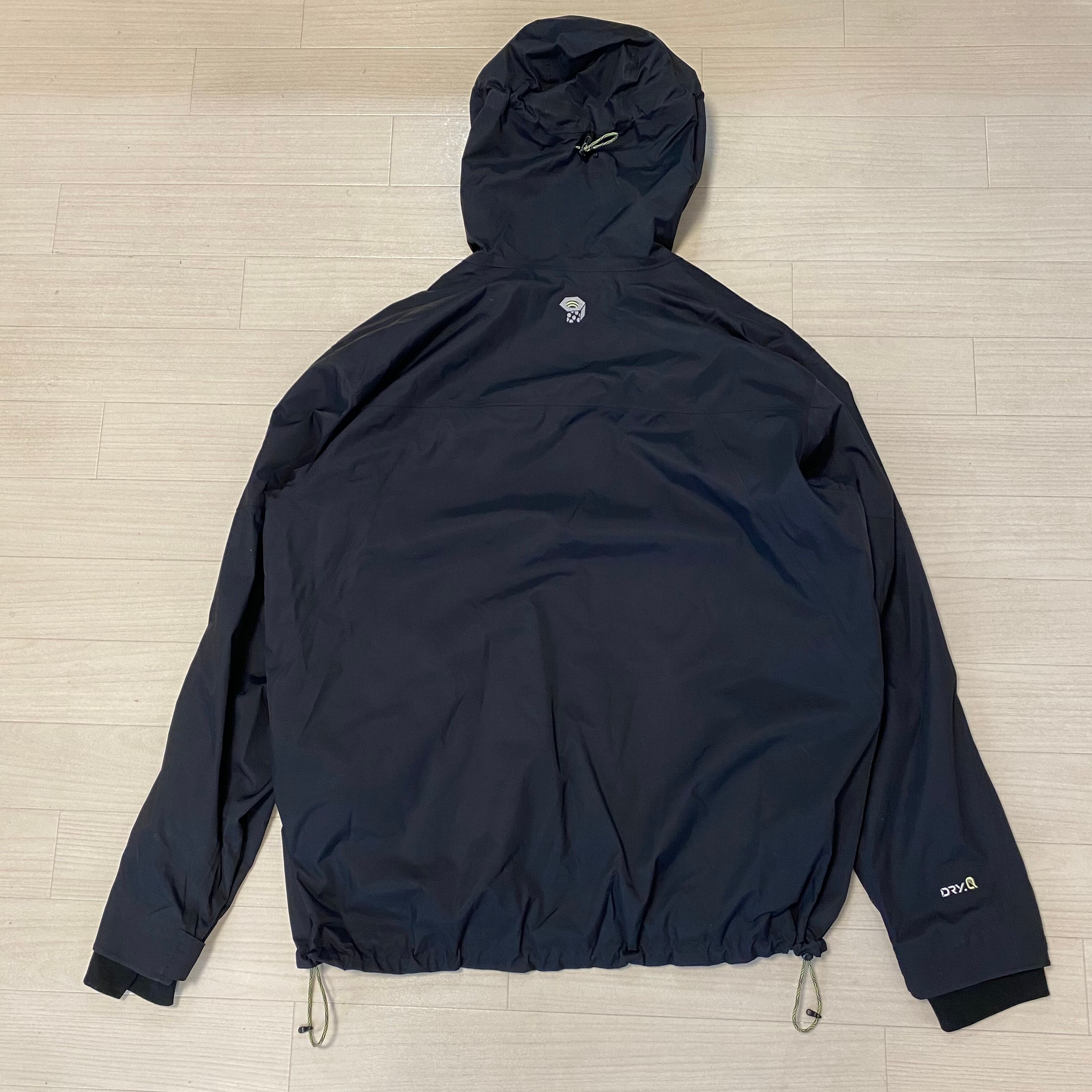マウンテンハードウェアのスノーボードジャケット。ハンドカバーやスノースカート、小物用ポケットを多数備えています。フロントのフラップポケットをアシンメトリーにしているのも特徴的です。もちろん普段用でも可能です。