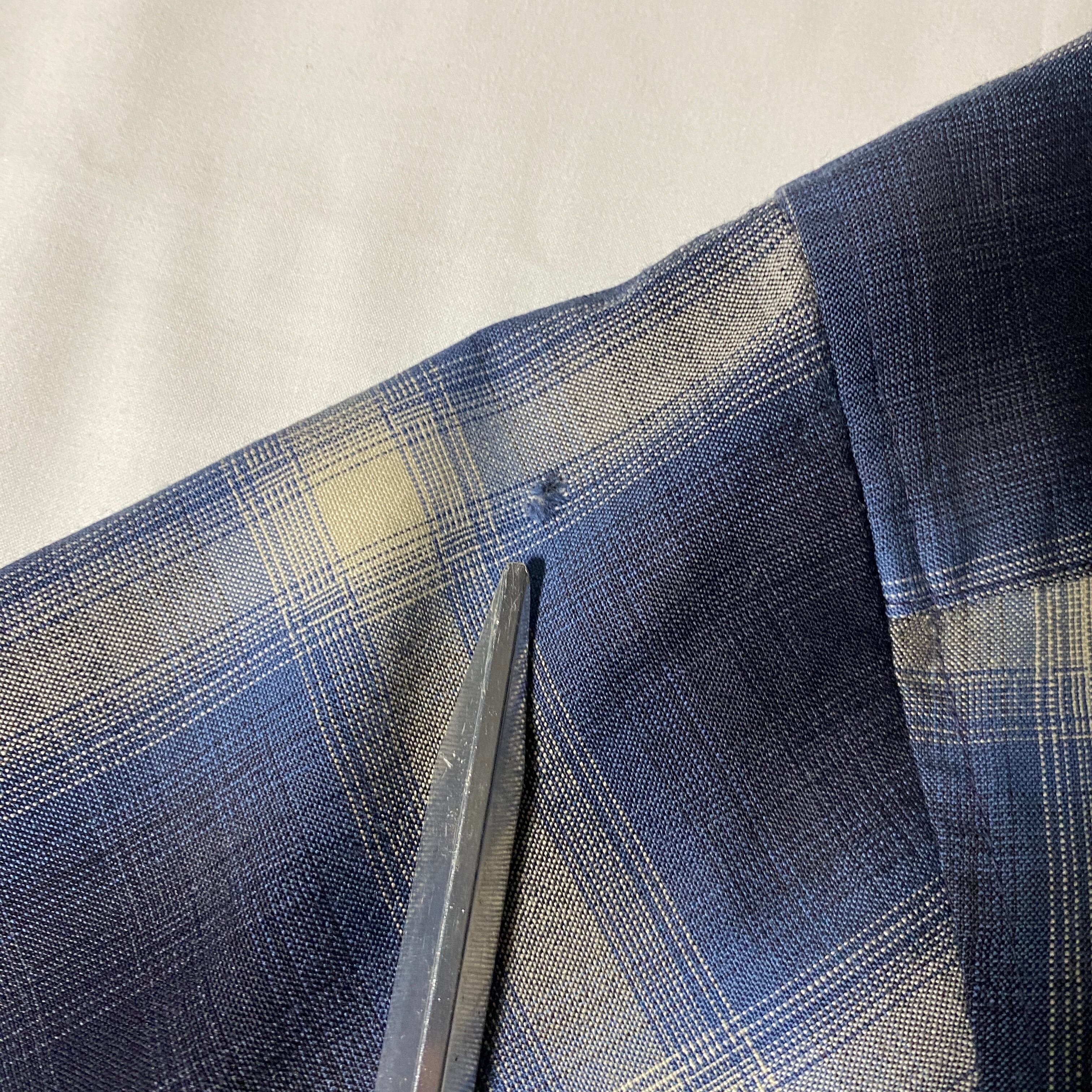 背面に小さなピンホールが3点ございますが、全体的には毛羽立ちも少なく、上質なウール素材が良好な状態を保っています。