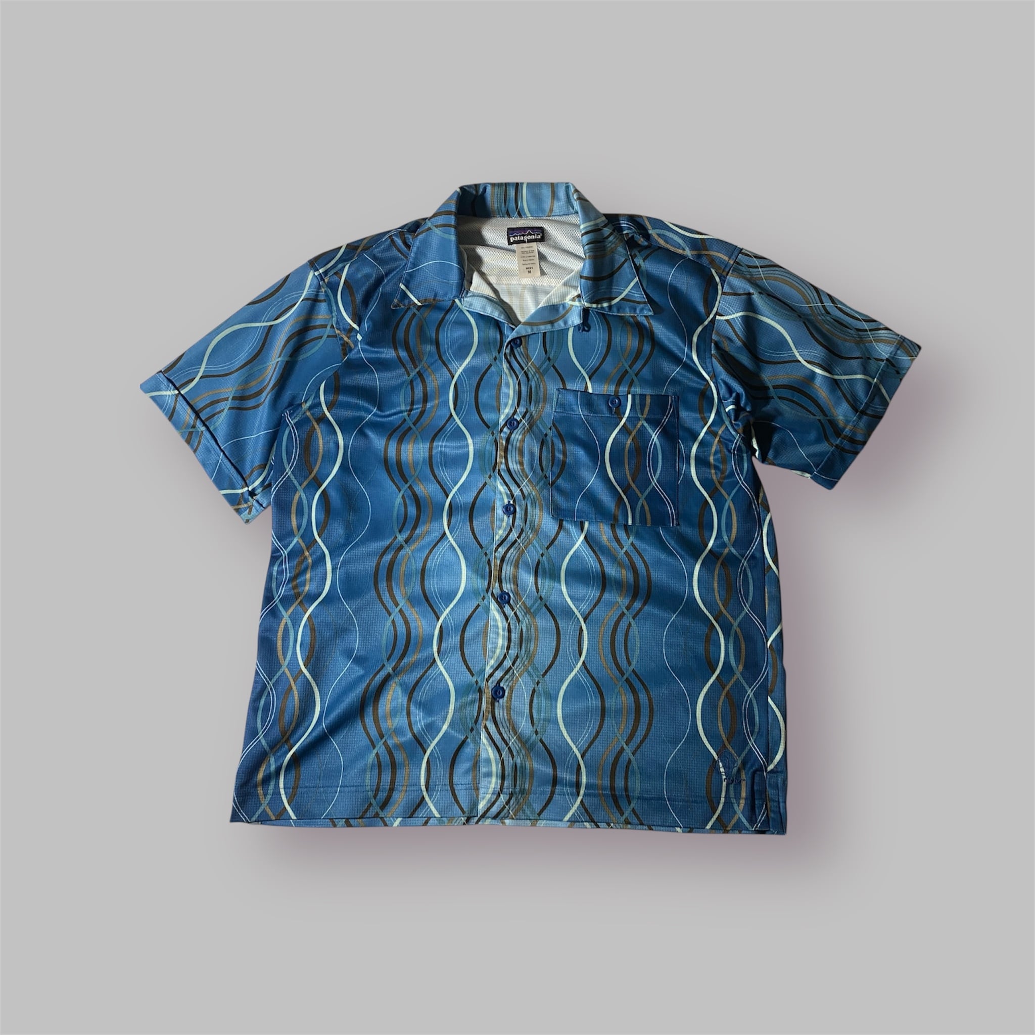 パタゴニア波柄シャツ 軽量半袖ブルー