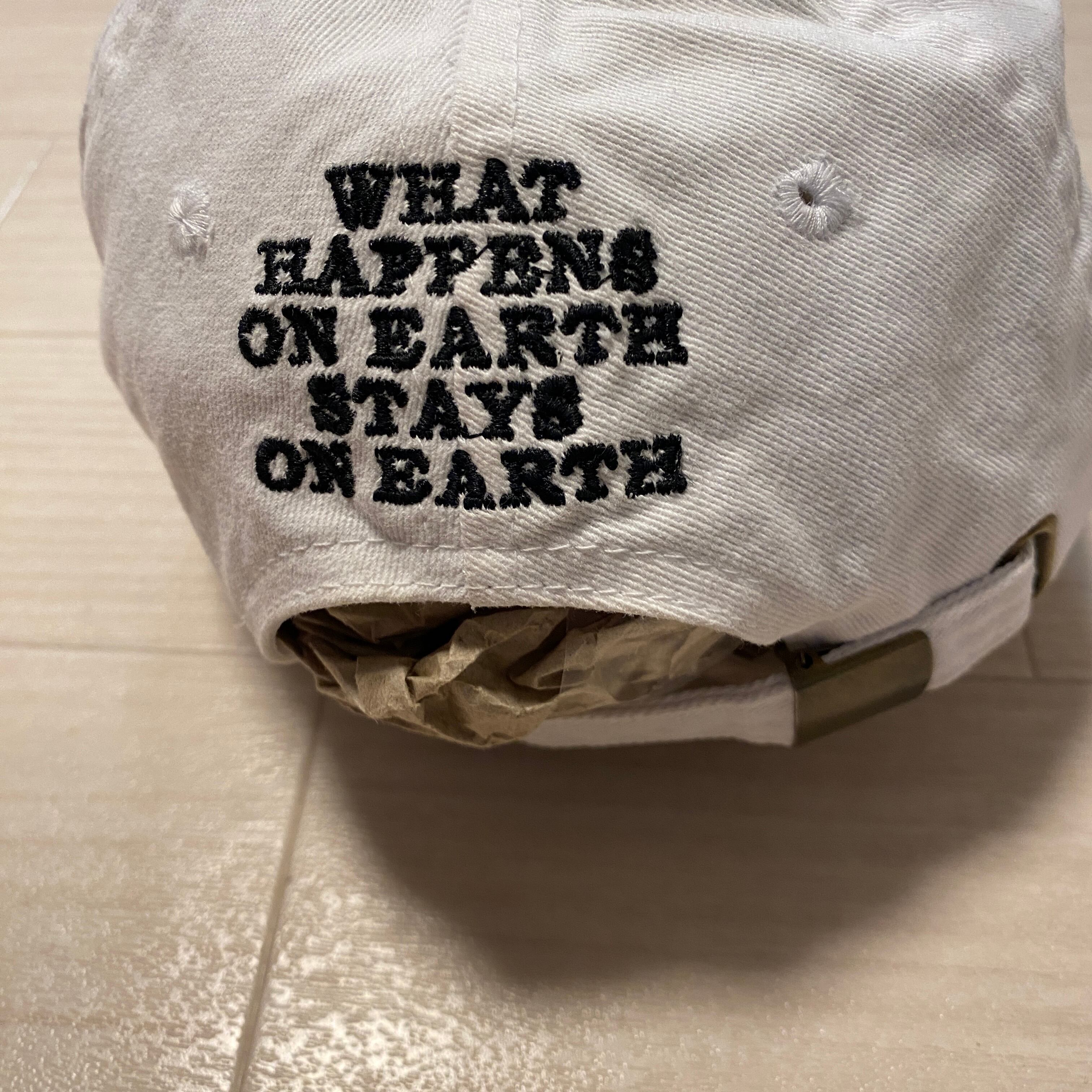 Kendrick Lamarの代表作『DAMN.』のワールドツアー公式キャップ。正面の刺繍ロゴはもちろん、背面には「WHAT HAPPENS ON EARTH STAYS ON EARTH」のメッセージ刺繍入り。ストリートファッションにも、音楽愛を語るアクセントとしても完璧な一品です。クラシックなホワイトカラーでどんなスタイルにもハマる万能アイテム。