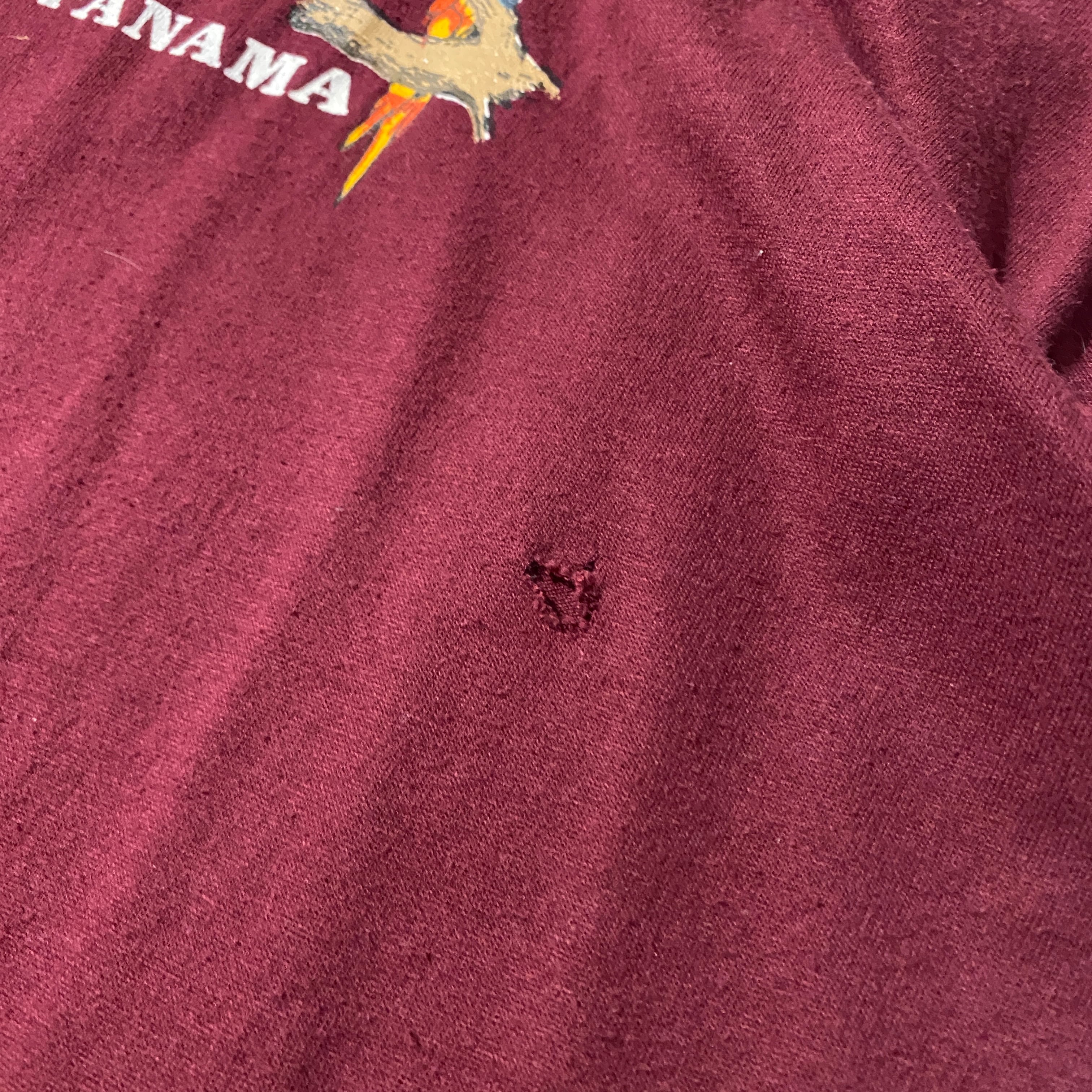 パナマのリゾート気分を一瞬で連れてくる、鮮やかなオウムが映えるTシャツ。Soffe製のMADE IN USAボディで、クラシックなアメリカンシルエットと絶妙なえんじ色が◎。ラテンの風を感じながら、真夏のコーデに遊び心をプラスしてくれるユニークな一枚です。