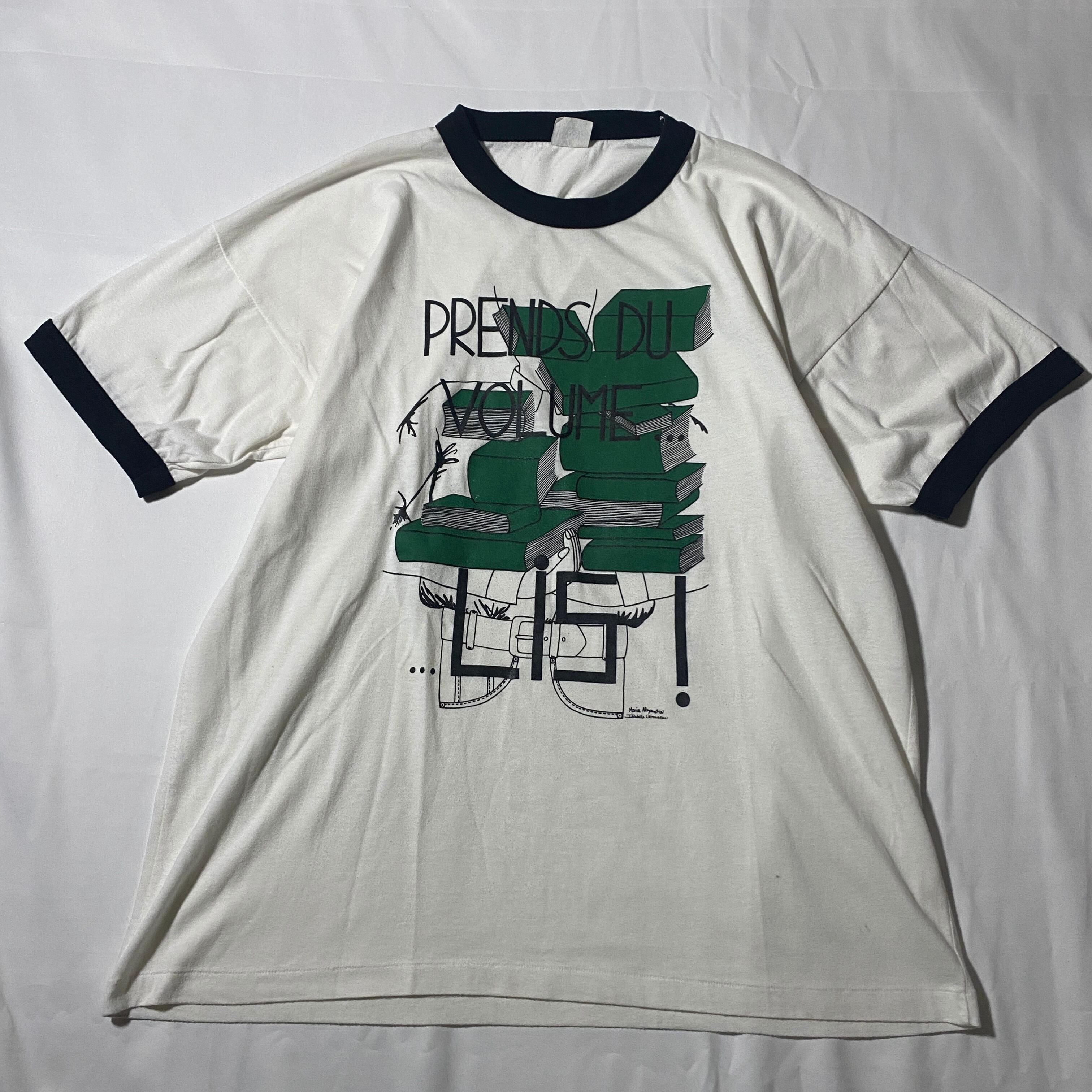 #ringer #リンガーT #アートプリント #フランス語 #フレンチビンテージ #教育ポスター #ヴィンテージTシャツ #カナダ製 #シングルステッチ #読書啓発 #ヴィンテージアート #メッセージTシャツ #ブラックリブ #コントラストカラー #アートTシャツ #本モチーフ #教育系グラフィック #レトロデザイン #ヴィンテージファッション #カナダ製Tシャツ