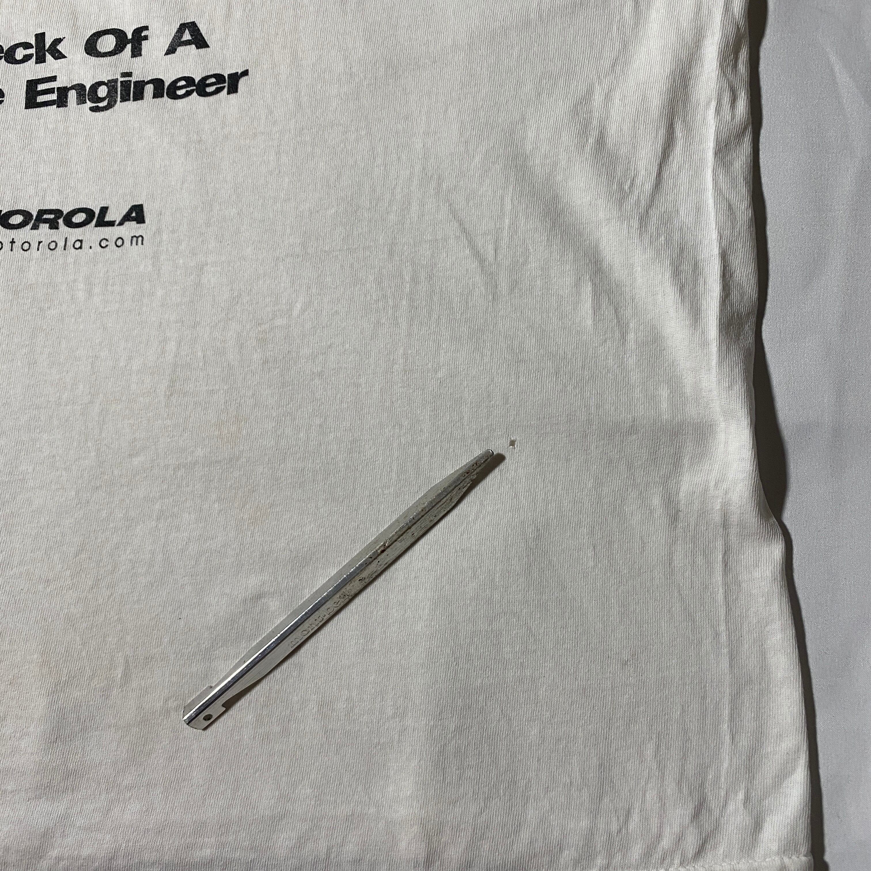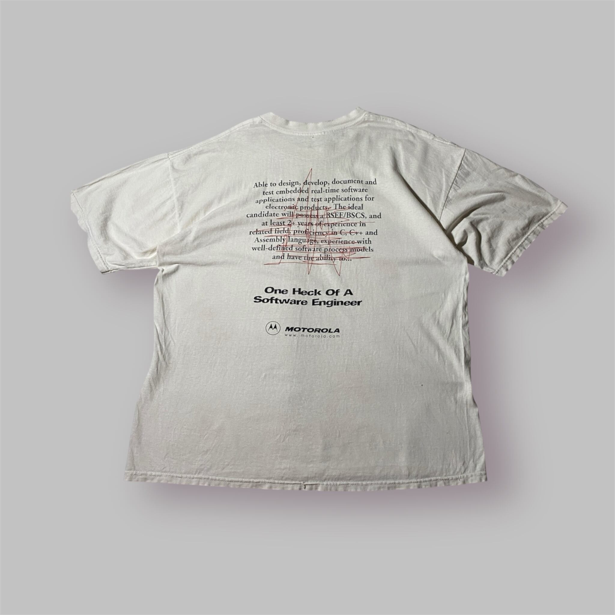 #motorola #software #engineer #gildan #promo #2000s #vintagewear #recruitment #techshirt #geekstyle #whitetee #ivorytee #vintagehumor #corporateculture #programminglife #retroapparel #vintagetshirt #gildantag #coderfashion #officesarcasm