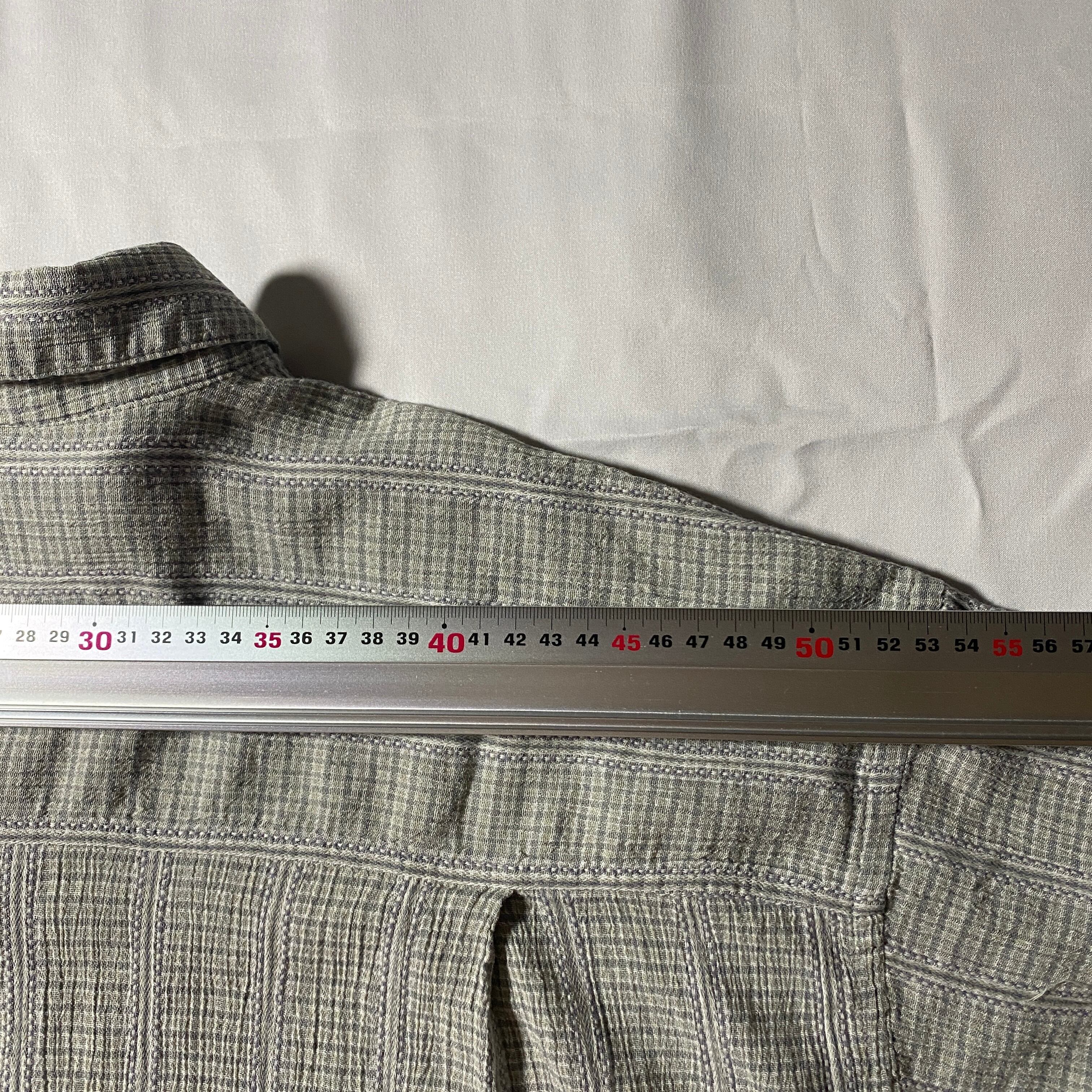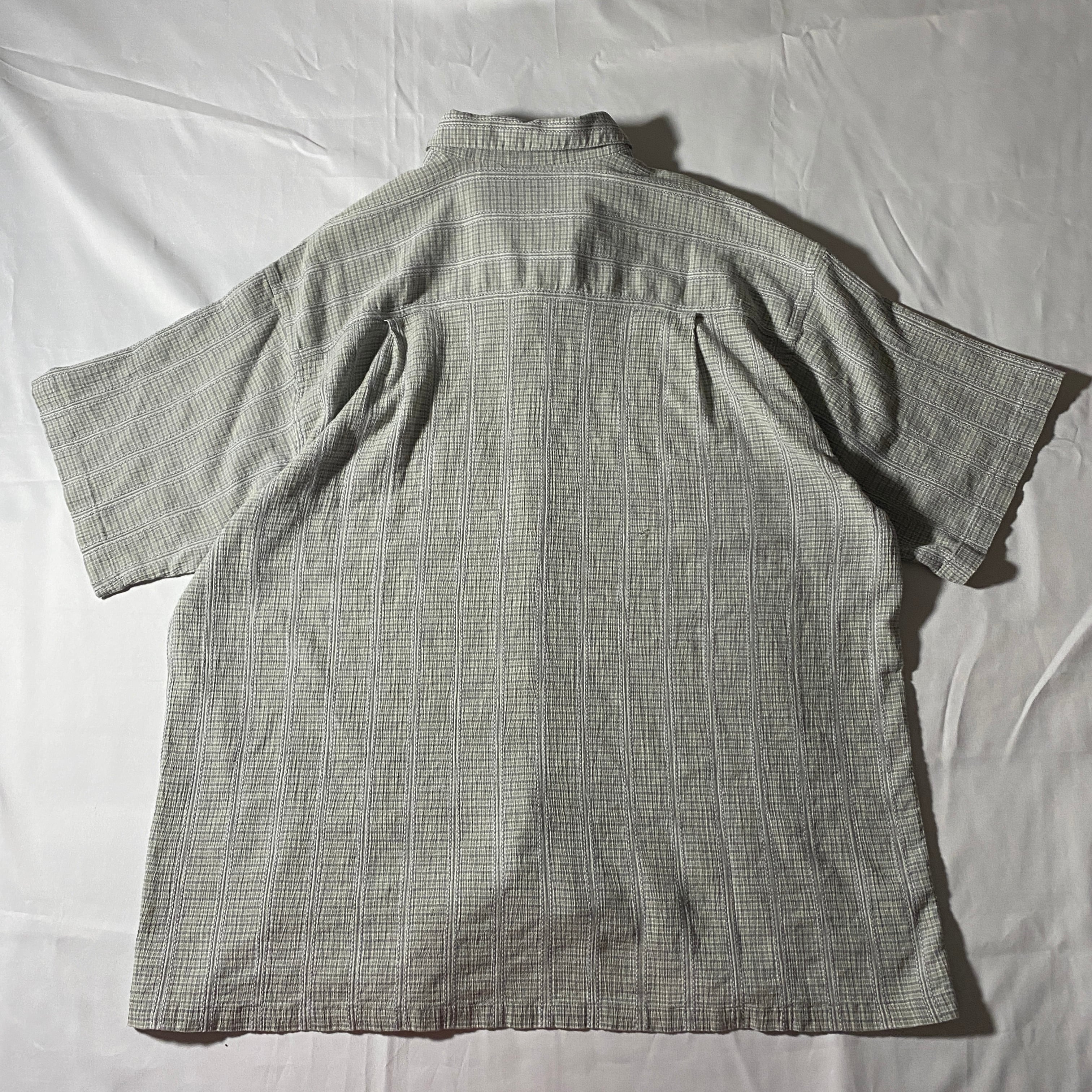 2000年代初頭のPatagoniaがリリースした開襟シャツ。ミニマルなグレートーンに抑えたグリーンの格子柄が効いており、洗練されたナチュラルな空気感が漂います。