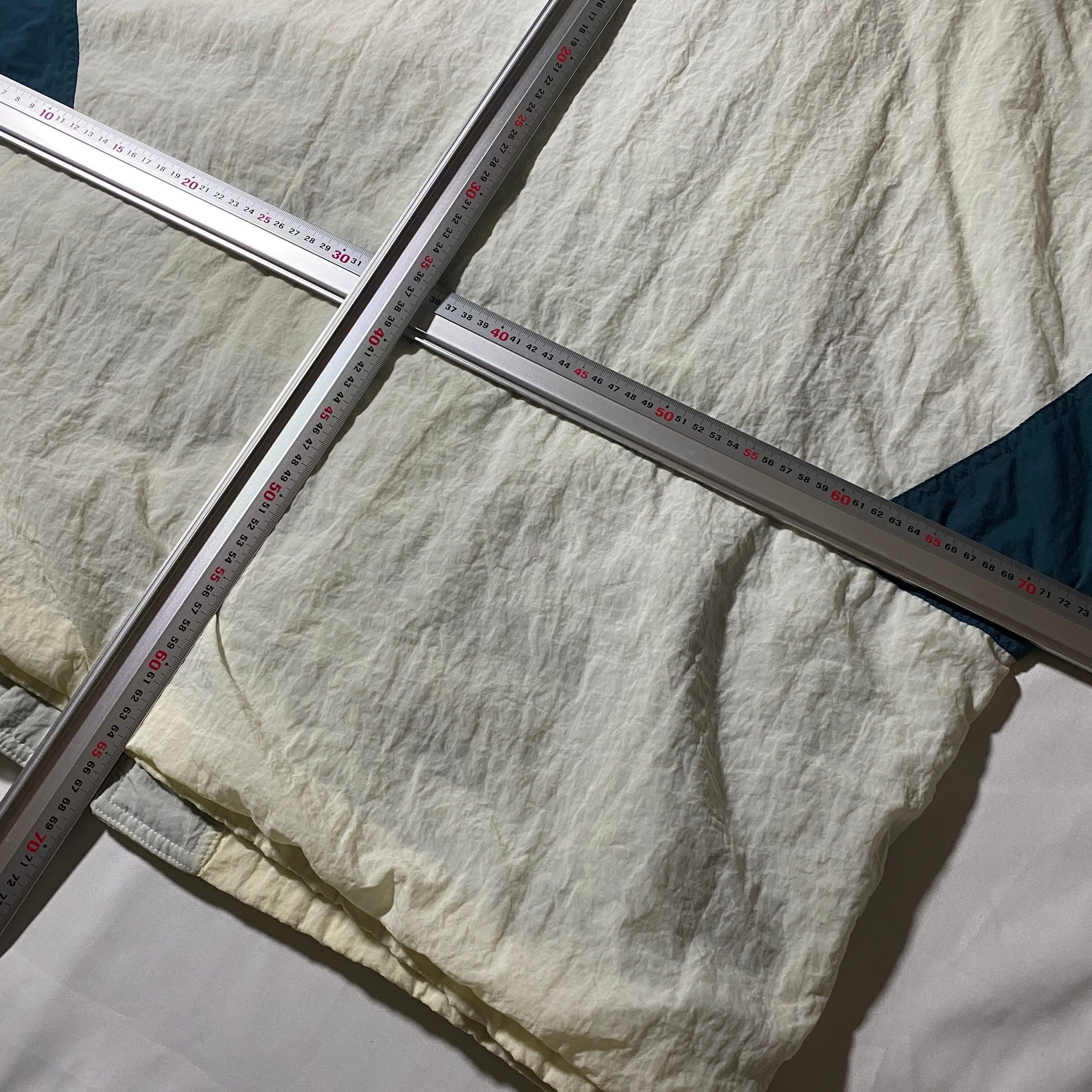 adidasのヴィンテージアノラックの中でも評価の高い“F204”タグモデル。生成りベースに深いティールグリーンの切り替え、クラシックなトレフォイルロゴ刺繍、そしてアノラックらしいカンガルーポケット仕様が魅力。内側は起毛裏地付きで防寒性も◎。風を通さず軽量で、90年代のアウトドア・ストリートスタイルを象徴する一着。台湾製。zipプルも刻印入りでディテール抜かりなし。