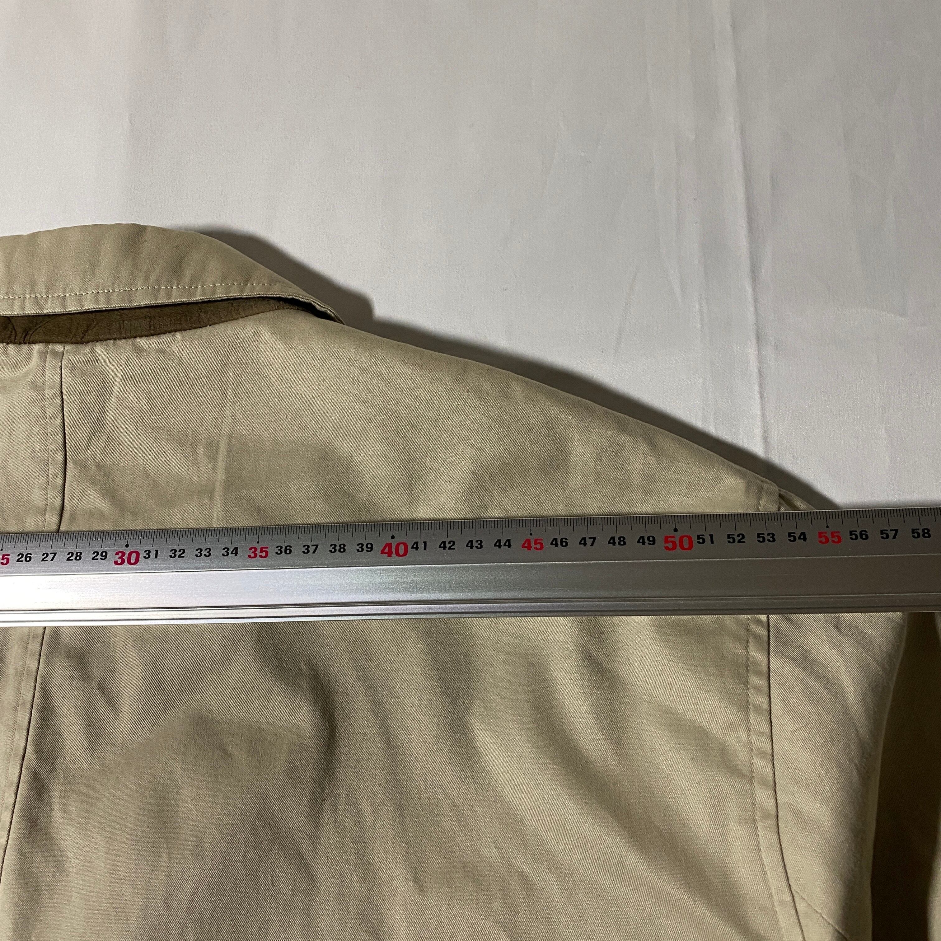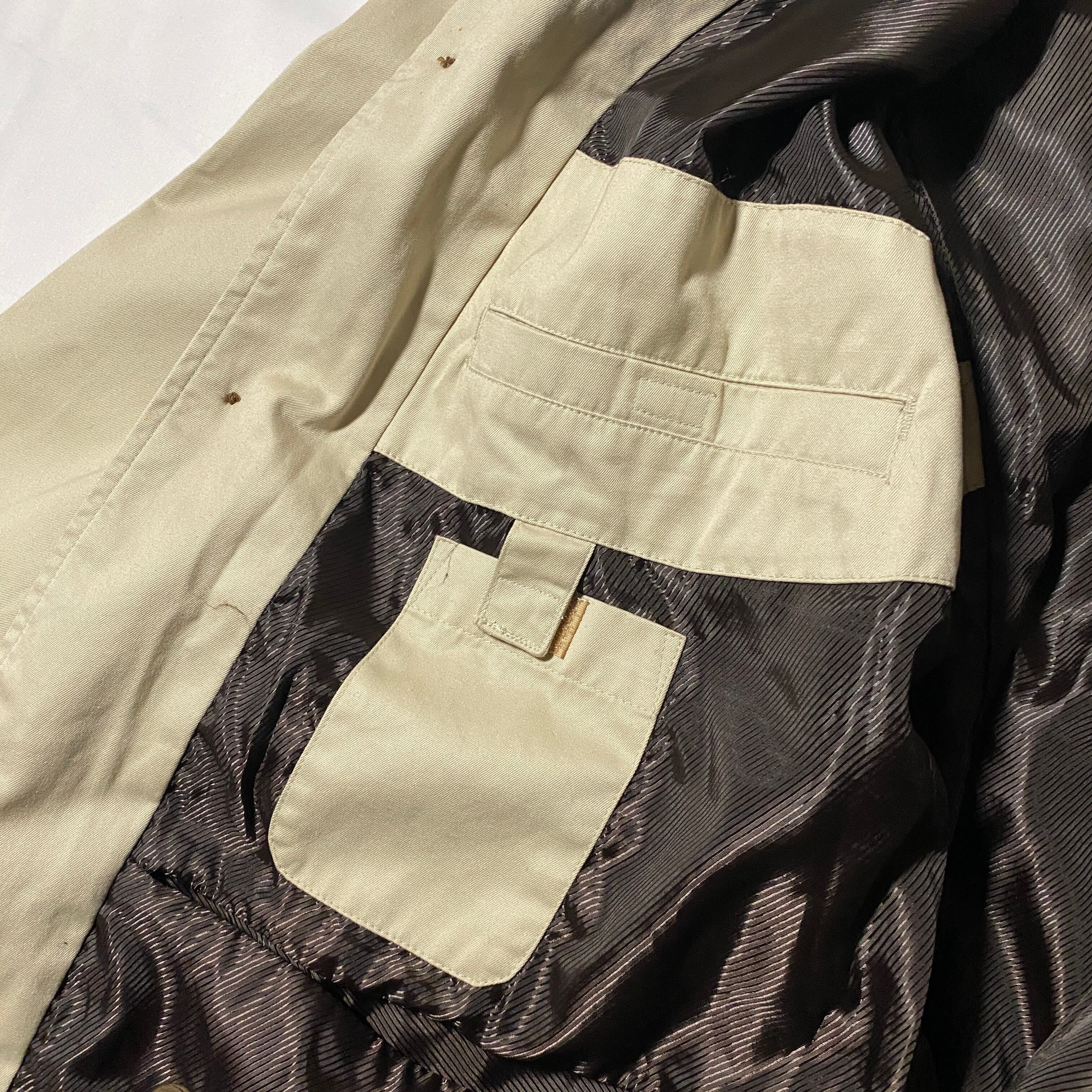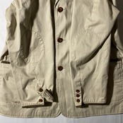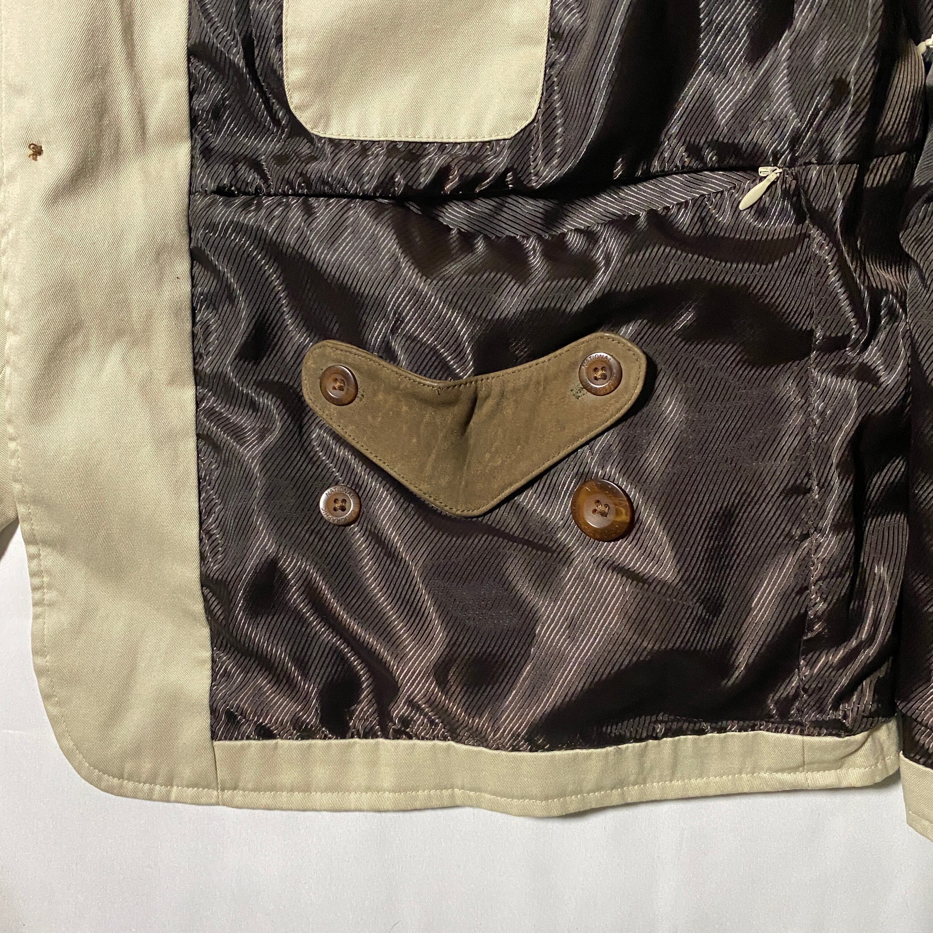 旅を前提に設計された「TRAVEL COLLECTION」から、ナイロンライナー付きの多機能ジャケット。表地は撥水性のあるナイロン混コットン、裏地には通気性のあるポリメッシュと多機能ポケットを搭載。フロントの隠しジップポケットや、パスポート・チケットを安全に収納できる内ポケットは、まさに“動く旅行鞄”。街使いはもちろん、電車旅や空港の移動にも最適な大人仕様。タグ裏の機能図まで秀逸で、ギミック好きにも刺さる一着です。