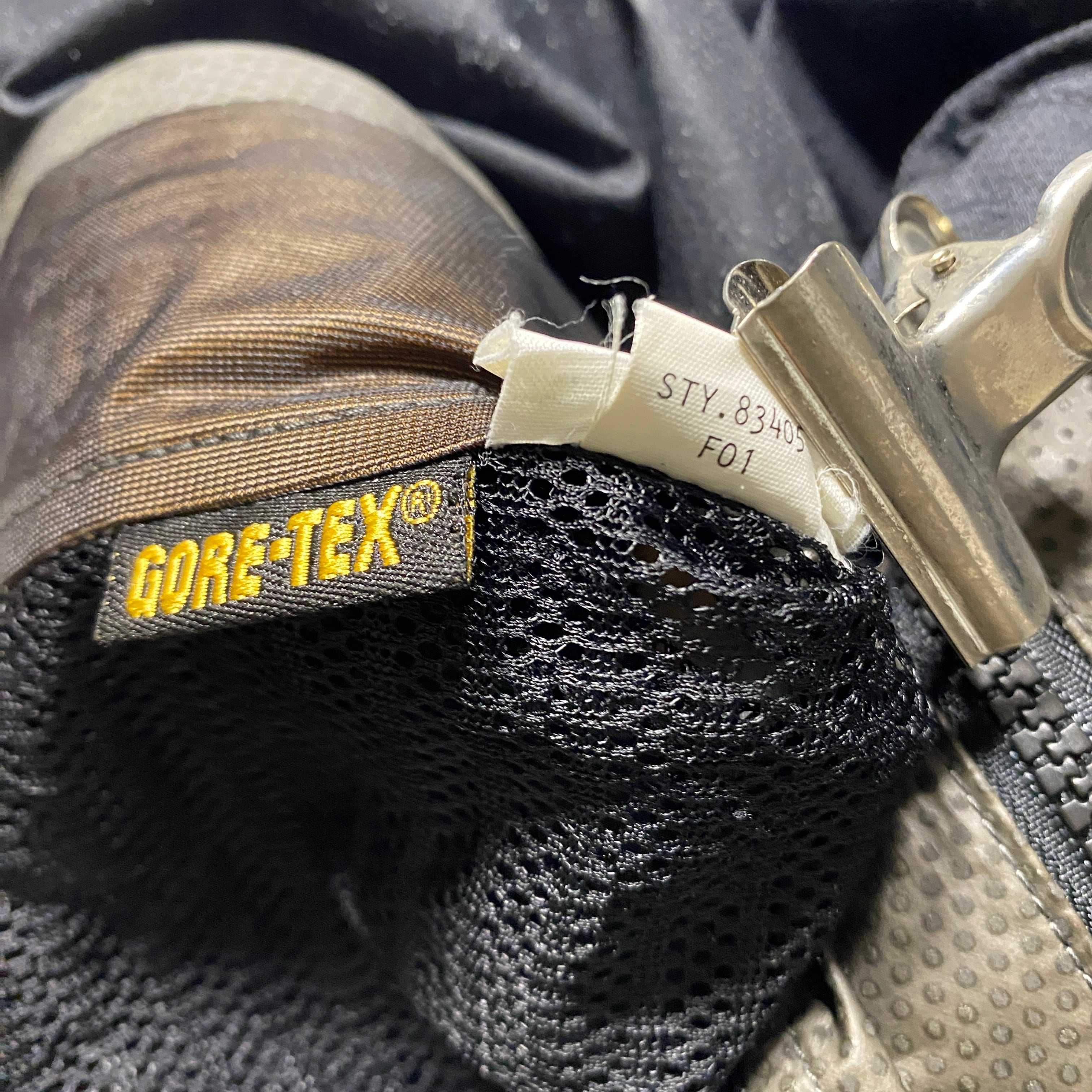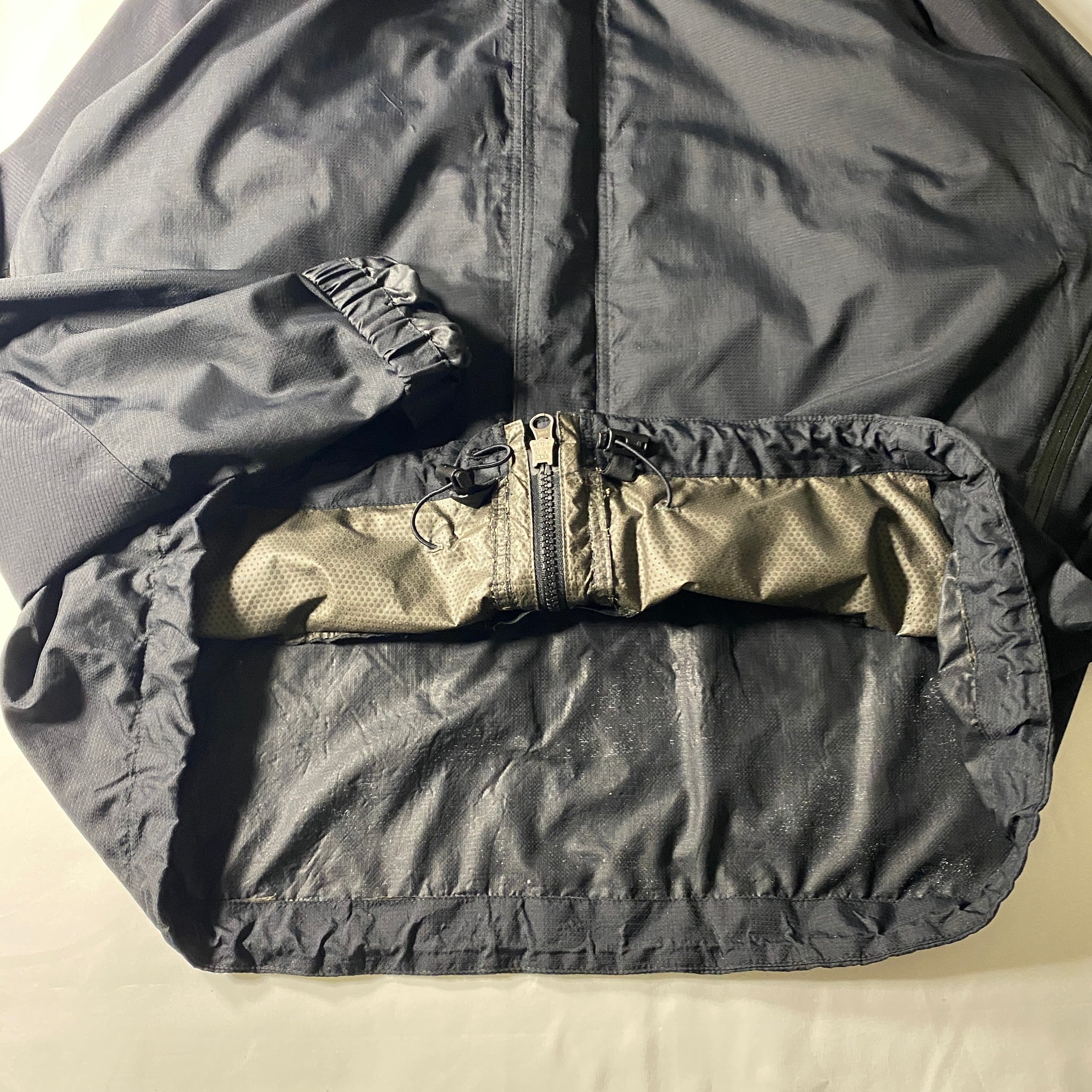 一部ゴアテックス膜を除去し見た目の問題なく着用可能。ウインドブレーカーとしては機能。ジッパー動作もスムーズで、裏地やステッチも良好。テープ部分には使用感はあるが、経年の風合いとして自然に馴染んでいる。まだまだ長く着用いただける一着。