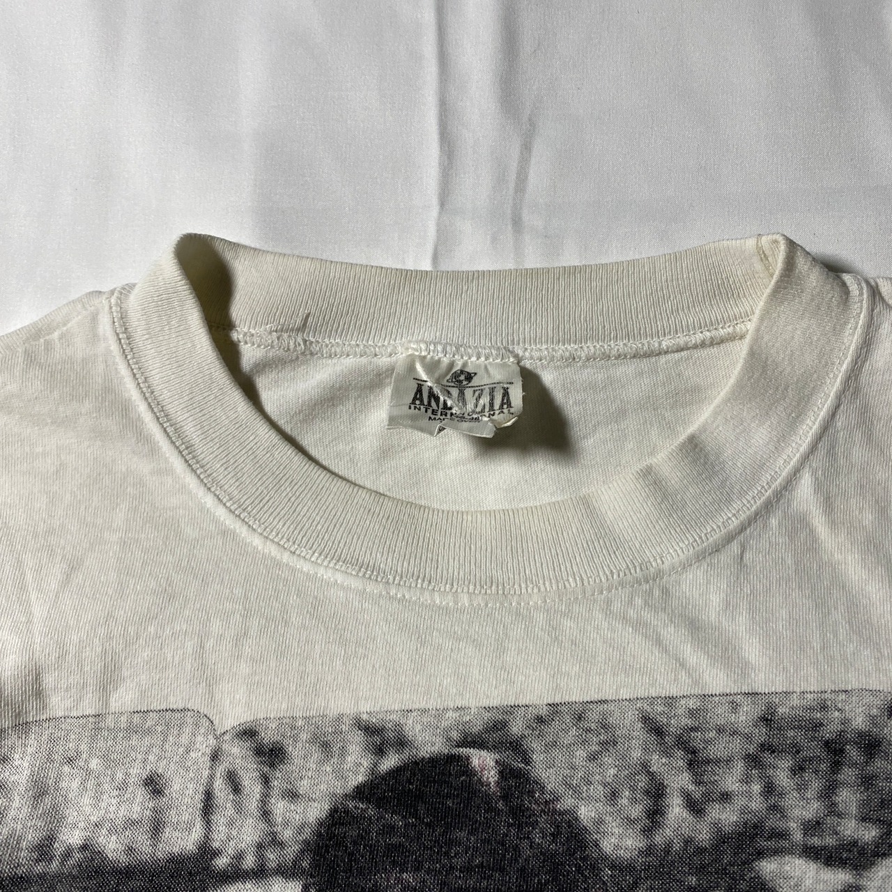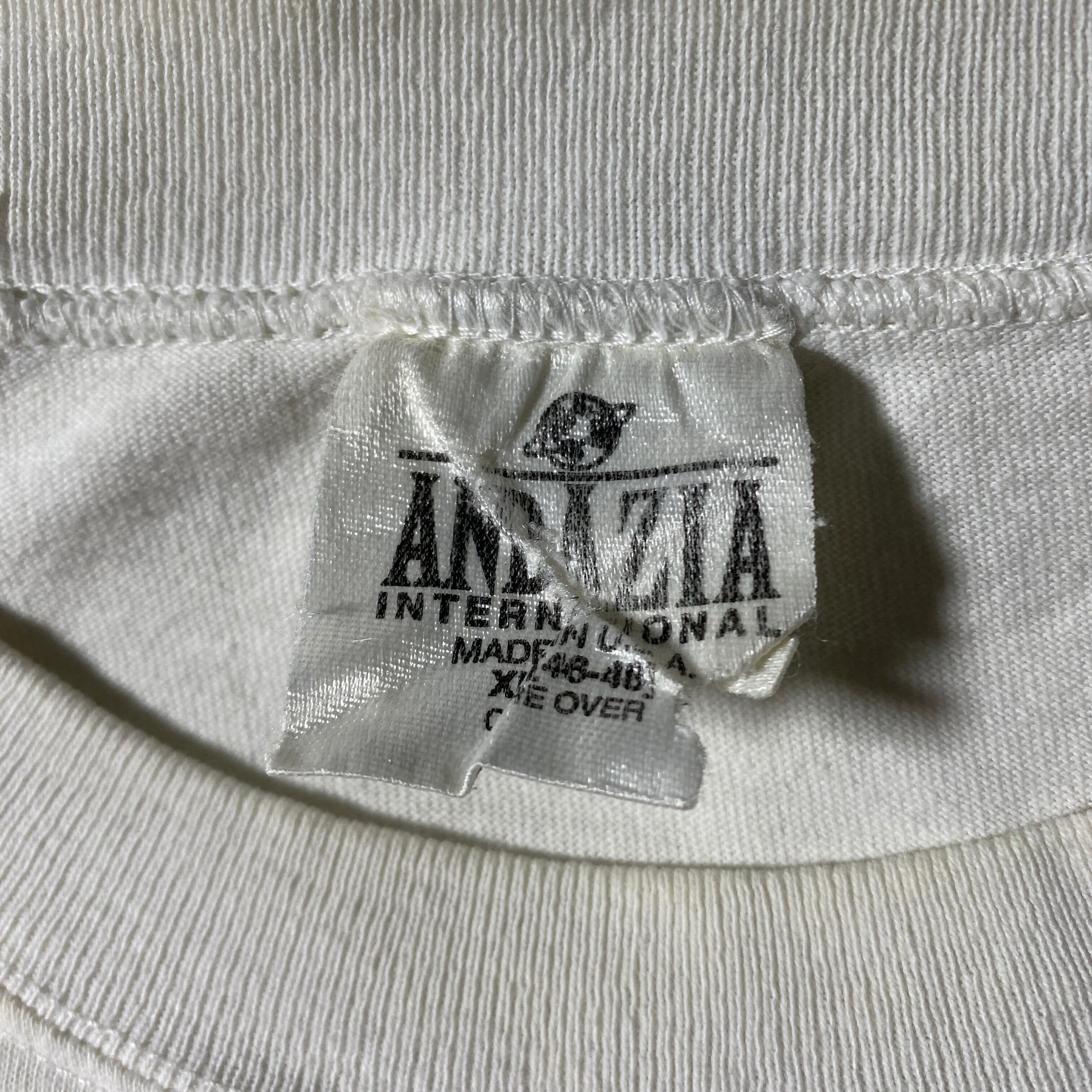 小穴あります。ヴィンテージならではの軽い着用感はありますが、ヘタリも少なく良好なコンディション。プリントの風合いもオリジナルの雰囲気を残しており、古着好きには嬉しい仕上がりです。
