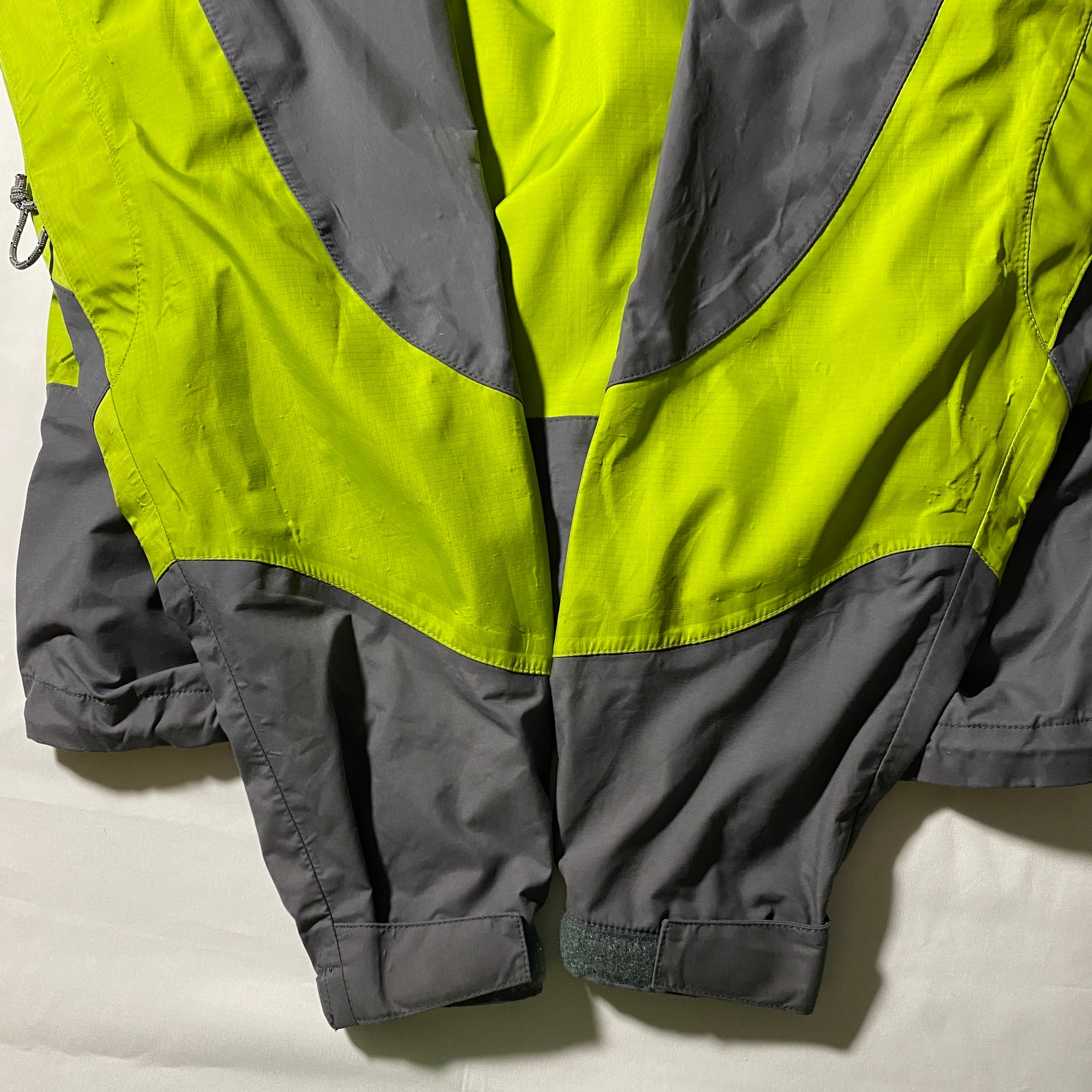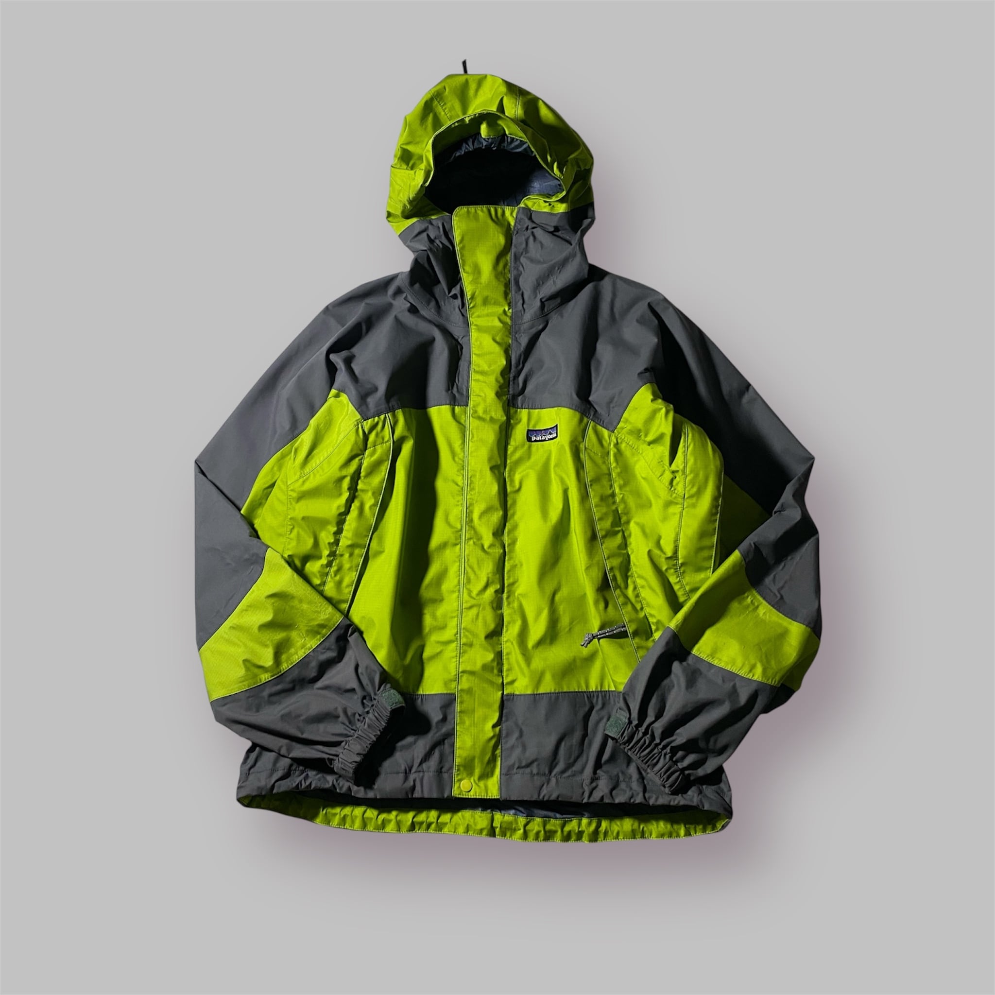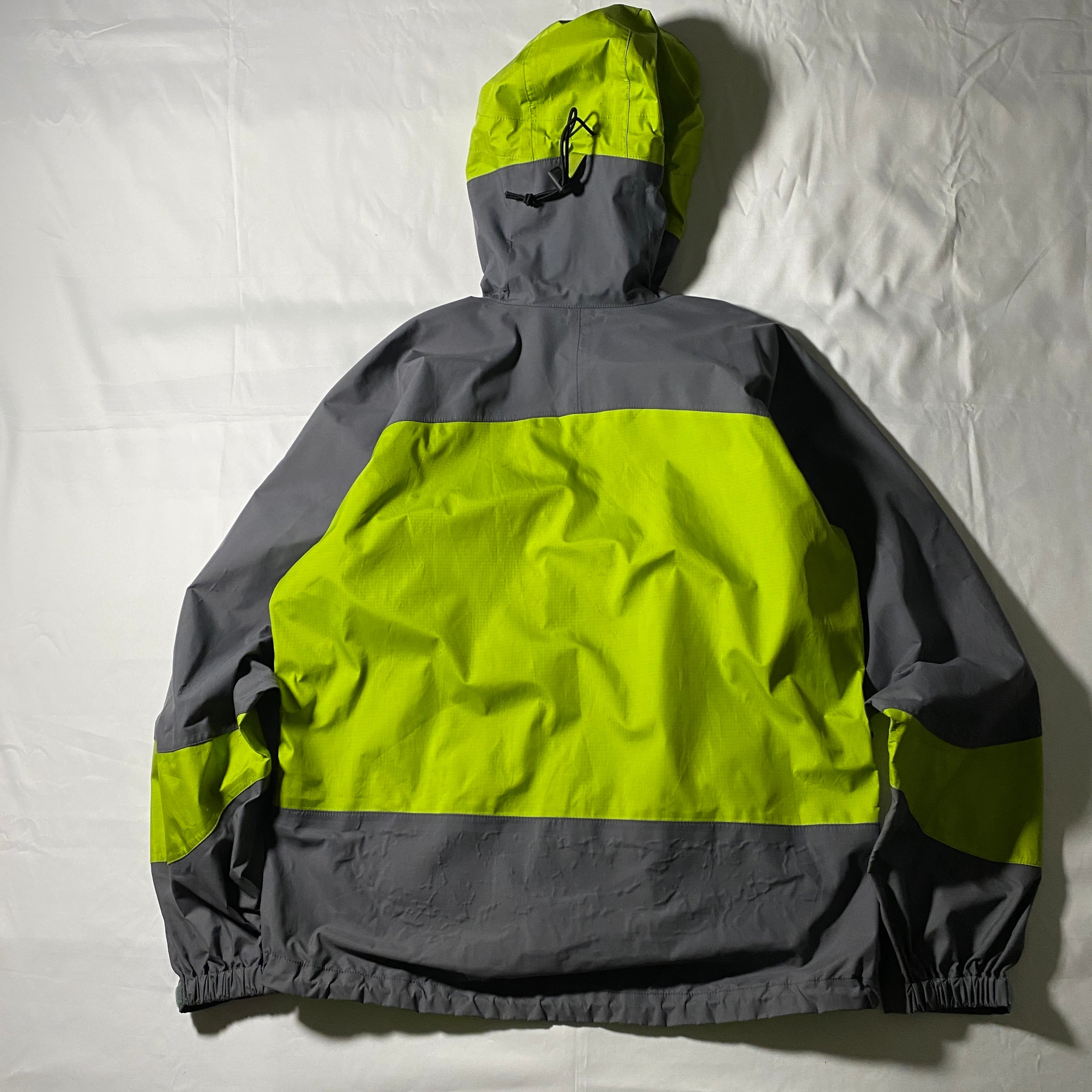 2000年製の名作、Patagonia Direct X Jacket。グレーとイエローの鮮烈なカラーブロックが特徴的で、機能性とデザイン性を兼ね備えた一着。ゴアテックスの高い防水性と透湿性を持ち、雨天時やハードなアウトドアシーンでも快適に着用可能。Y2Kアウトドアやゴープコアの象徴的存在で、古着市場でも非常に人気の高いモデルです。今のトレンドとも相性抜群で、ストリートからフェスまで幅広く活躍します。