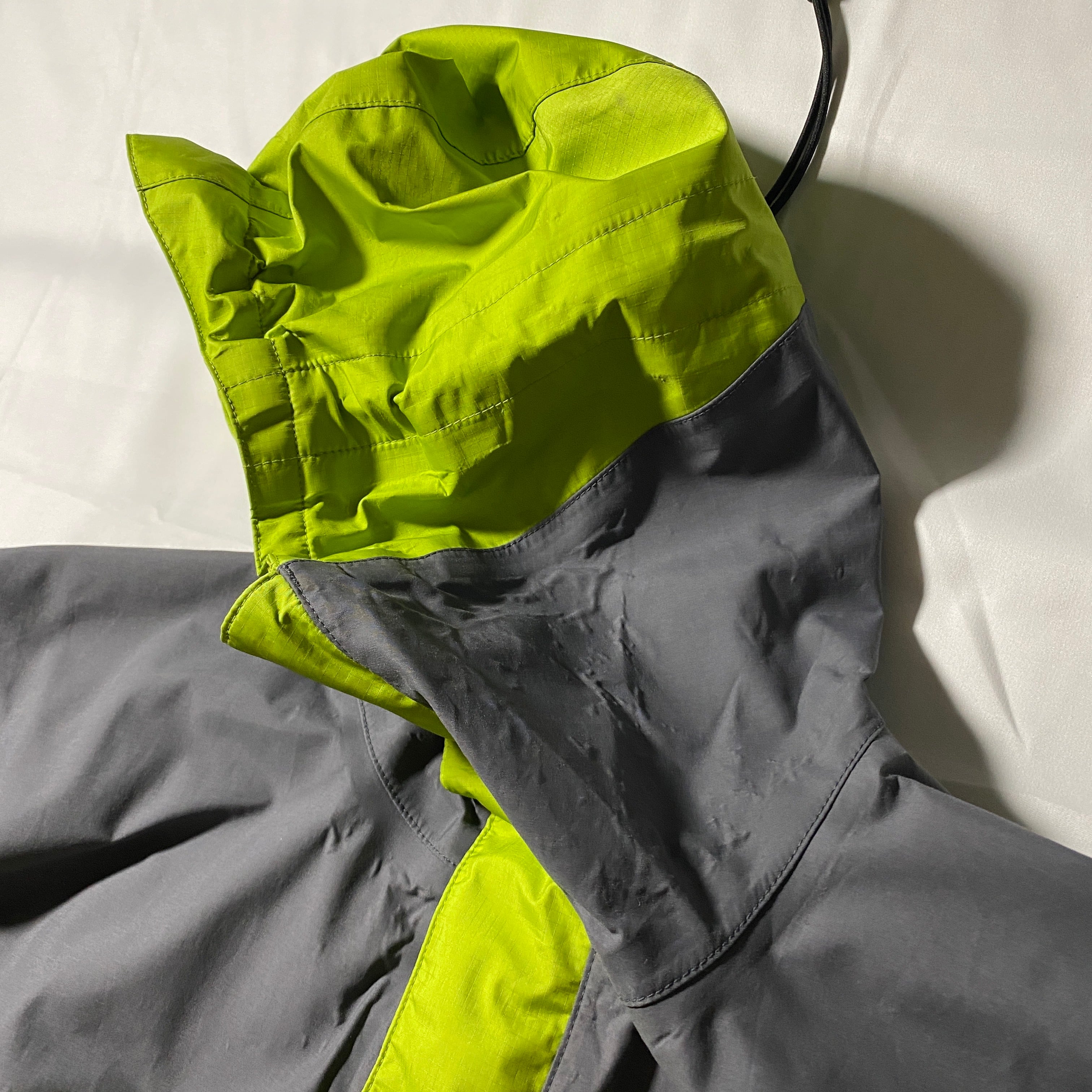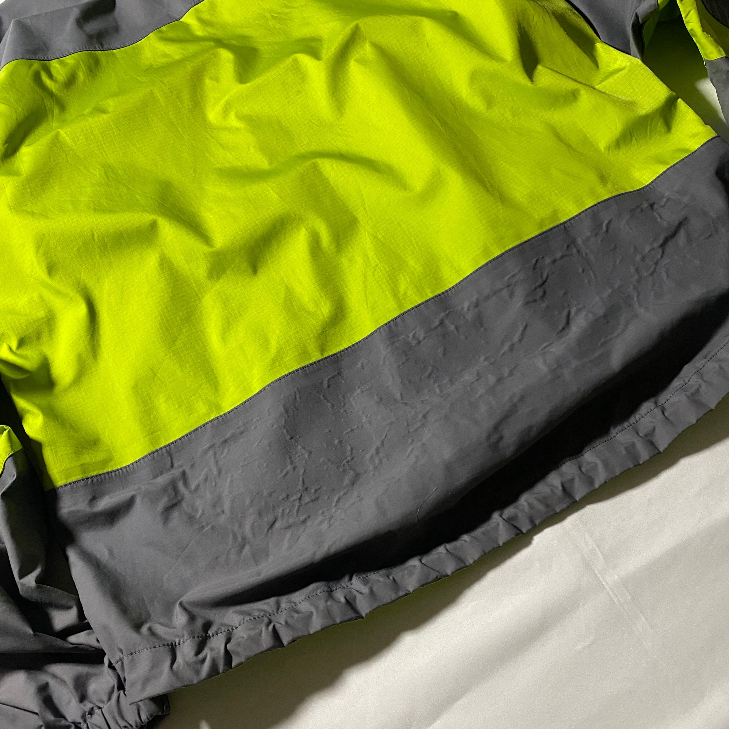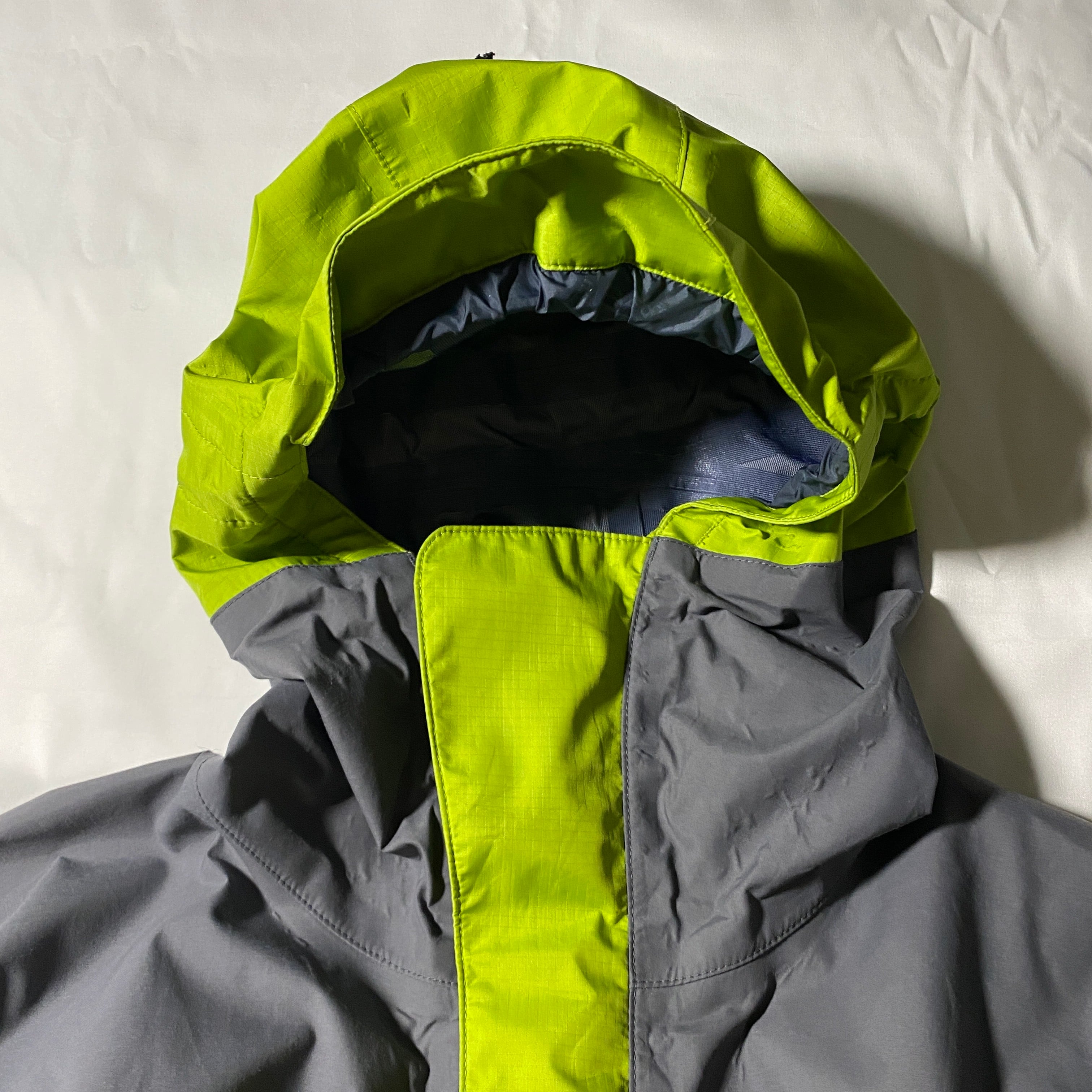 2000年製の名作、Patagonia Direct X Jacket。グレーとイエローの鮮烈なカラーブロックが特徴的で、機能性とデザイン性を兼ね備えた一着。ゴアテックスの高い防水性と透湿性を持ち、雨天時やハードなアウトドアシーンでも快適に着用可能。Y2Kアウトドアやゴープコアの象徴的存在で、古着市場でも非常に人気の高いモデルです。今のトレンドとも相性抜群で、ストリートからフェスまで幅広く活躍します。