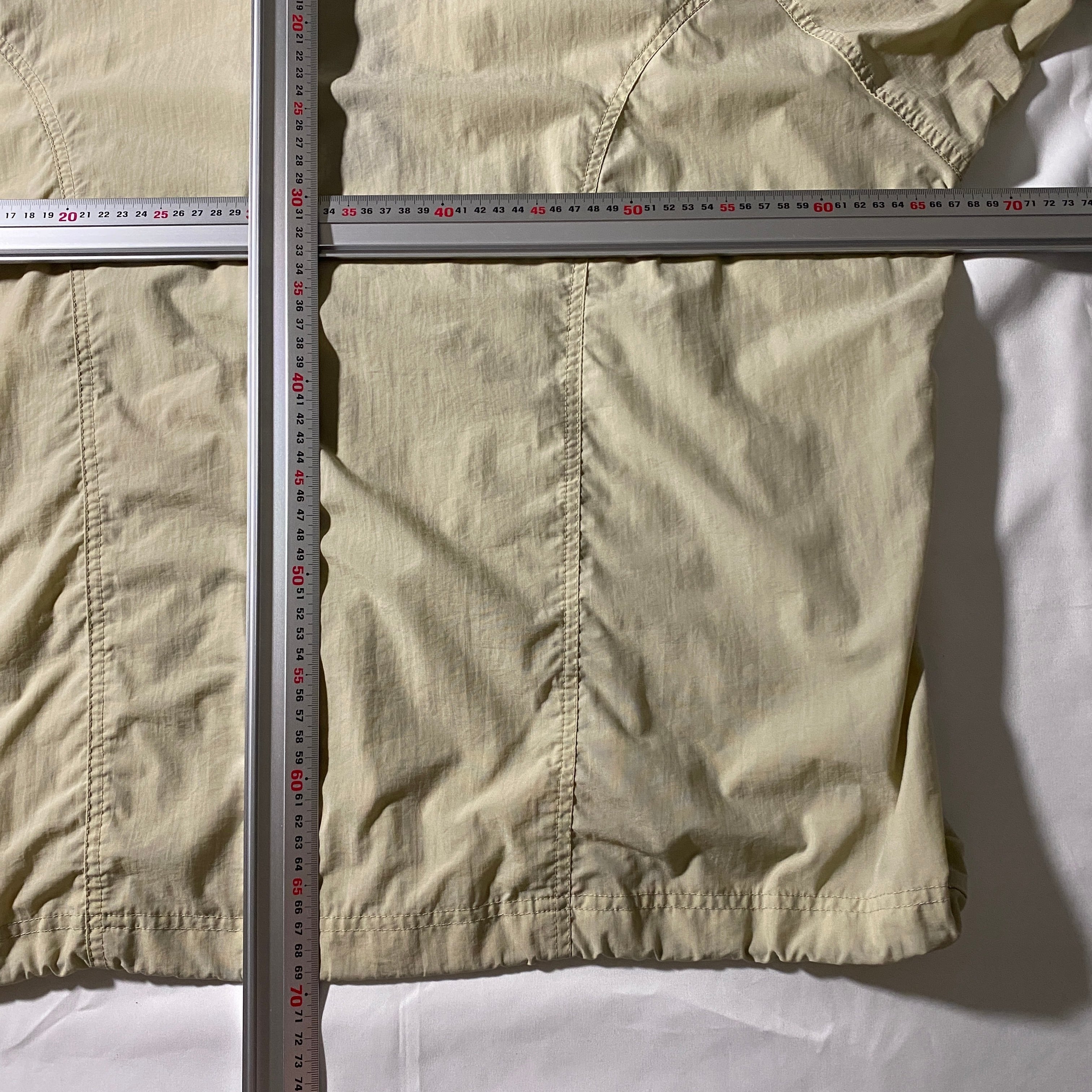 1990年代Columbia製アノラックパーカ。シンプルな生成りカラーにウッドボタンのディテールが映える、ミニマルながら存在感のあるデザイン。アウトドアシーンはもちろん、ストリートや古着スタイルにもしっかりハマる万能アイテムです。軽量ながらも丈夫で、秋から春先までロングシーズン着用可能。ビンテージ市場でも評価が高く、特にこの年代のColumbiaは探している人も多い名作です。
