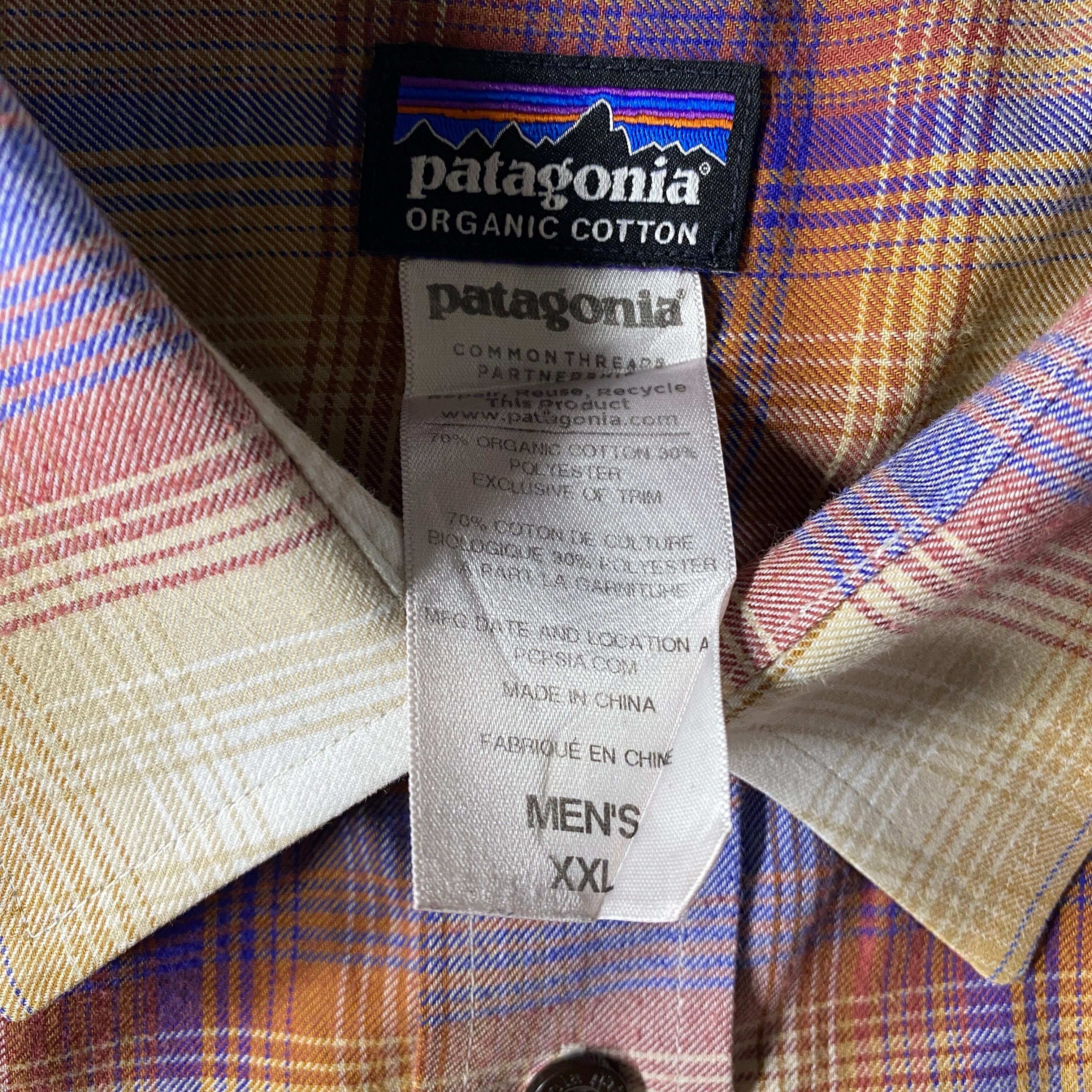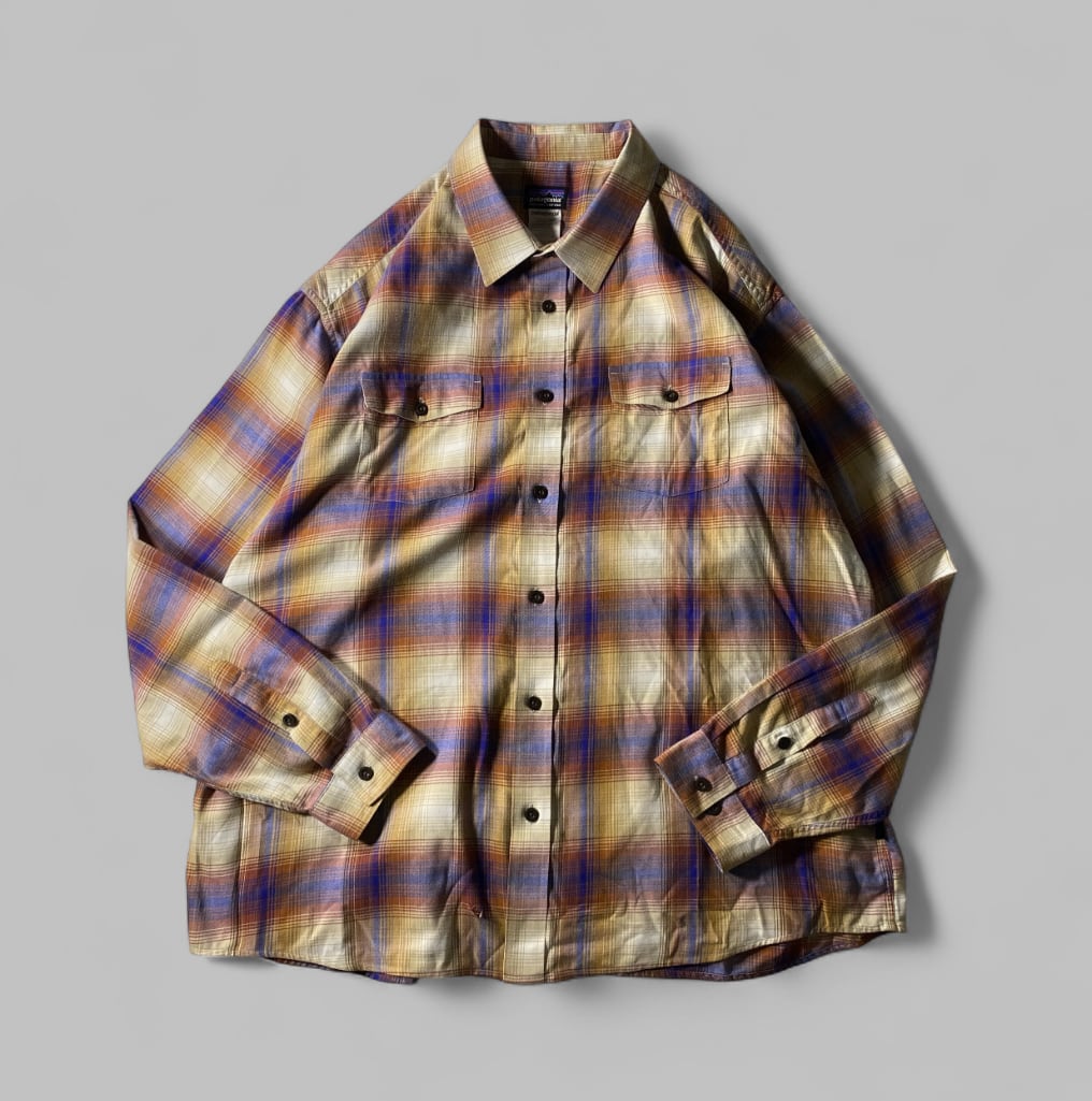 2014年に生産されたオーガニックコットン使用のオンブレチェックシャツ。環境配慮の象徴であるCommon Threads Partnershipタグ付きで、Patagoniaが掲げるサステナブル精神を体現した一着です。タウンユースはもちろん、レイヤードスタイルの主役としても活躍。クラシックなオンブレ柄と柔らかな質感が、秋冬のコーディネートに温かみを添えます。