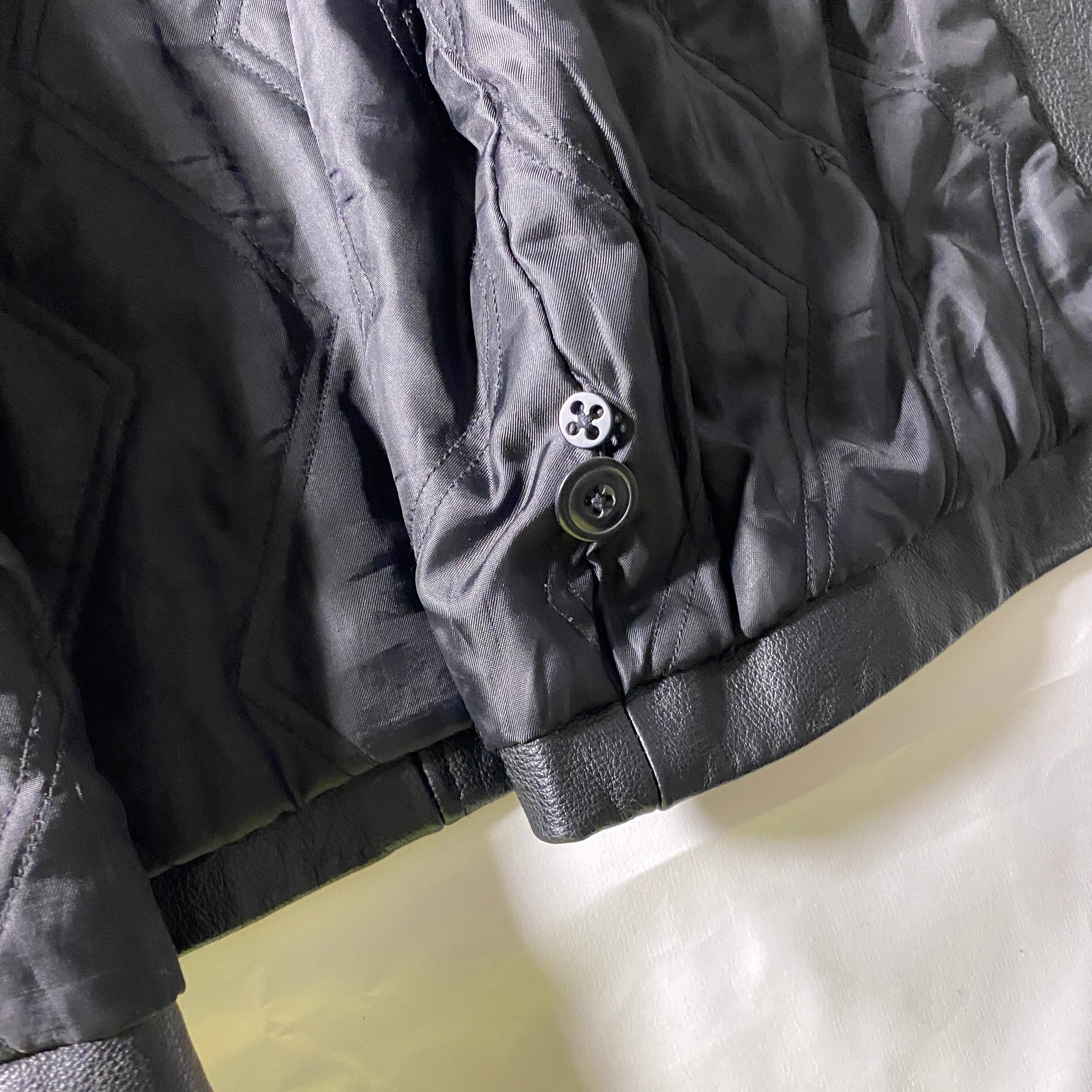 ヴィンテージならではの風合いを感じるコンディション。小さなシミやレザー特有のシワはありますが、艶感が残っており、むしろ一点物の魅力を高めています。しっかりしたレザーの質感は着込むほどに体に馴染み、長く愛用可能な一着です。