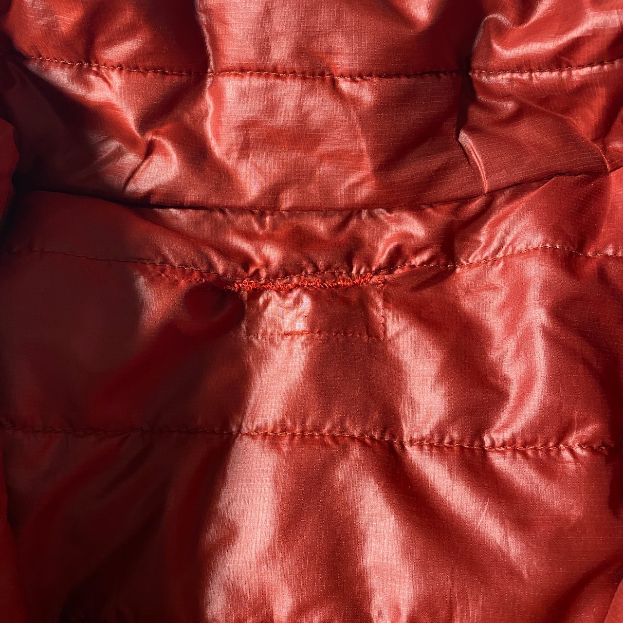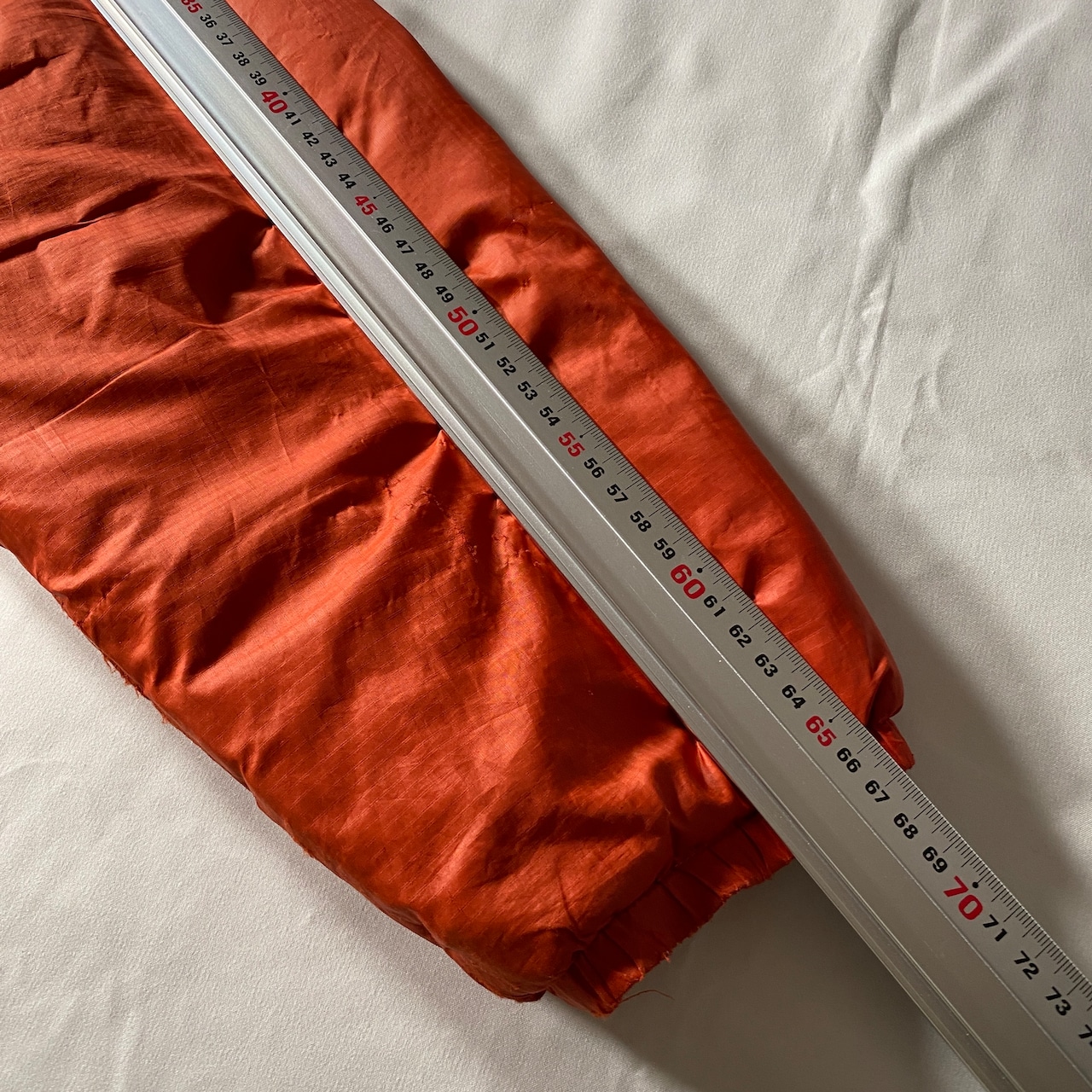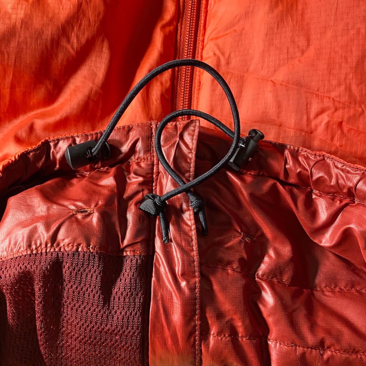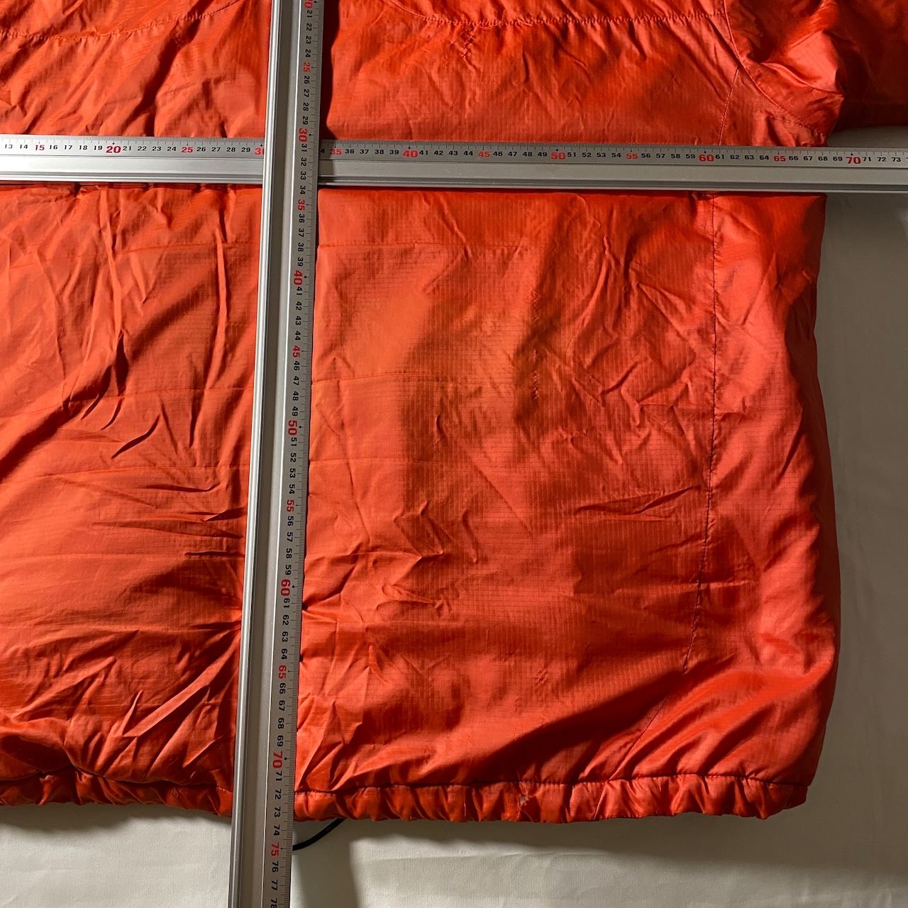 一部リペア、パーツ交換済み。全体に自然な使用感あり。袖や胴部に小さなリペア跡、軽い擦れが見られますが、ヴィンテージ特有の雰囲気をプラス。ナイロンシェルの光沢と発色がまだしっかり残り、アウトドアにもタウンユースにも映える一着です。
