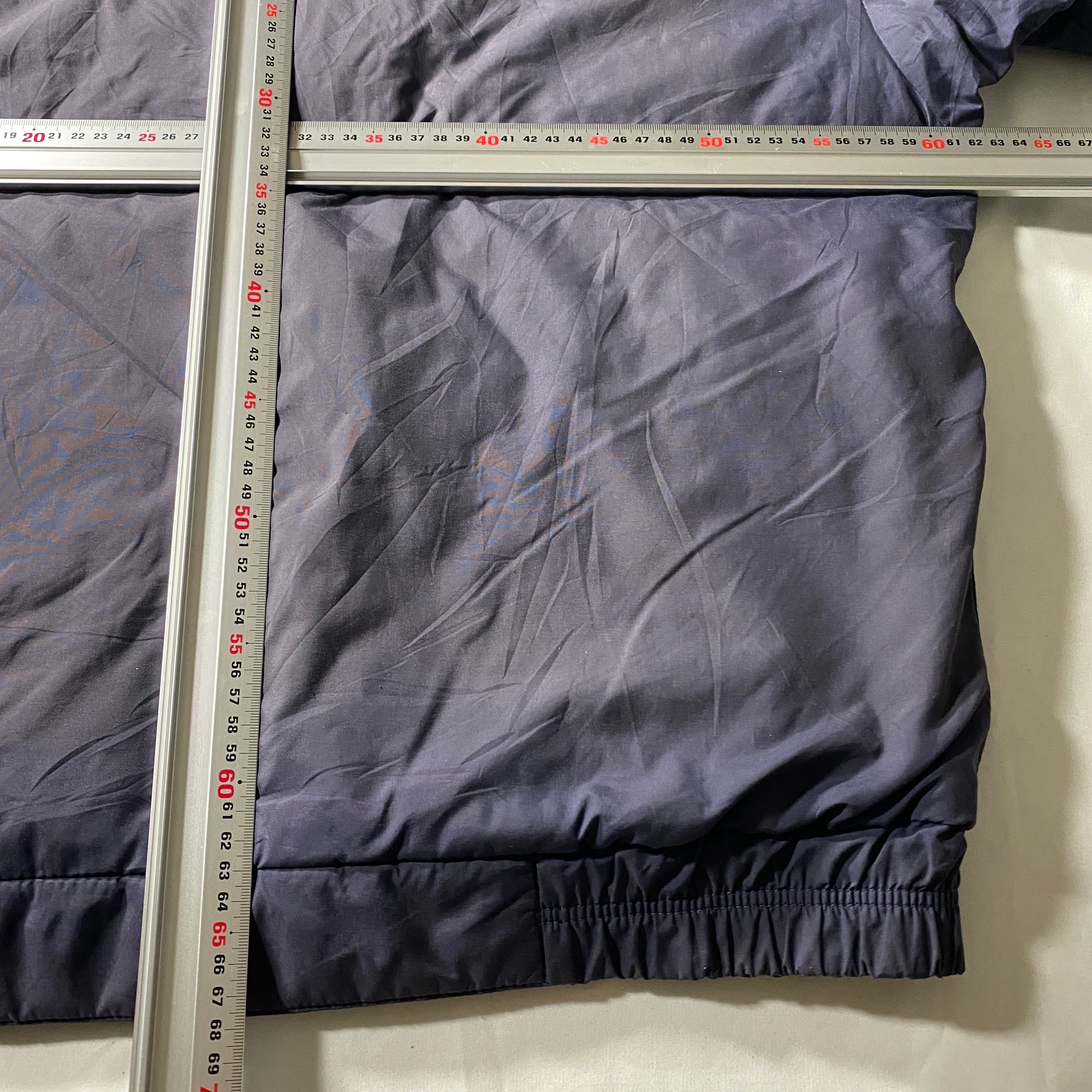 全体的にヴィンテージ特有の使用感あり。褪色やスレはありますが、90年代の風合いとして味わい深く、ナイロンの光沢感も十分に残るコンディションです。ファスナーや裏地の状態も良好で、まだまだ活躍できる一着。