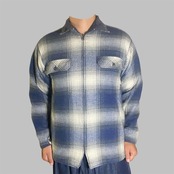 表面はクラシックなオンブレチェックのオーガニックコットンフランネル、裏面はマットな光沢のあるナイロンキルト。軽量中綿入りで高い保温性を確保しつつ、シャツ感覚で羽織れる万能モデル。