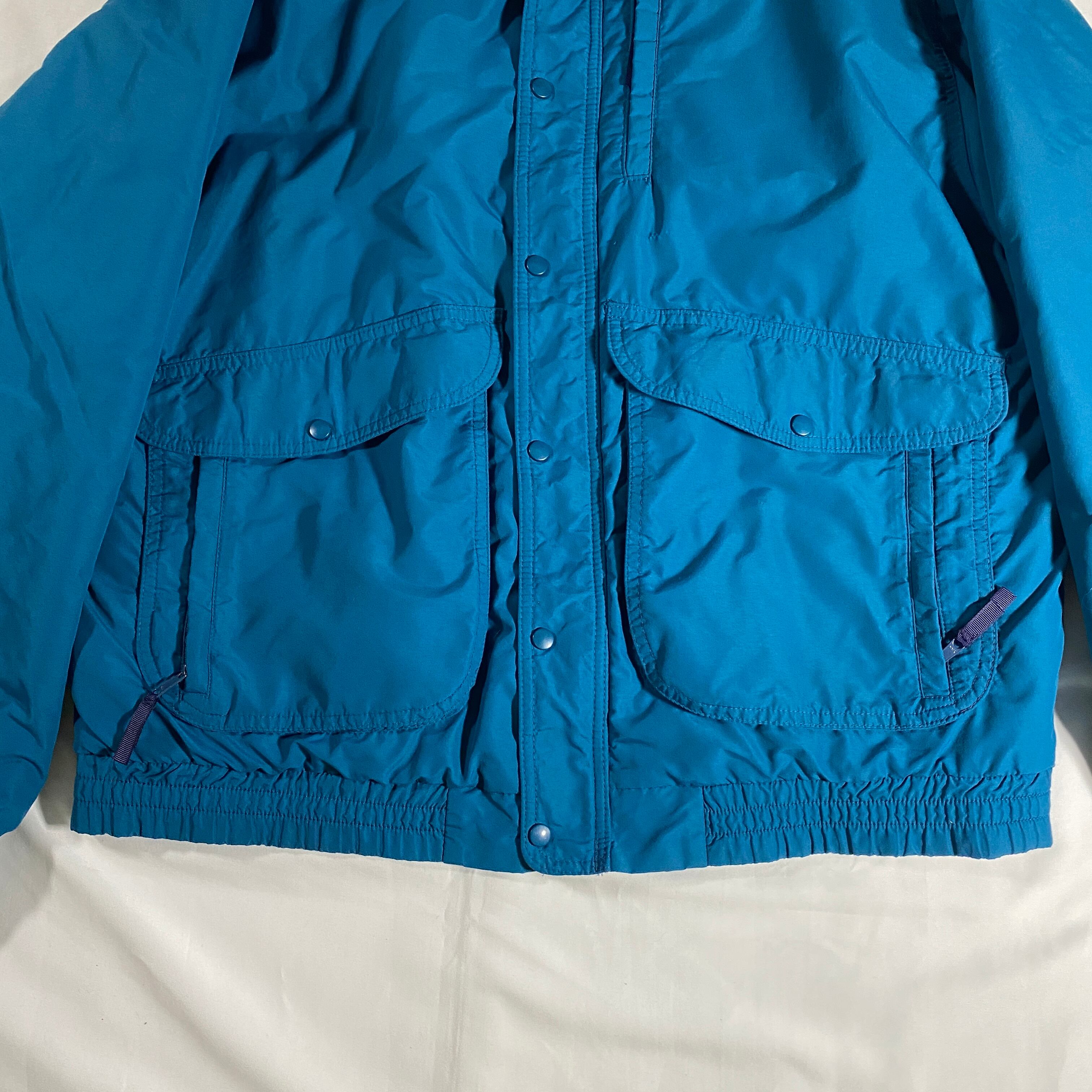 1990年代初頭、アメリカ製時代のL.L.Beanによるナイロンアクティブジャケット。アウトドア黎明期を象徴するような発色の良いターコイズブルーが印象的で、軽量ながら中綿入りで保温性も高い実用的な一着。シンプルながらも首元までしっかり覆う高めのスタンドカラーや、丁寧なステッチワークなど、当時のL.L.Beanらしい堅実な作りが魅力。都会的なナイロンシェルにクラシックな機能美が共存する、まさに“MADE IN U.S.A.”クオリティを感じさせるアウターです。