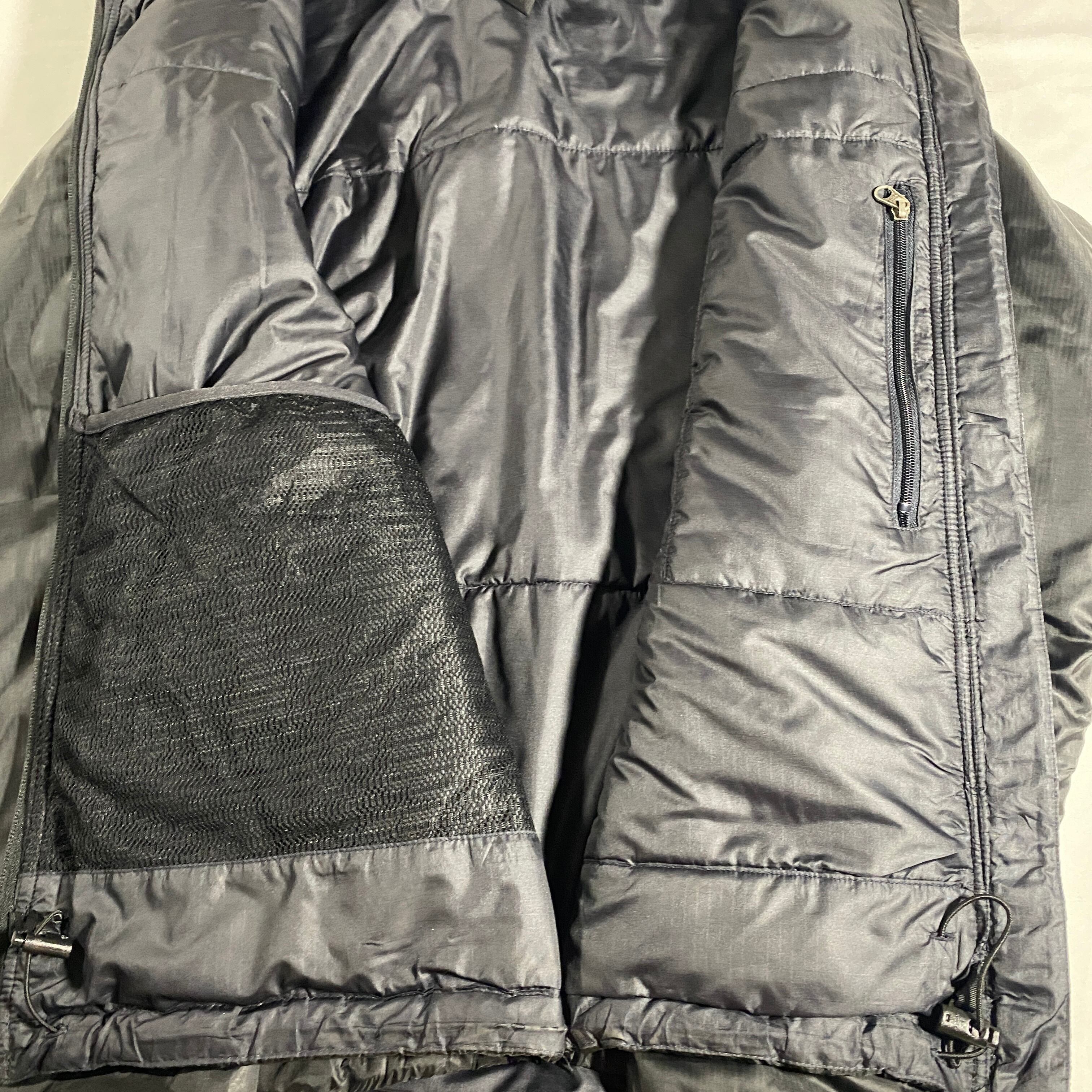 ファスナー交換済、各パーツとフードのドローコード交換済み。ポケットの袋布を用いリペアカ所に移植。生地のハリと光沢はしっかりと残っており、着用に支障はなし。中綿のロフトも十分で、全体的に良好なコンディションを保っています。