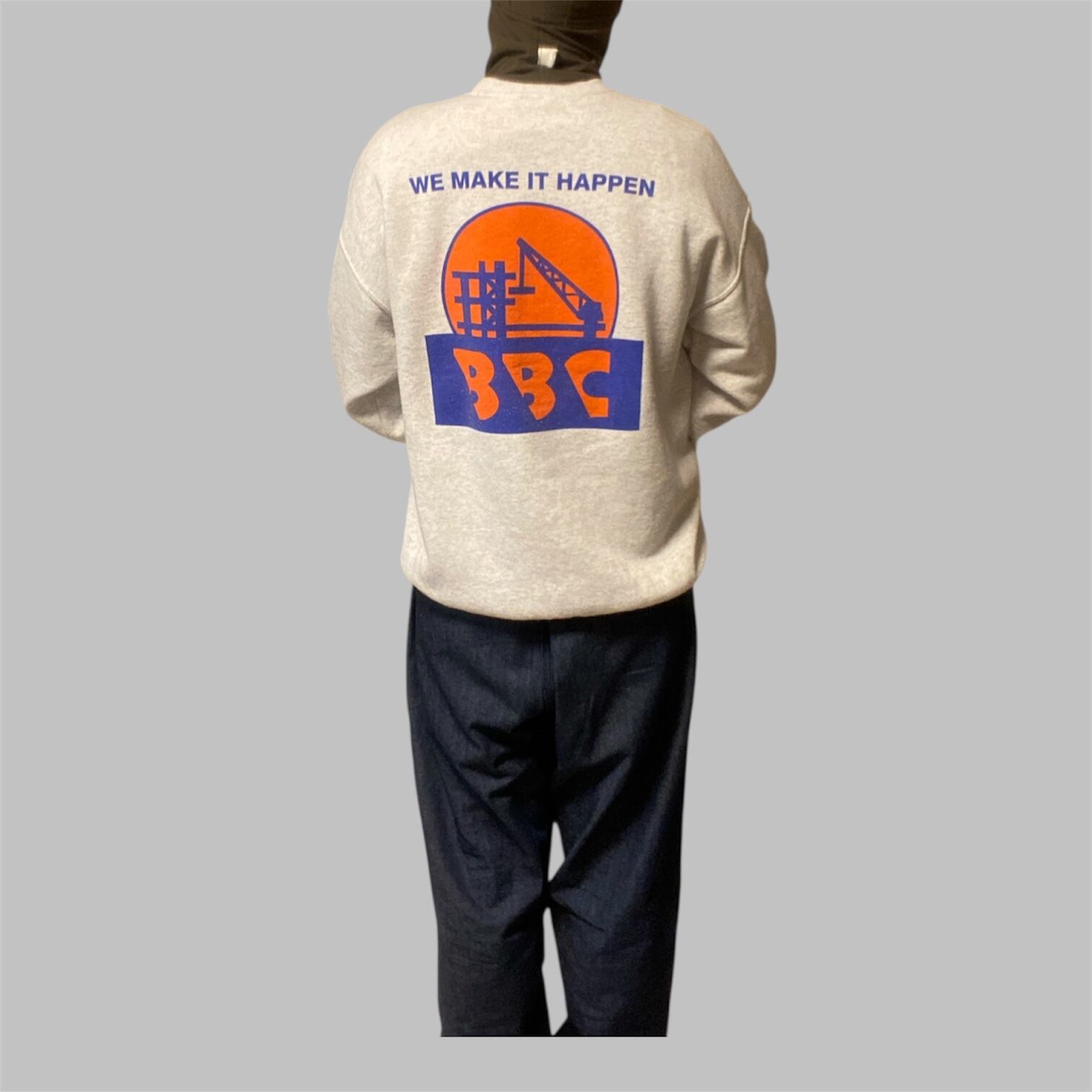2000年代中期のLeeボディを使用した企業プロモーションスウェット。コットン×ポリエステルのライトウェイト生地は柔らかく、アメリカの作業服らしい“ラフさ”を程よく残しつつ、現代のデイリーウェアとしても非常に着やすい質感。背面には「WE MAKE IT HAPPEN」と掲げたビル建設企業BBC(Brown Building Corp)のグラフィック。建築クレーンのアイコンとオレンジ×ブルーの配色は90s〜00sワークウェア特有のポップさがあり、袖には星条旗、そして「GIT-R-DONE(=やりきれ!のスラング)」入りでストーリー性も満載。着るだけでアメリカの“働く服”の空気をまとえる一枚で、ゆるめボトムと合わせれば今のストリートにも自然にハマります。