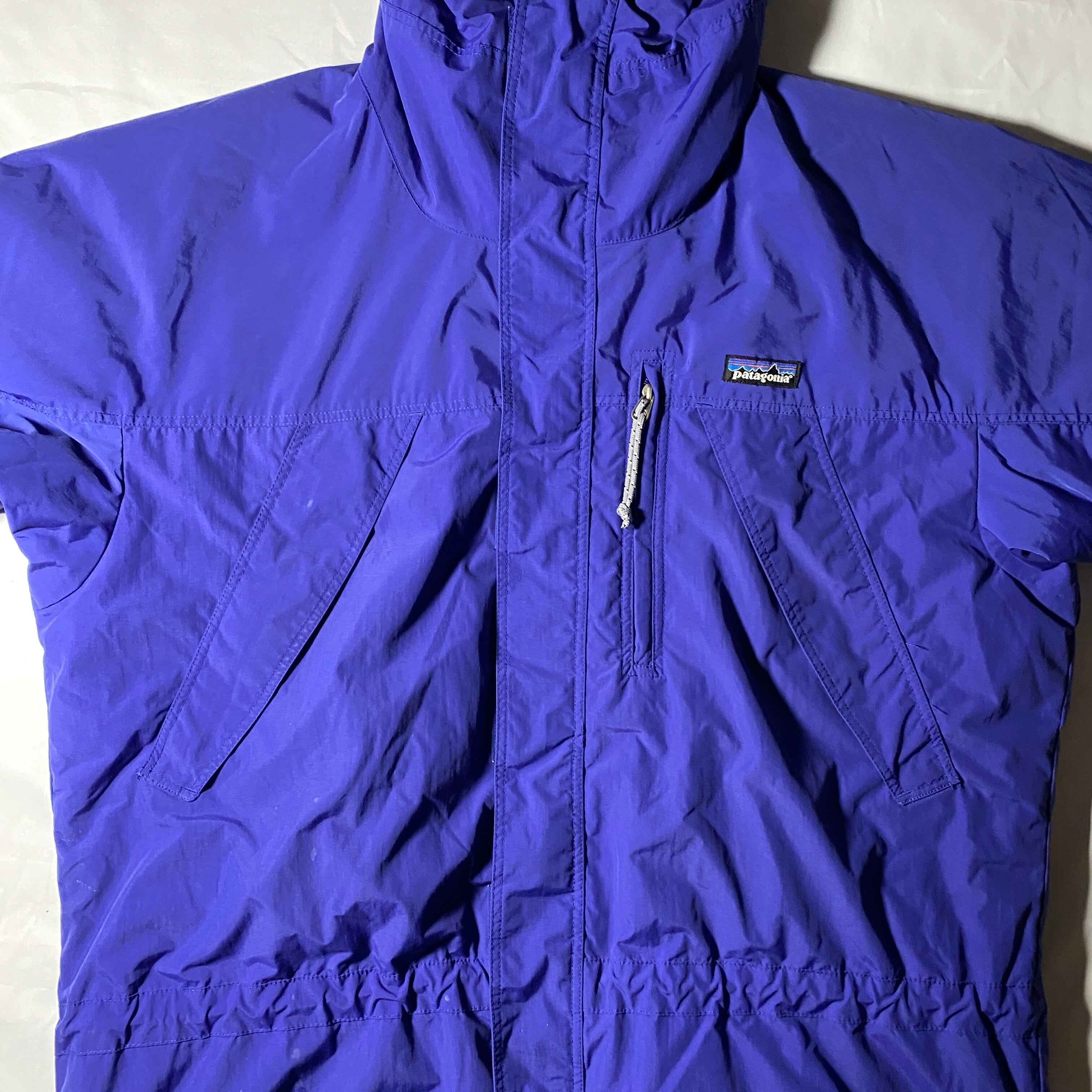 パタゴニアの名アウターの中でも、往年のファンに根強い人気を誇る初期インファーノ。97年製の本作は、ブルーですが目を引くパープルライクなシェルにブラックフリースライナーを合わせたクラシック配色で、当時のアウトドアカルチャーを色濃く感じられる一着です。ストームジャケットの切り返しに胸ポケットをデザインとして強調しており一般的に認知されているデザインとは違う初期型がポイント。同様に保温性に優れた肉厚フリースと、風をしっかり遮るナイロンシェルの組み合わせは、冬場のデイリーユースでも安心感抜群。街でも山でも頼れる“パタゴニアらしさ”が詰まったモデルで、この時代ならではの丸みあるシルエットもポイント。現行では手に入らないヴィンテージ魅力を、寒い季節の相棒としてぜひ。