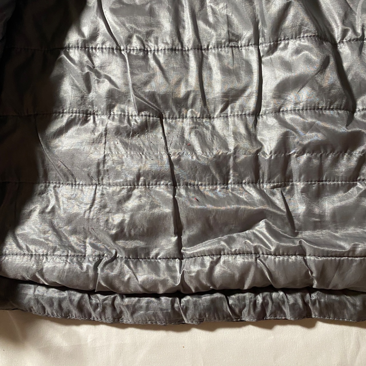 全体的に軽い着用感のみで、中綿のボリュームもきれいに残った良好なコンディションです。目立つ汚れやダメージは見当たらず、ジッパーの動きもスムーズです。