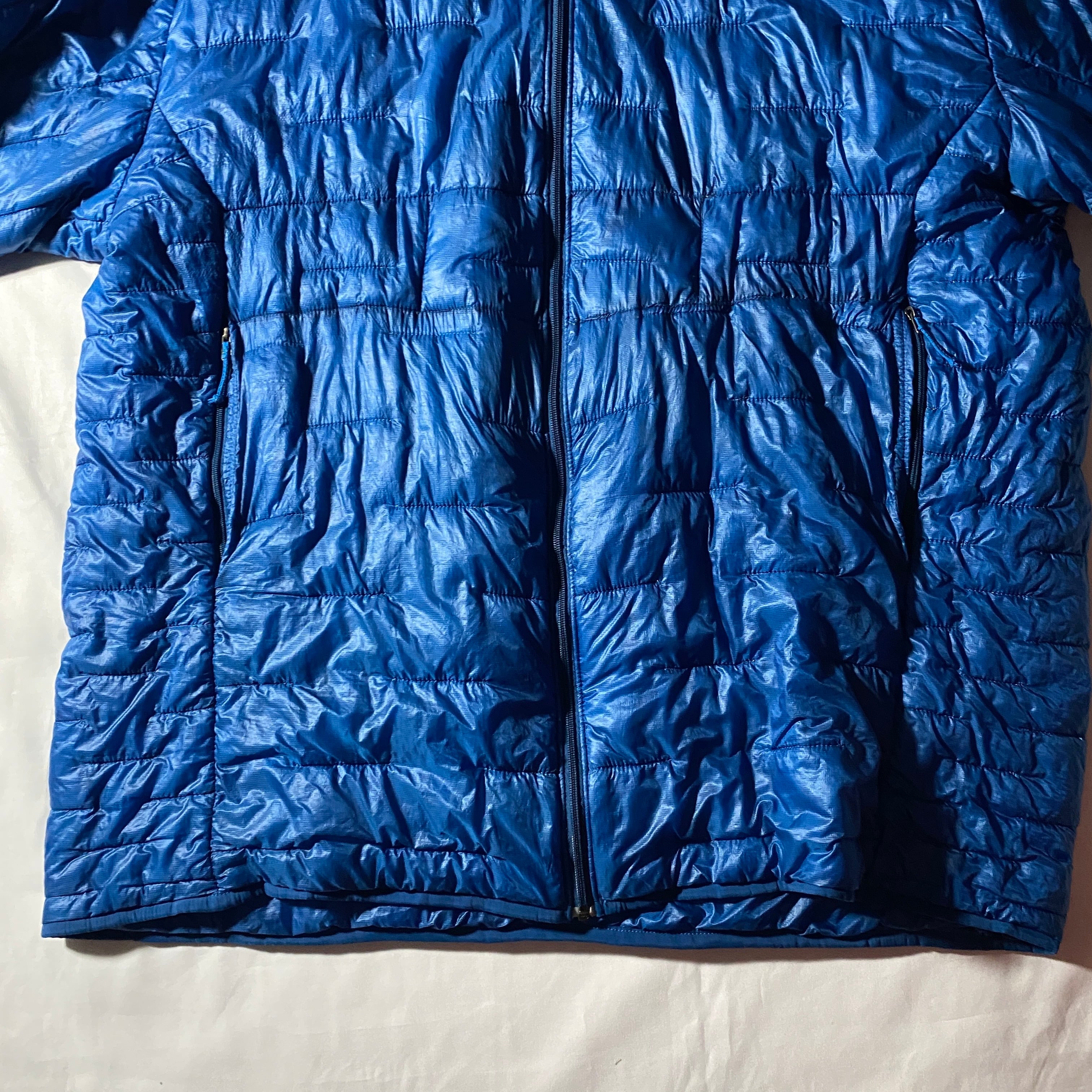軽量ながら優れた保温性を誇るナノパフフーディ。中綿にはプリマロフトを採用し、驚くほどの軽さと暖かさを両立した名作です。街でもアウトドアでも頼れる万能アウターで、特にXXLという希少サイズは動きやすさとレイヤードの幅が広がる魅力的なポイント。鮮やかなブルーは冬のスタイルを軽やかに彩り、着るだけでテンションの上がる一着です。