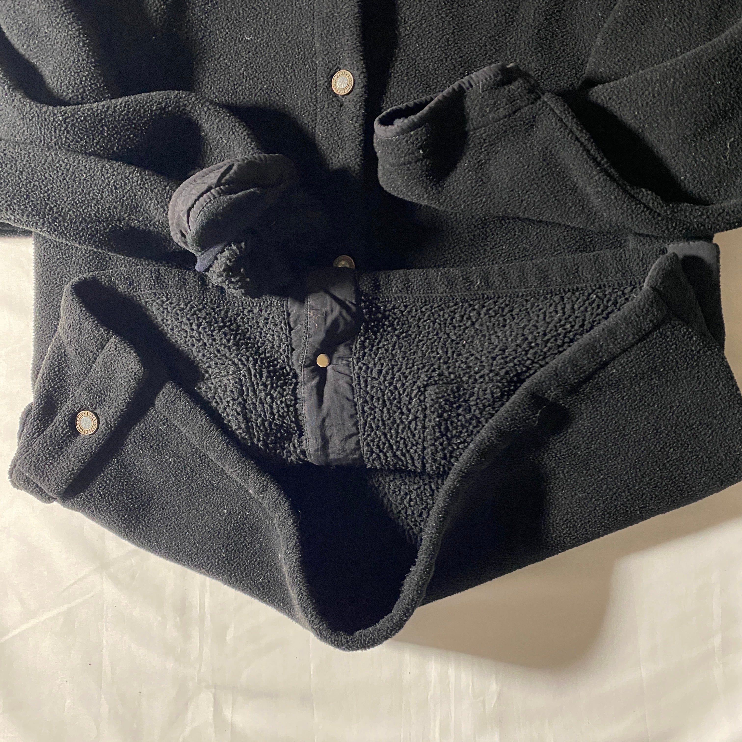 全体的に目立つ汚れやダメージはなく、コンディションの良い一着です。フリース特有の軽微な毛羽立ちと、タグ縁にわずかなほつれが見られますが、着用に支障のある箇所はありません。スナップボタンや生地のヘタリも少なく、良好な状態を保っています。