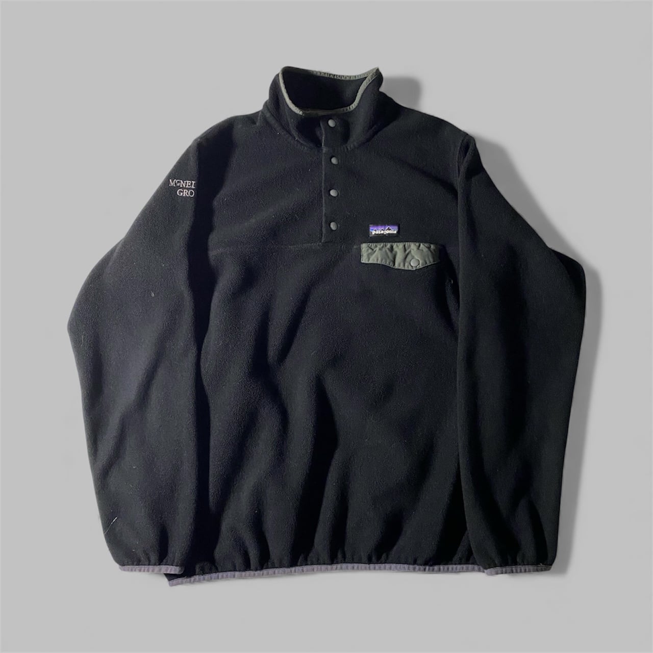 2016年製のシンチラ・スナップTは、完成度の高い定番ディテールと現代的なシルエットが共存する完成形。軽量で保温性に優れたシンチラフリースは街着からアウトドアまで幅広く対応し、スナップT特有の脱ぎ着しやすさも健在です。本個体は左袖の刺繍により、ワークウェアや企業物ヴィンテージに通じる文脈を持ち、無地とは一線を画す表情に。定番でありながら一点物として楽しめる、通好みのスナップTです。