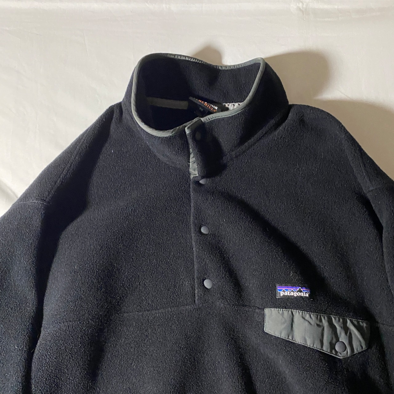 2017年製、ニカラグア製のPatagoniaシンチラ・スナップT。定番フリース「Synchilla」は軽量性と保温性のバランスに優れ、タウンユースからアウトドアまで幅広く対応する名作素材です。ブラック単色にグレーのパイピング、控えめなチェストポケットが映えるミニマルなデザイン。XXLサイズならではの余白があり、インナー使いから主役まで柔軟に活躍します。流行に左右されない完成度の高さで、長く付き合える一着です。