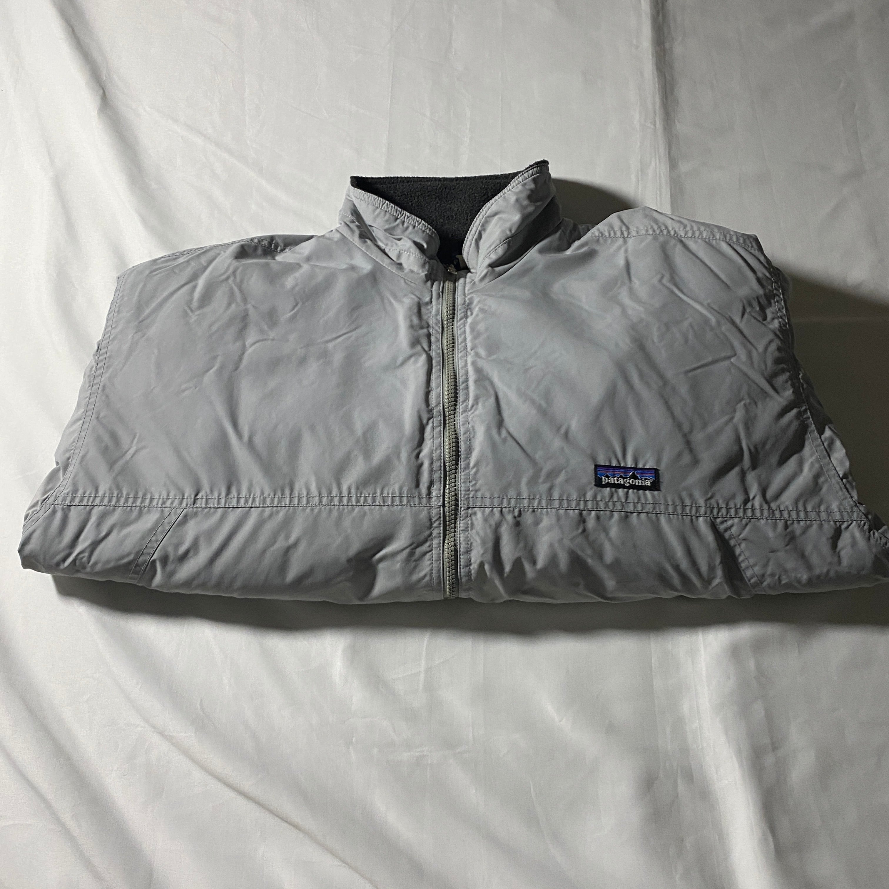 パタゴニア定番シェルドシンチラジャケット。防風性の高いナイロンシェルに、内側はシンチラフリースを全面ライニングした名作モデルで、街着からアウトドアまで幅広く活躍します。短丈で丸みのあるシルエットは90sパタゴニアらしさが色濃く、現行にはないバランス感が魅力。グレー×ブラックフリースの落ち着いた配色で、機能性とヴィンテージらしい存在感を両立した一着です。