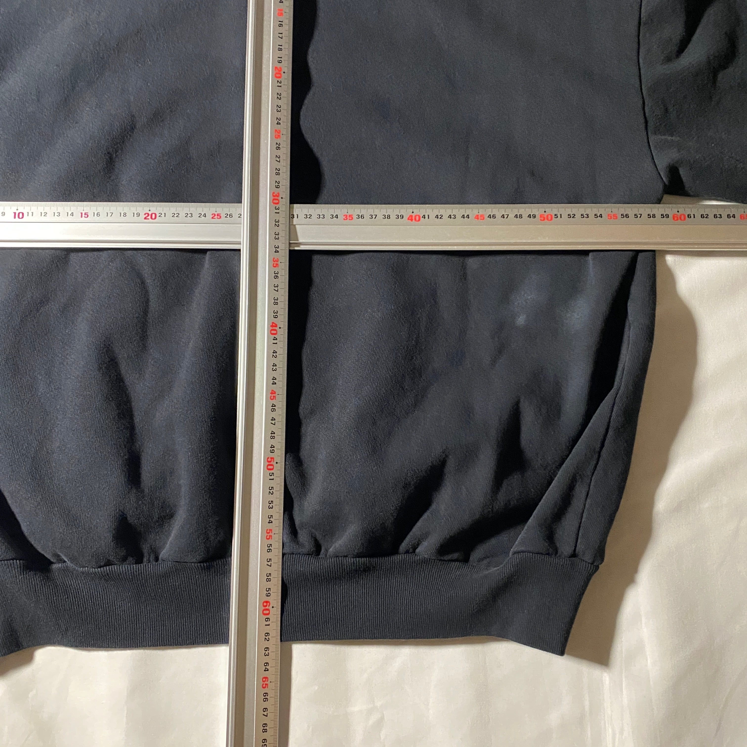 保管時に生じたごく軽微なシワが一部に見られますが、生地の潰れや毛羽立ちはなく、フリースの起毛感もしっかり保たれています。縫製・リブ・フード周りも良好で、未着用品として問題なく着用可能な状態です。