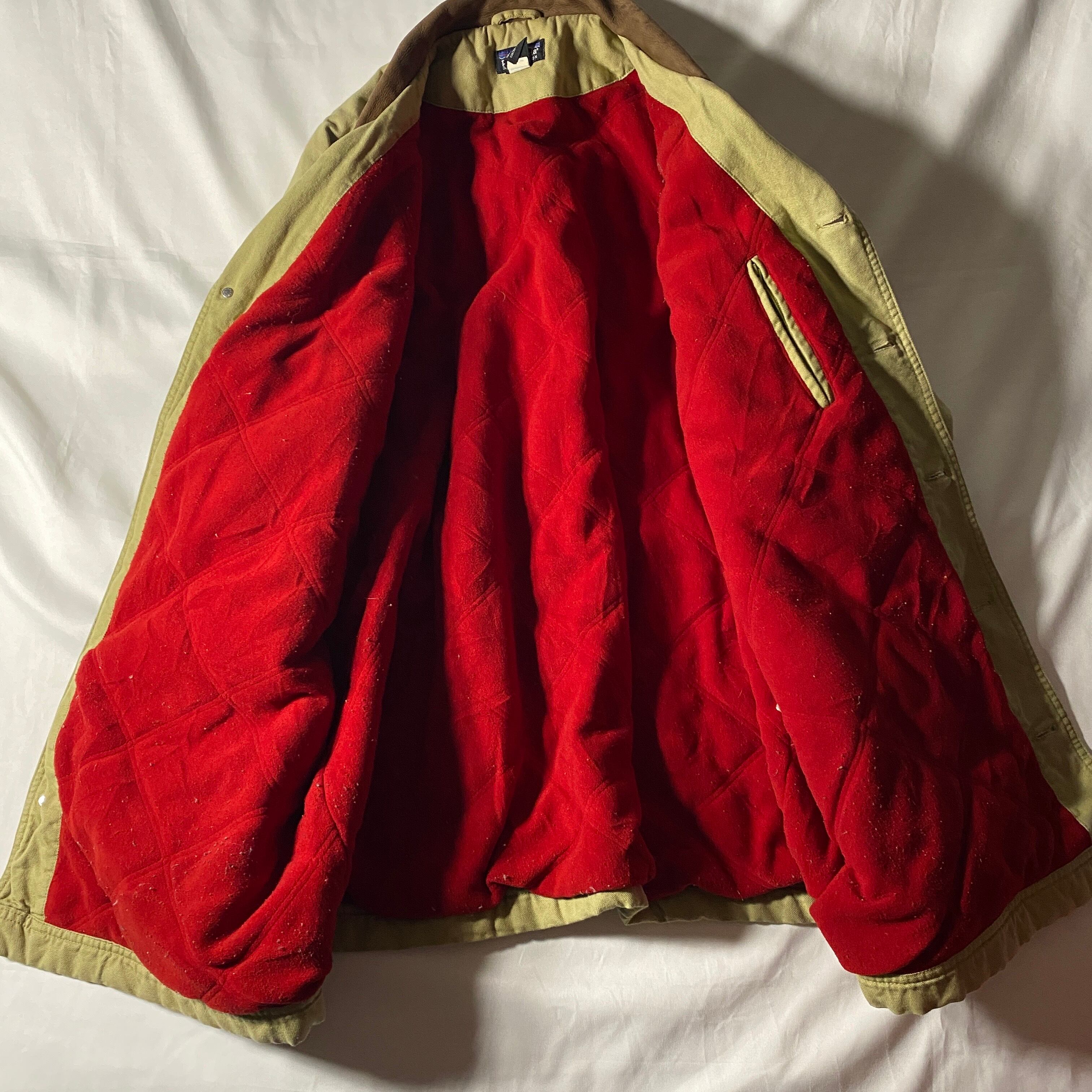 90年代後半に展開されたヌエボレンジコートは、パタゴニアが提案したアウトドアとワークウェアの融合を体現したモデル。オーガニックコットンキャンバスの堅牢な外装に、裏地はレッドのフリース仕様で防寒性も確保されています。ハンティングやフィールドジャケットの文脈を感じさせる4ポケット構成と、無骨すぎないベージュカラーが街着としても非常に優秀。機能と思想が同居した、90sパタゴニアらしい実直な一着です。