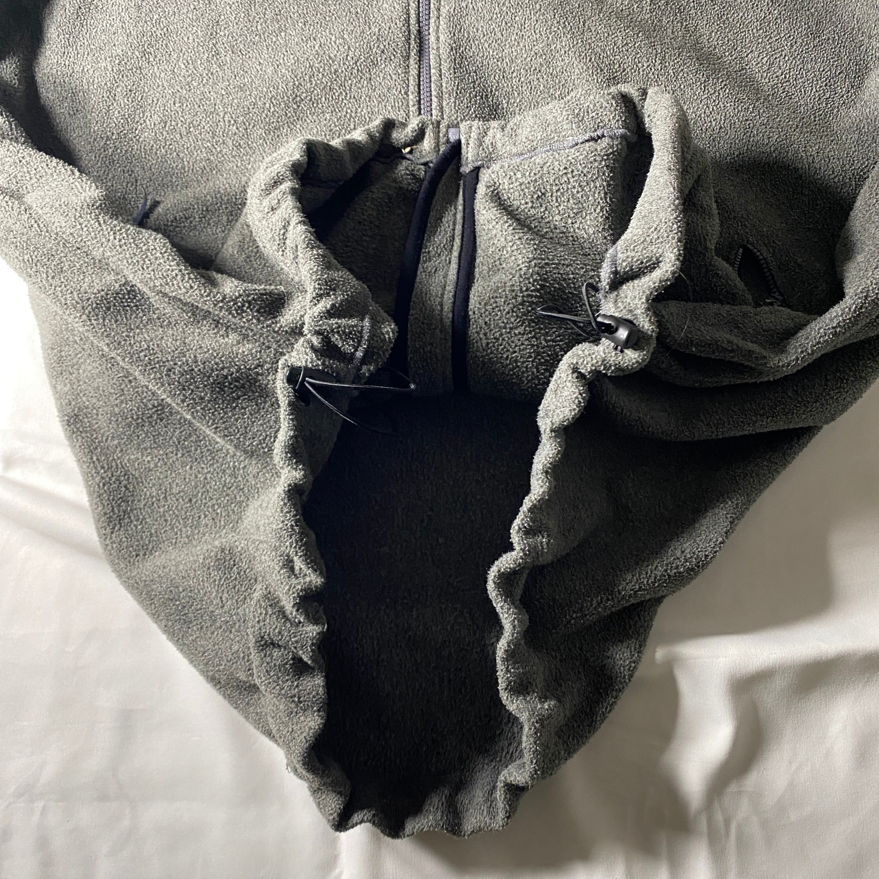 2000年代のBerghausらしい無骨なフルジップフリース。タグ表記からインドネシア製、当時のアウトドア量産期らしい実用重視の設計が特徴です。毛足を抑えたポリエステルフリースは防寒と通気のバランスが良く、街着だけでなく作業やキャンプなどラフなシーンでも気兼ねなく使える一枚。ビッグサイズならではのルーズなシルエットで、ミリタリーパンツや太めのカーゴとも好相性。多少のクセも含めて“使い倒す前提”で楽しめる、道具感のあるBerghausです。