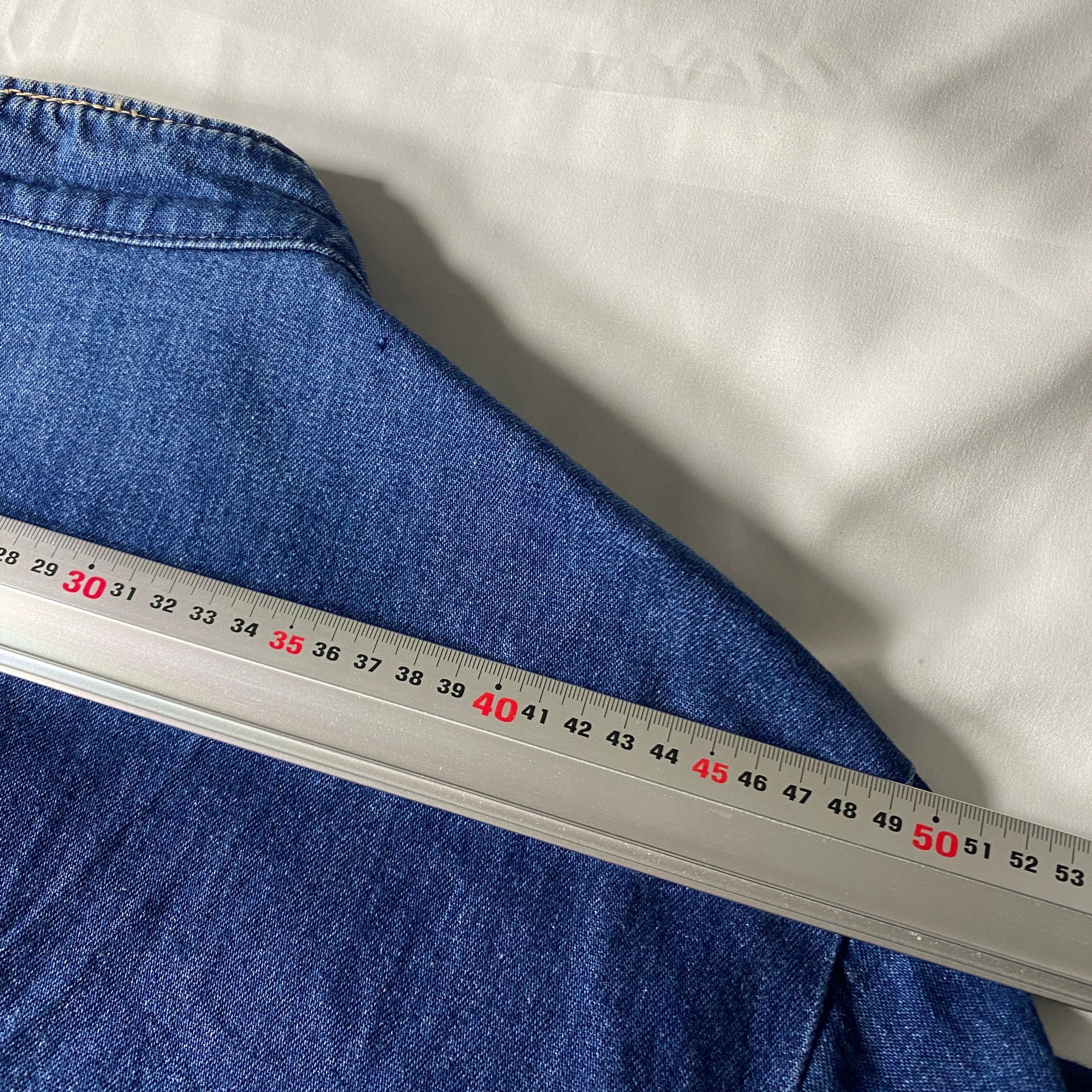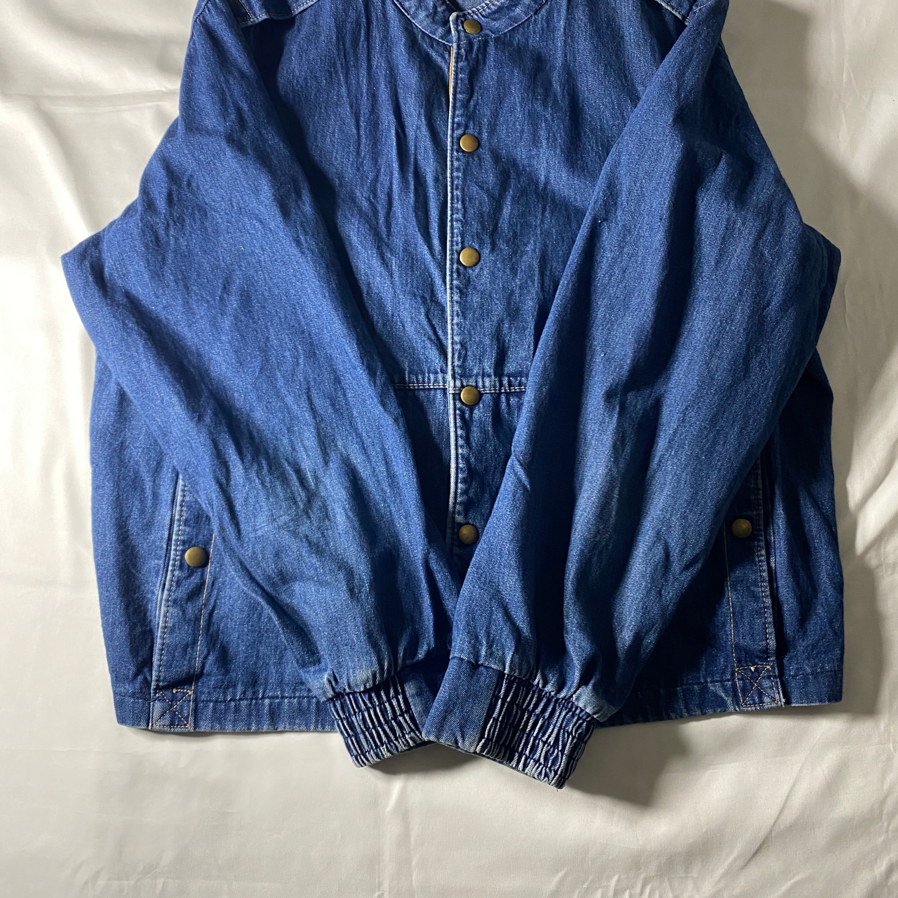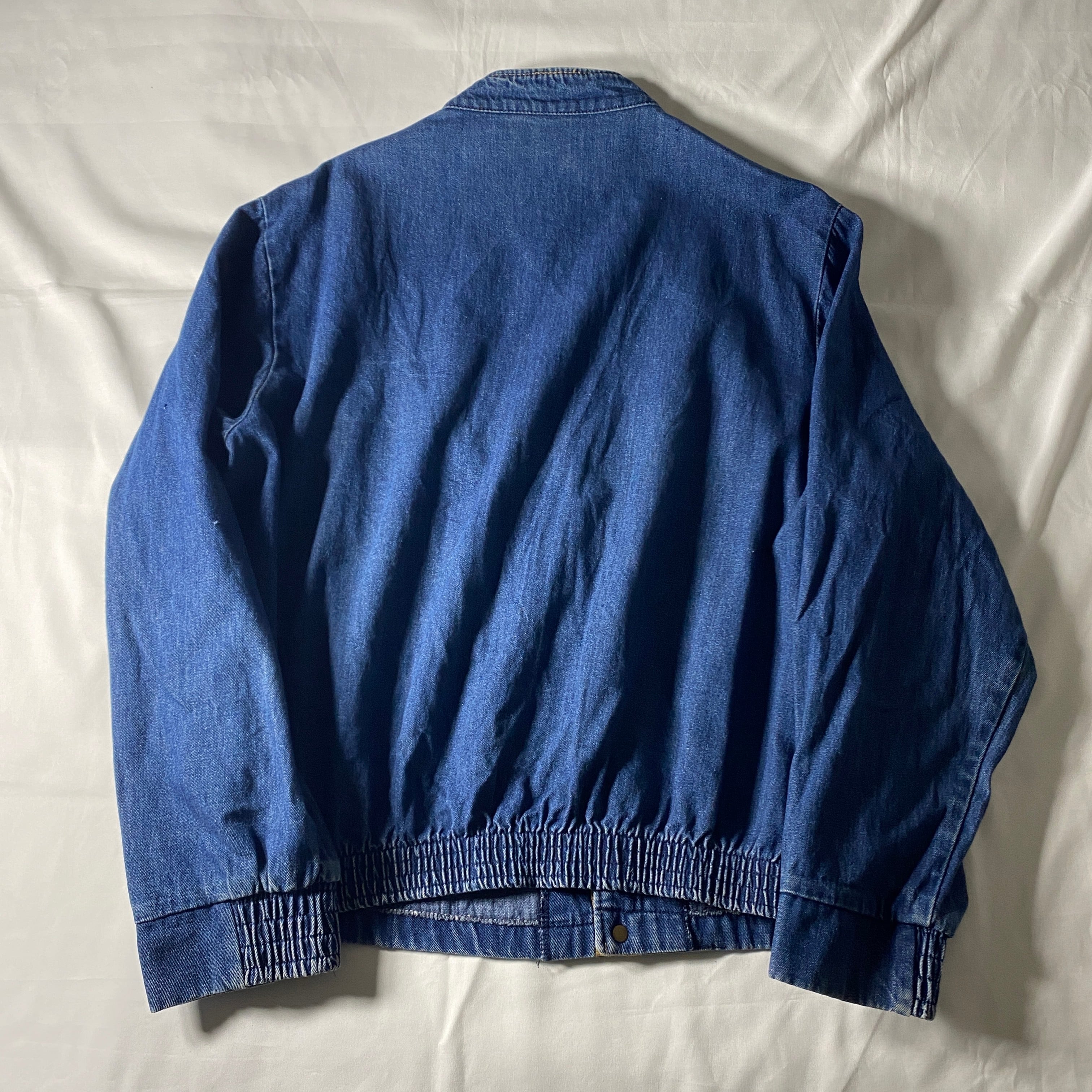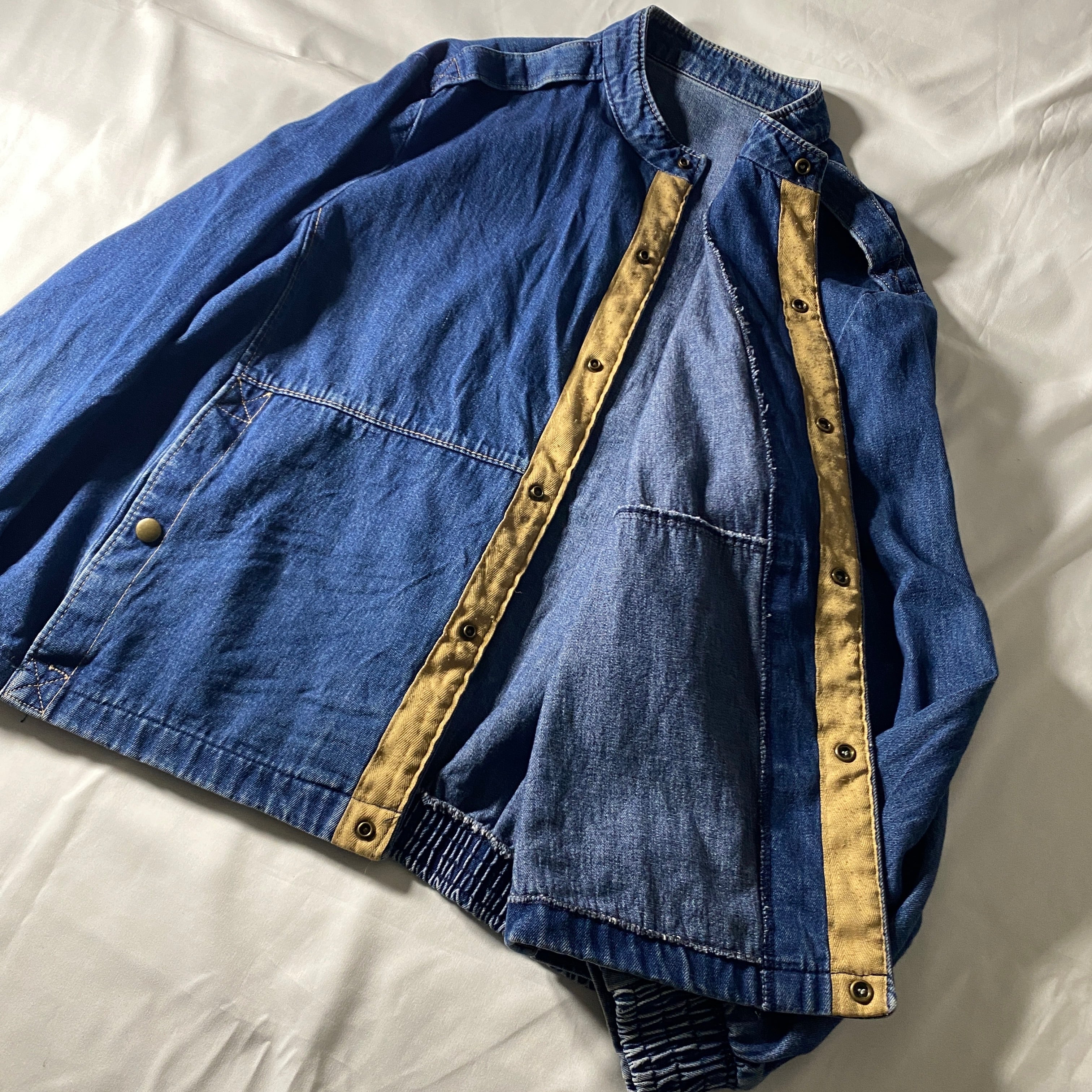 Leeの中でもやや珍しいノーカラーデザインのデニムブルゾン。タグから90年代頃のプロダクトと見られ、MADE IN USA期の空気感をしっかり残した一着です。シャツとジャケットの中間ほどの軽めのデニムを使用しており、Gジャンほど重くならず、カバーオールほどワークに寄りすぎない絶妙な立ち位置。首元をすっきり見せるノーカラー仕様はインナーを選ばず、スウェット、パーカー、モックネックまで幅広く対応します。羽織りとしてもレイヤリングの中間着としても使いやすく、気付くと出番が増えるタイプの実用派デニムです。