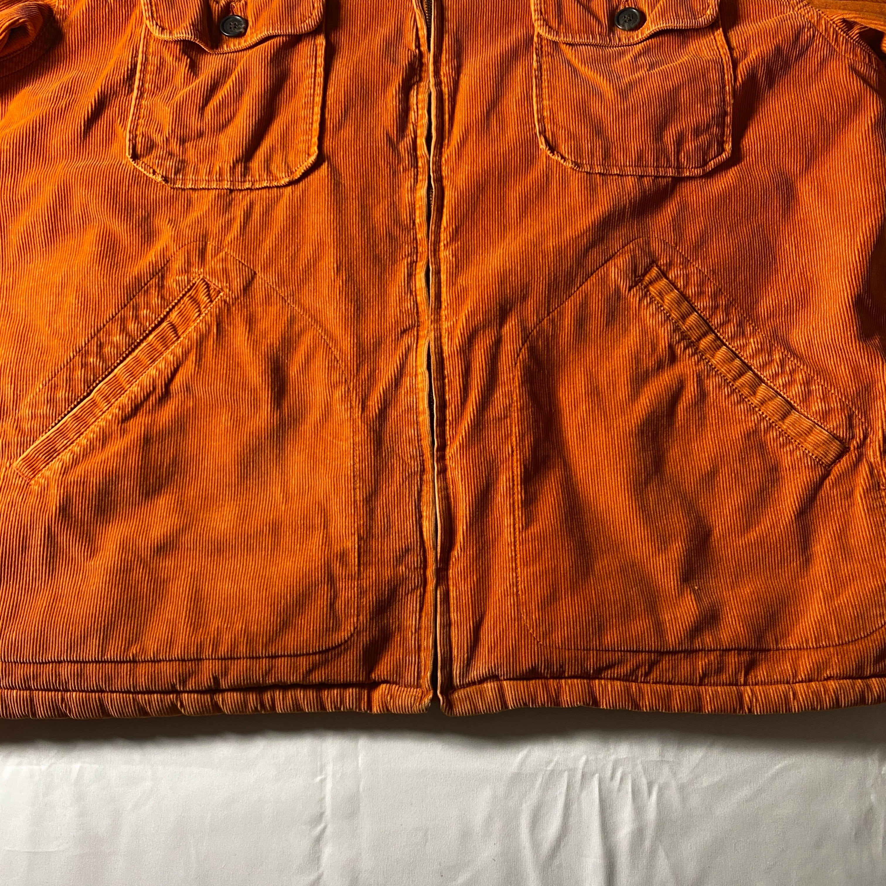 太畝コーデュロイと発色の良いオレンジが目を引く、90年代J.CREWらしい存在感のあるブルゾン。裏地はボア仕様で保温性があり、ワークやアウトドア由来の無骨さと、J.CREWらしい上品さを併せ持った一着です。カマ底がゆったり作られているのでレイヤードしやすいため使いやすいのも特徴。デニムやチノとの相性は言わずもがな、色味で遊びたい方にこそおすすめしたい、時代を超えて楽しめるクラシックピースです。