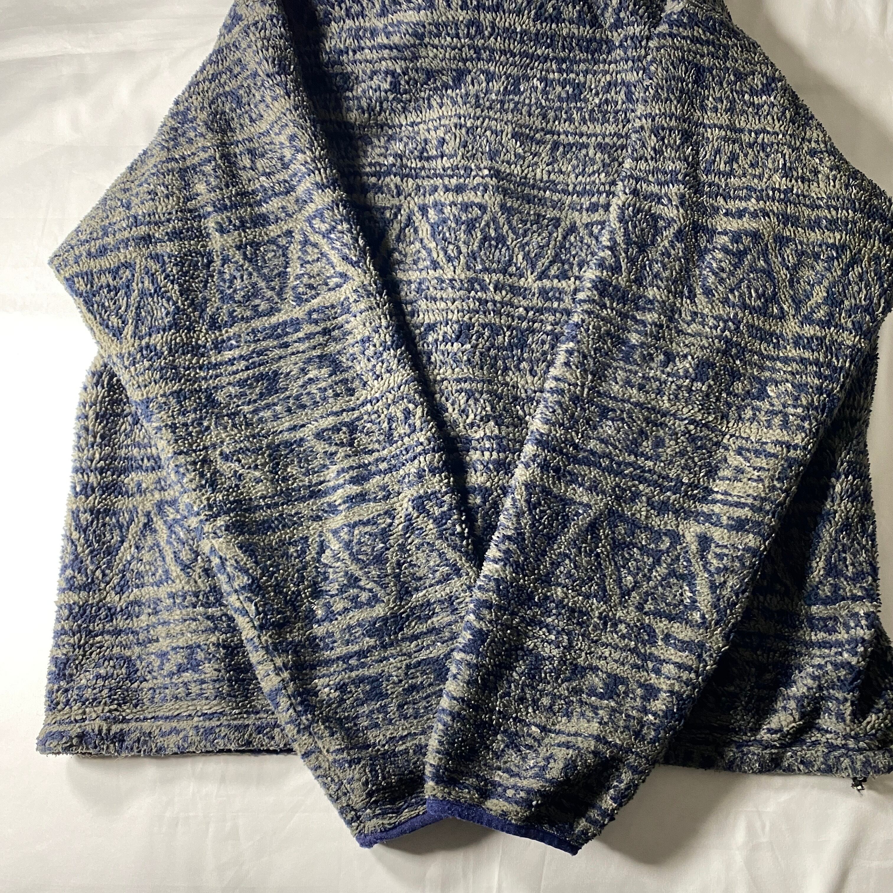 90年代パタゴニアを象徴する名作グリセードジャケットの96年製。片面は防風性の高いナイロン、もう片面は総柄フリースという当時としては革新的なリバーシブル構造で、サラサ柄は自然や民族文様を思わせる幾何学パターンが特徴。近年は世界的に若い世代を中心に再評価が進み、特に柄入りフリースのXLは市場でも枯渇状態。本個体はダメージを一点一点補完し、実用性とヴィンテージの風格を両立。90sアウトドアの空気感を、現代のワードローブでしっかり楽しめる一着です。