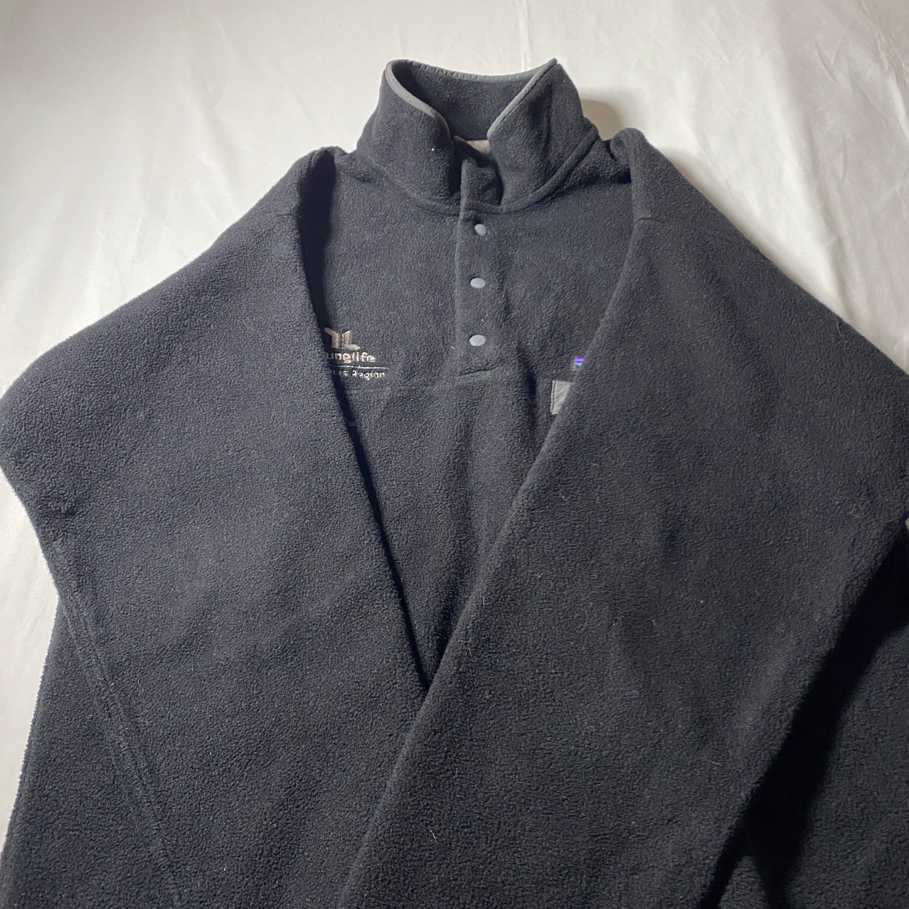 2016年製のPatagoniaシンチラ・スナップTは、定番モデルをベースに企業配給向けとして仕立てられた一着。引き締まったブラックカラーに刺繍ロゴが入ることで、アウトドア感を抑えたミニマルな表情に仕上がっています。保温性と軽さのバランスに優れ、デスクワークから移動時までストレスなく着用可能。いかにもなアウトドアを避けたい方や、古着でも都会的に着られるフリースを探している方にフィットする、実用性と雰囲気を兼ね備えたシンチラです。