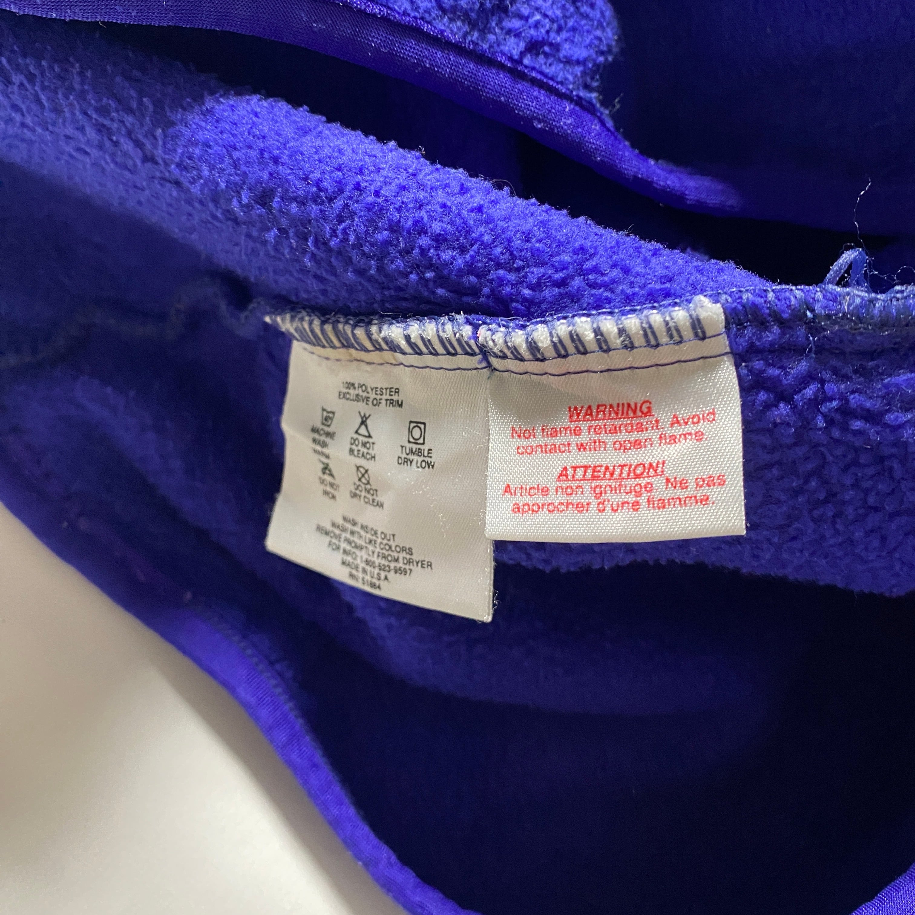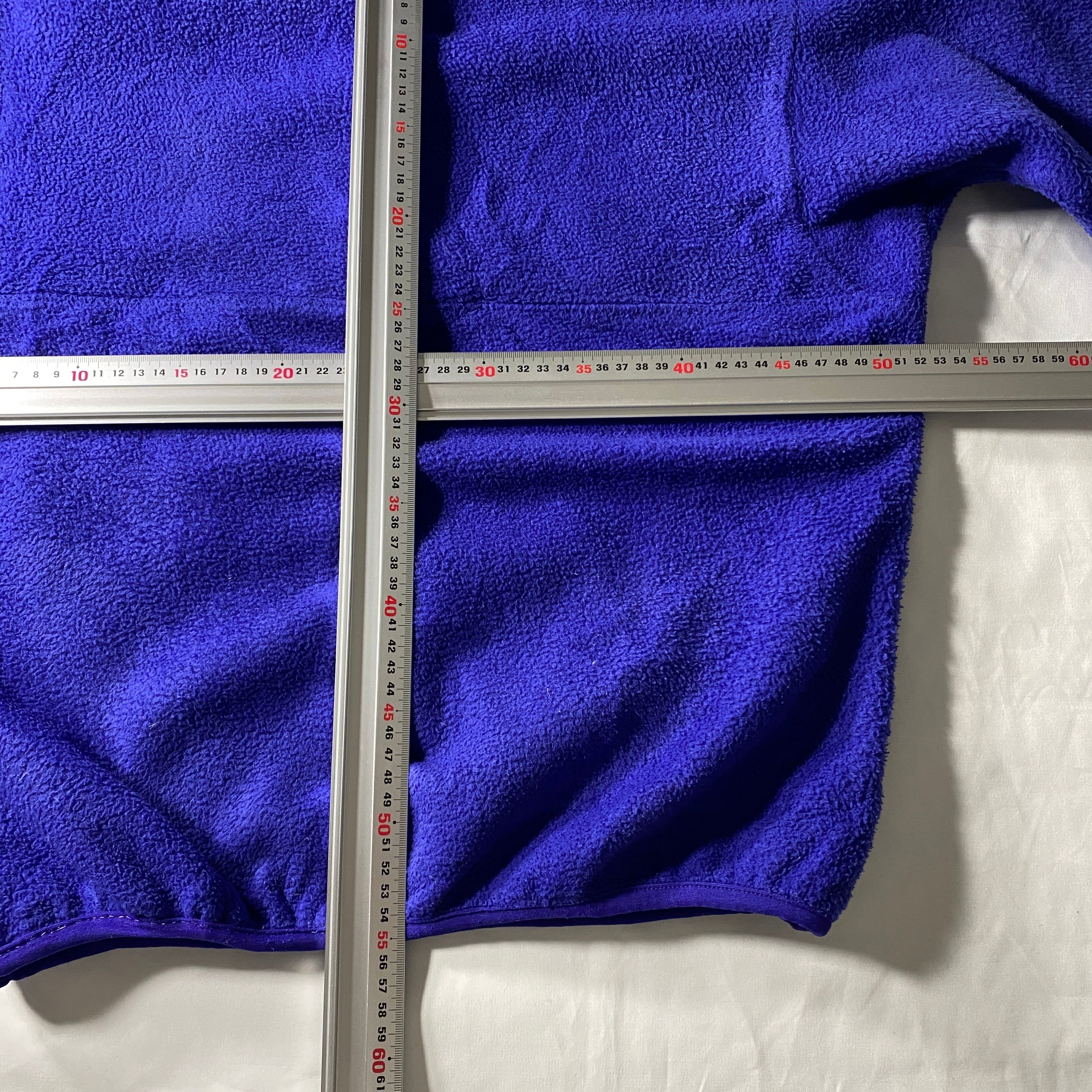 80年代Patagoniaを象徴する初期シンチラフリース。厚みのあるフリースと丸みのあるシルエットは、当時のアウトドアウェアがまだ「実用品」だった時代の名残を色濃く残します。ブルーパープルの発色にグリーンの前立てが映える配色は、この年代ならでは。刺繍ロゴが外されていることで主張は控えめになり、逆にスタイリングへの馴染みは抜群。ヴィンテージPatagoniaの文脈を理解した人にこそ刺さる、通好みの一着です。