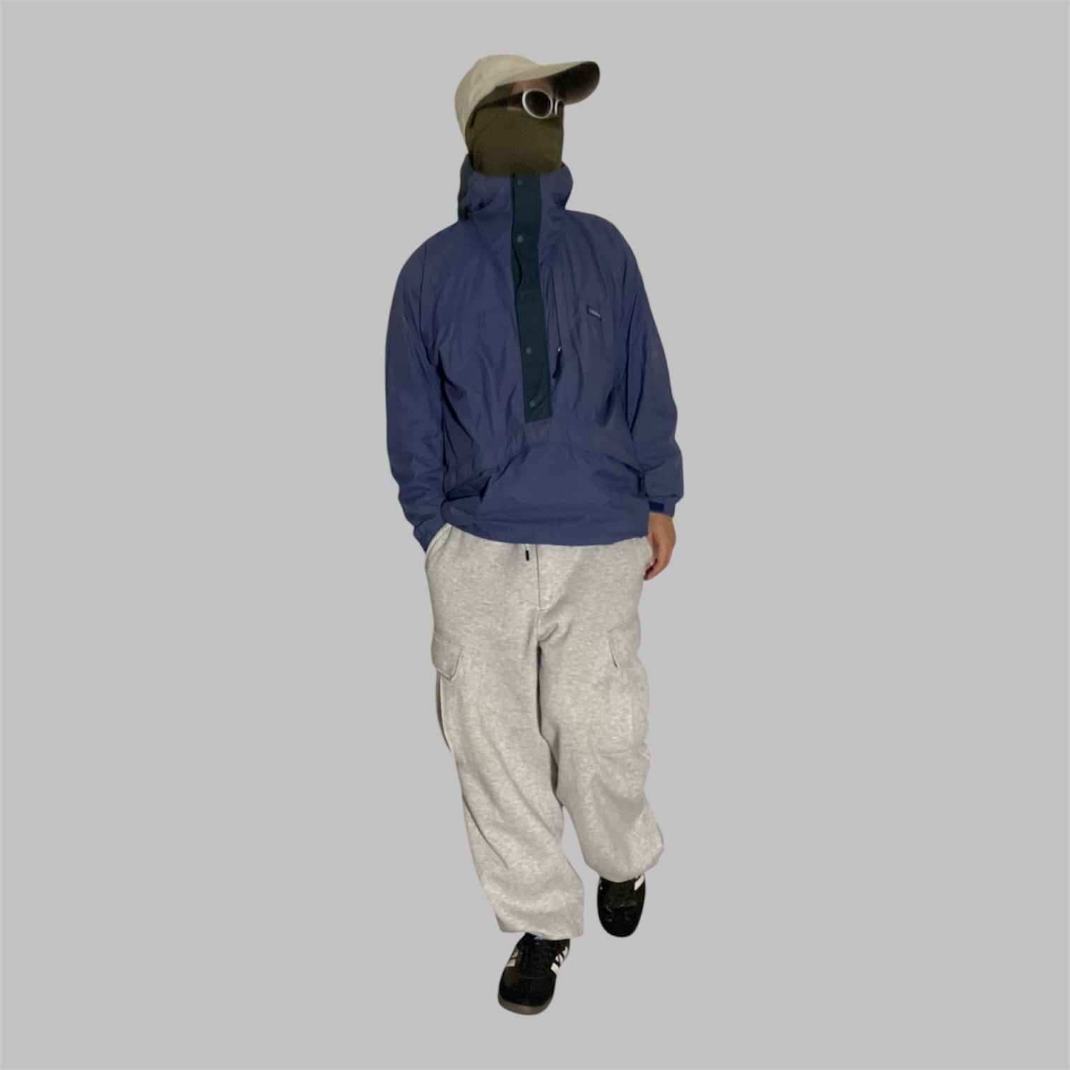 1996年製のPatagonia BackBowl Anorakは、90年代スノーライン由来の無骨なディテールと、アノラックならではのボリューム感が魅力の一着。元々は防水シェルとして設計されていますが、本個体は防水膜をあらかじめ除去することで、加水分解のリスクを回避し、軽いシェル兼ウインドアノラックとして再構築されています。ブルーグレーの発色は当時らしいアウトドア×ストリートの中間色で、レイヤード次第で街にも山にも振れる万能さがポイント。機能を削ぎ落とすことで“着られるヴィンテージ”に昇華した、分かる人にこそ刺さるPatagoniaです。