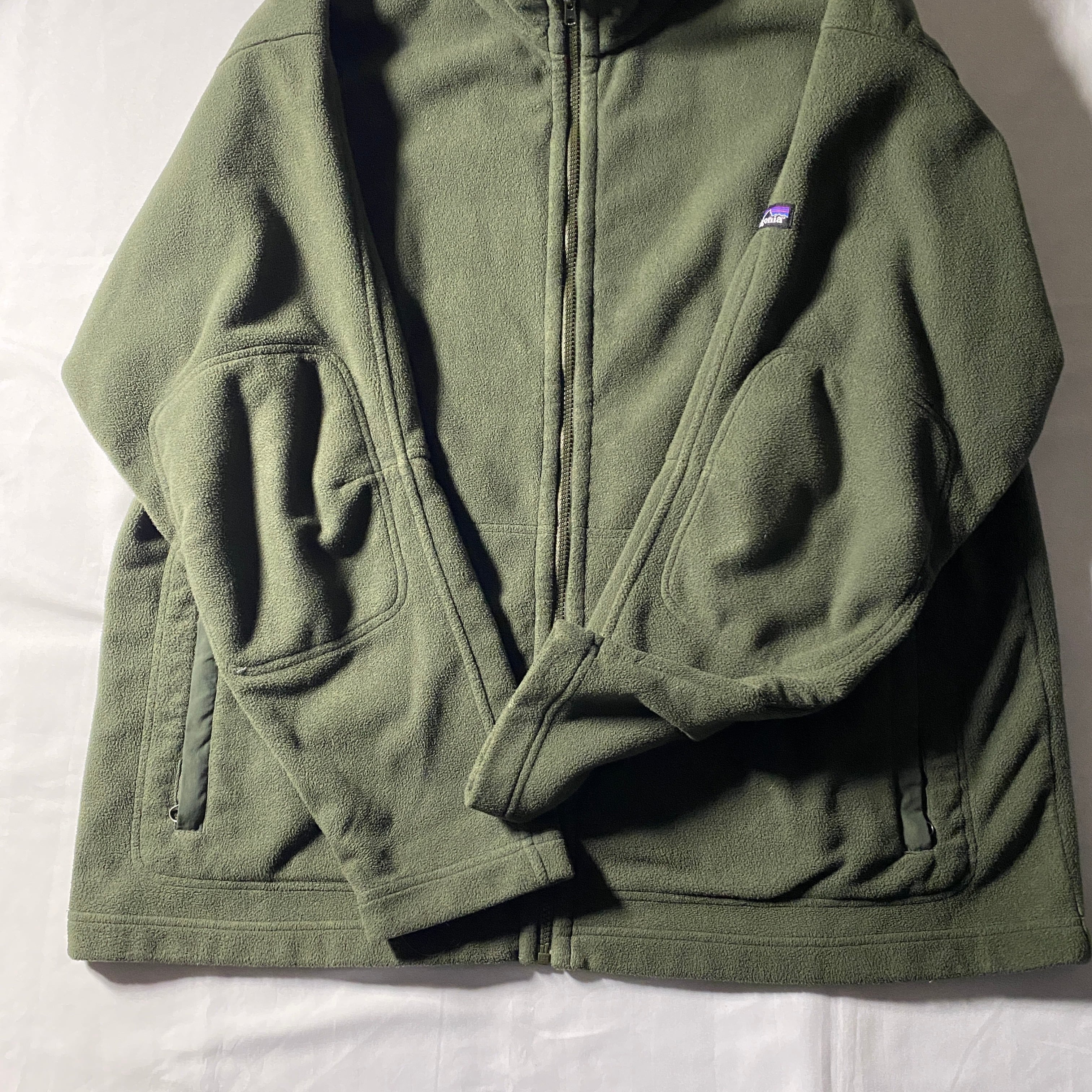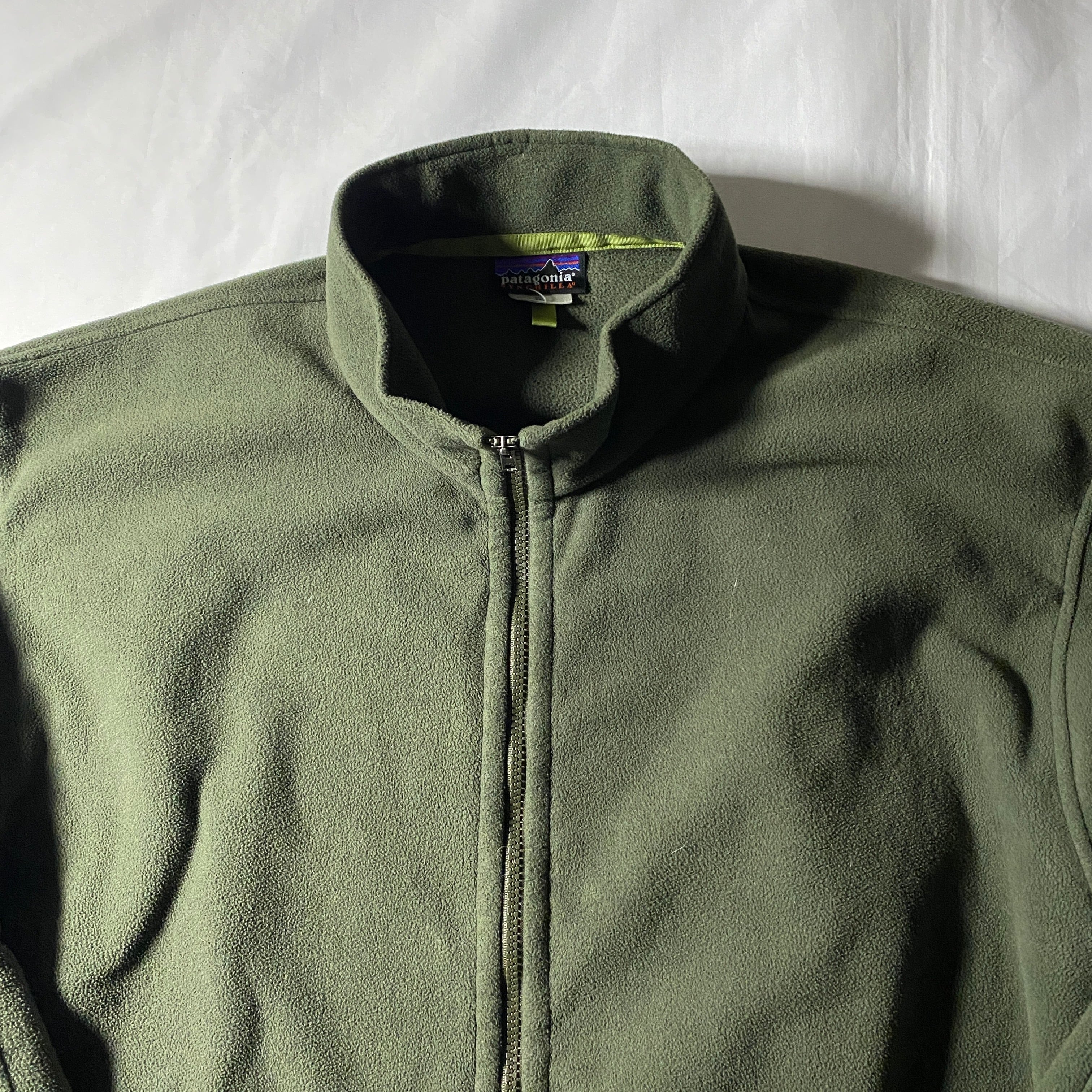 2008年製のMicro Synchilla Jacketは、当時のパタゴニアらしい機能美を凝縮した一着。MARSラインを思わせる無駄を削ぎ落としたデザインと、オリーブグリーンの単色構成がフィールドウェア由来の硬派な空気感を演出します。軽量ながら保温性に優れたフリースに、内側のメッシュ切替が蒸れを軽減し、行動中も快適。アウターとしてもミッドレイヤーとしても成立する完成度で、街でも山でも自然に溶け込む万能型。ギアとしての背景を知るほど、静かにテンションが上がるタイプの名作です。2XLなのでパーカーやネルシャツなどヘビーインナーの上にさらっと着るのもアリ。