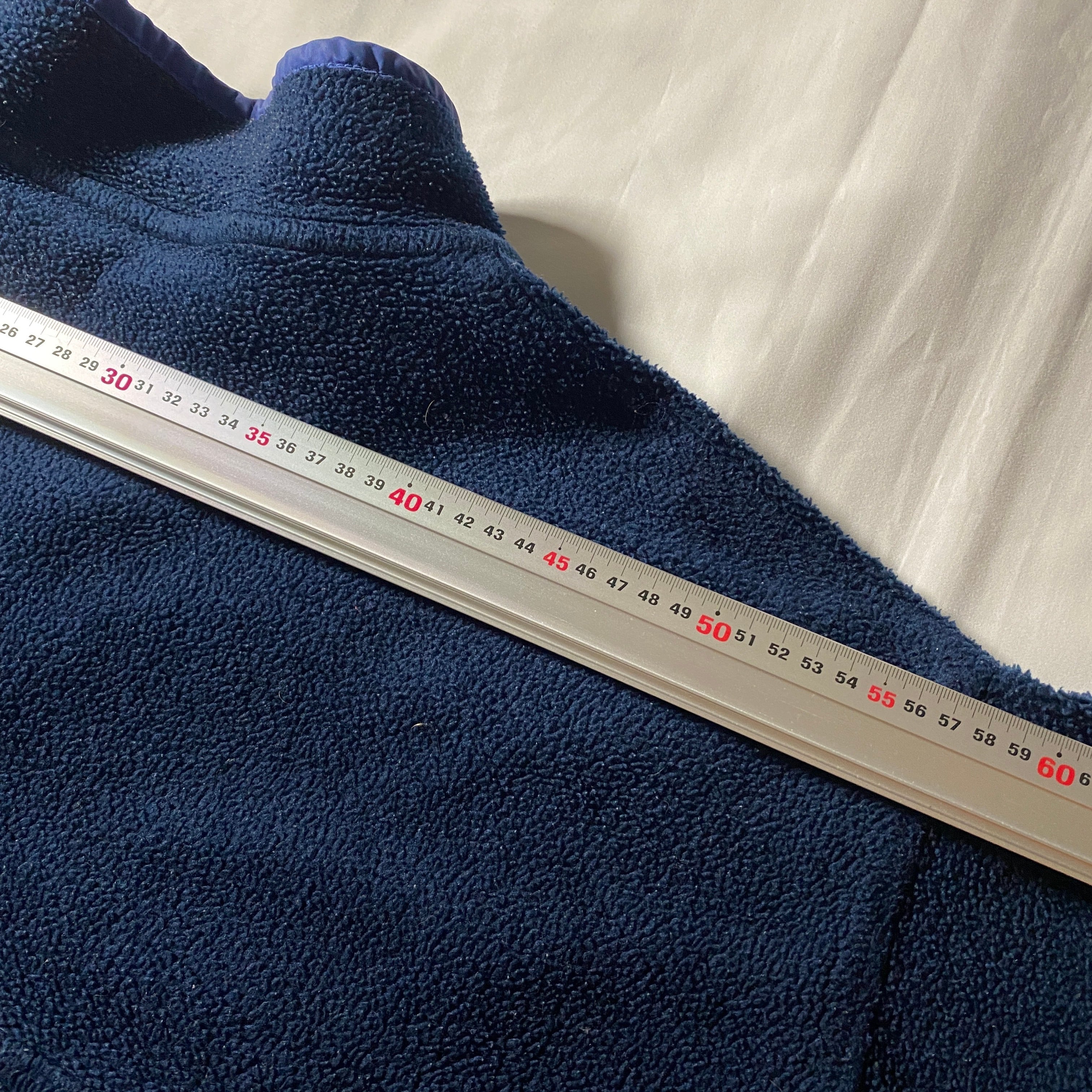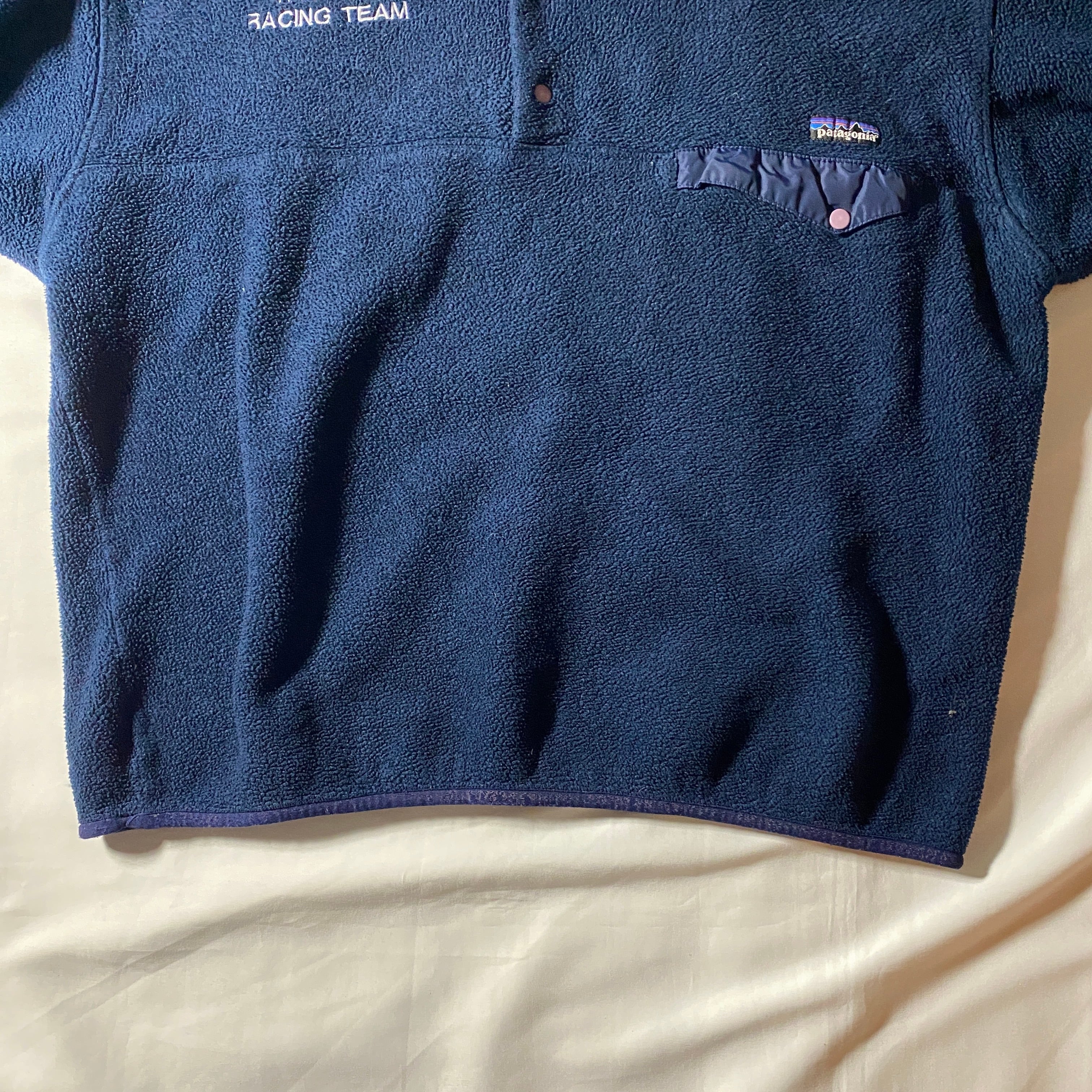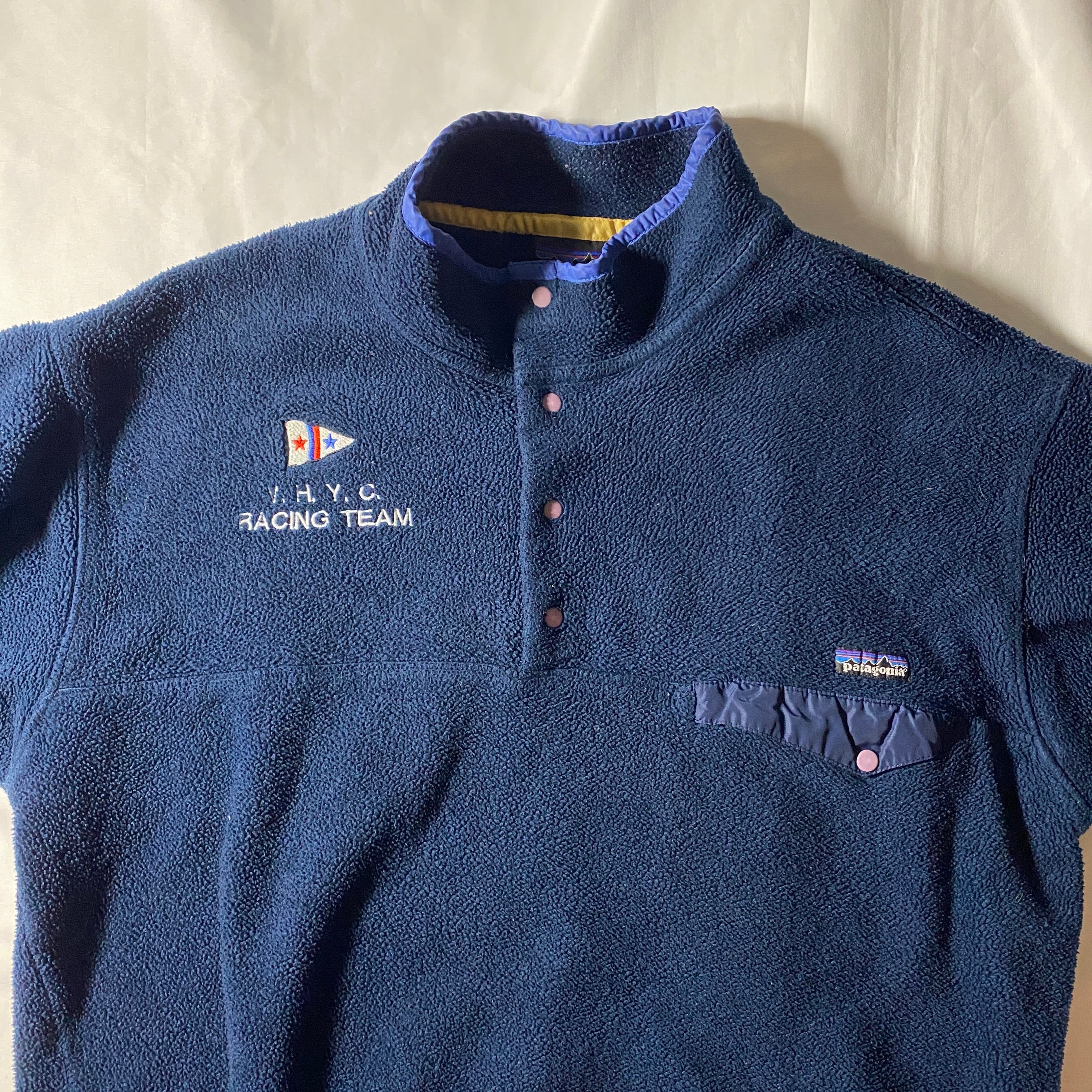 90年代Patagoniaシンチラ・スナップTの中でも、企業配給ならではの刺繍が入る希少個体。ボディは使い勝手の良いネイビーで、主張しすぎない企業ロゴが程よいアクセントになっています。ジャマイカ製らしい肉厚でタフなシンチラフリースは、日常使いにも耐える実用性と、90sらしい無骨さを両立。無地感覚で着られつつ、古着好きには刺さる背景を持つ、静かに通好みな一枚です。