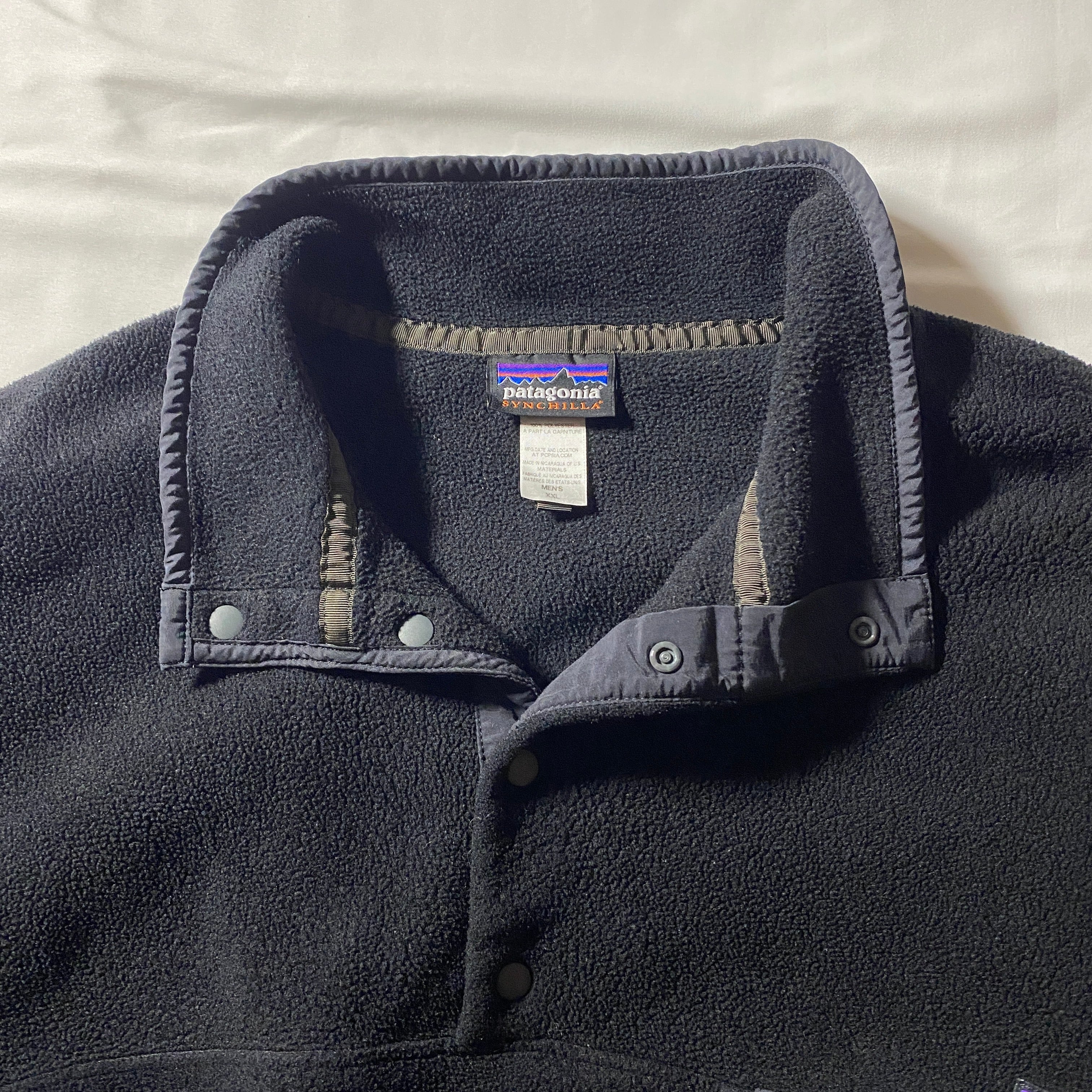 2014年製のPatagoniaシンチラ・スナップT。中でも流通の少ないブラック×ブラック配色は、アウトドア由来の名作を都会的に着られる希少パターンです。軽量で保温性に優れたシンチラフリースは、レイヤリングにも単体使いにも万能。XXLサイズならではのゆとりあるシルエットは、現行にはない抜け感を演出してくれます。黒一色でも“地味”で終わらないのは、Snap-Tという完成されたデザインあってこそ。静かに主張する大人のPatagoniaです。