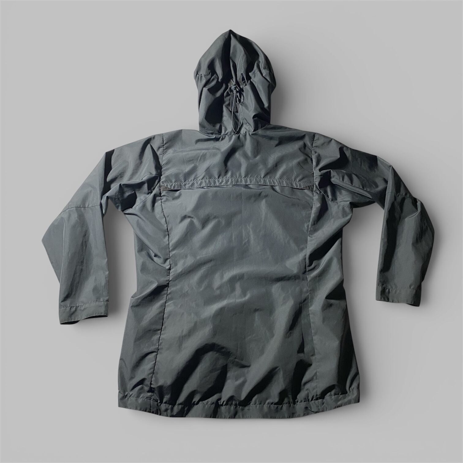 全体に目立つダメージはなく、生地の張りも良好。シームやドローコード周りのコンディションも安定。使用感はあるものの機能性を損なう点は見受けられません。