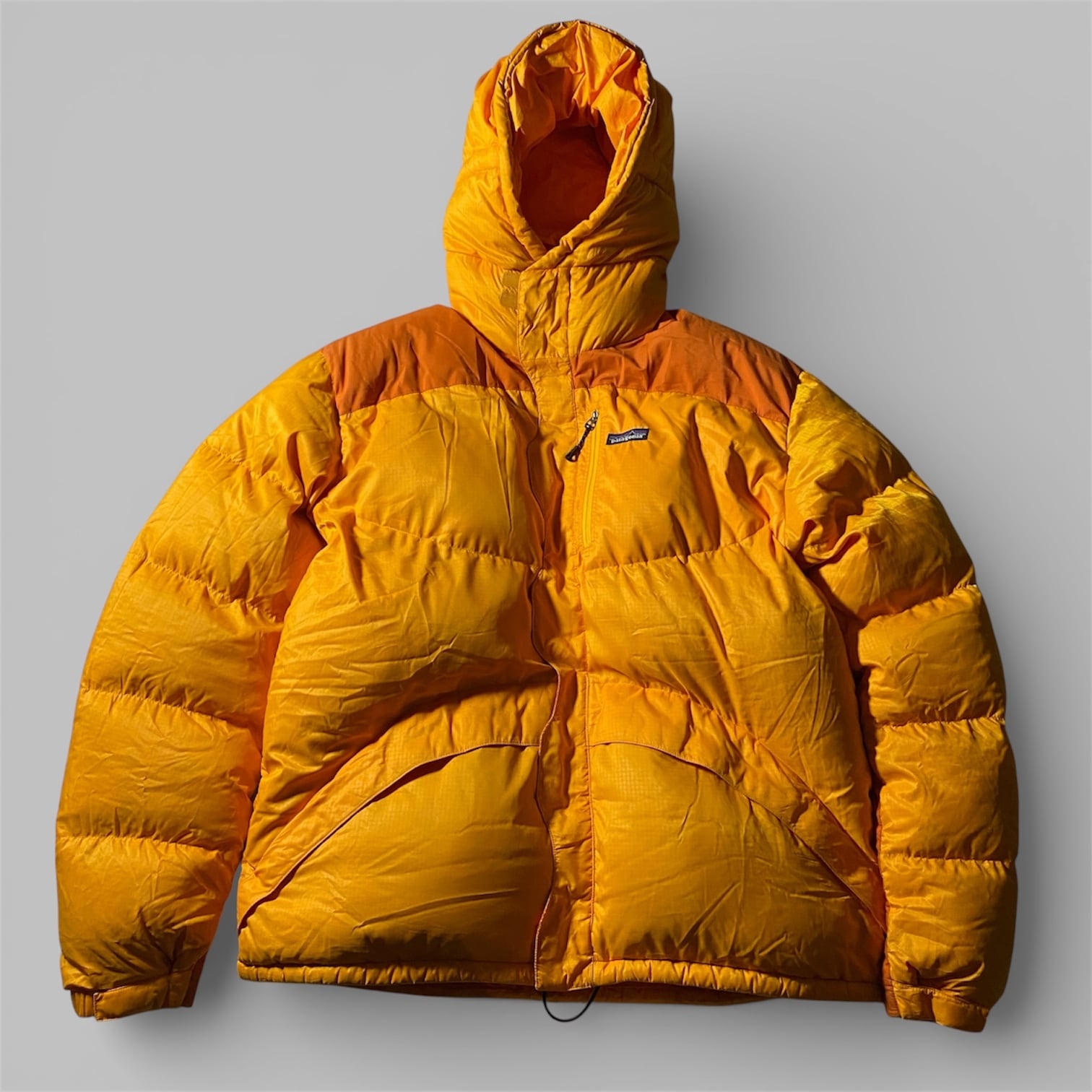 高発色なマンゴーカラーが目を引く2007年製ダウンパーカ。中綿にはグースダウン85%以上を使用し、当時のパタゴニアらしい本気の保温力を備えた一着です。街ではオーバースペック、でもそれがいい。山由来の機能美と、今のダウンには出せない軽さと空気感が共存しています。収納袋は欠品ですが、その分このカラーとシルエットが主役。冬の主役アウターとして、気分まで暖めてくれる名作です。
