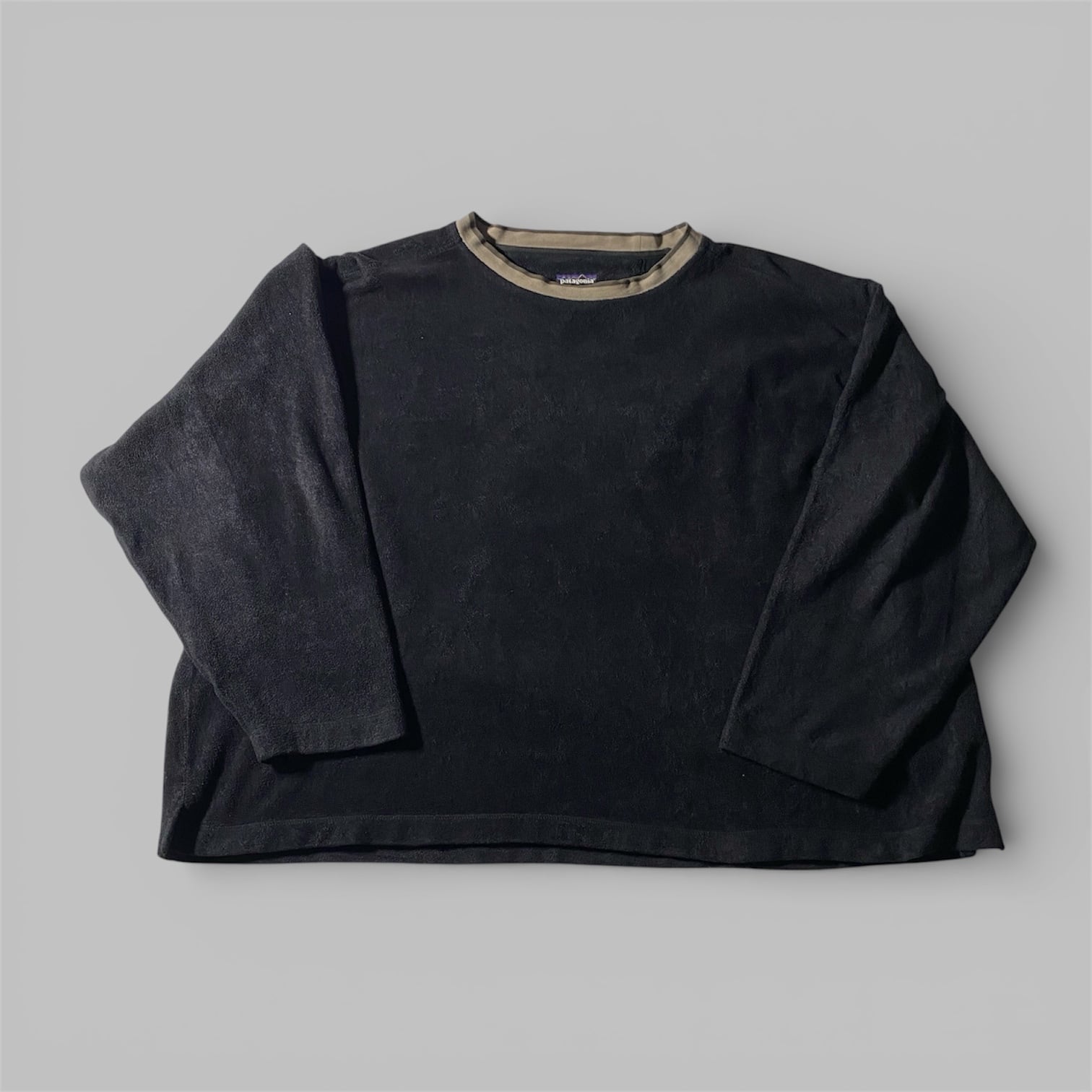 2000年代に展開されたリズムシリーズは、当時のパタゴニアの中でもストリート感を意識した実験的ライン。ミニマルなクルーネックデザインに、さりげなく配されたバックネックのロゴ刺繍がアクセントとなる一着です。スナップTとは異なる都会的な佇まいで、レイヤード次第でモードにも振れる万能型。たっぷりとしたXLのシルエットは、あえてルーズに着ることでこのモデルの“リズム”を最大限に引き出してくれます。